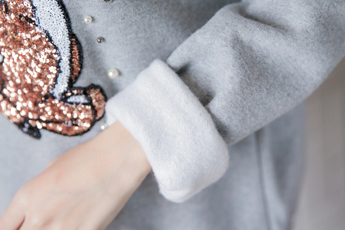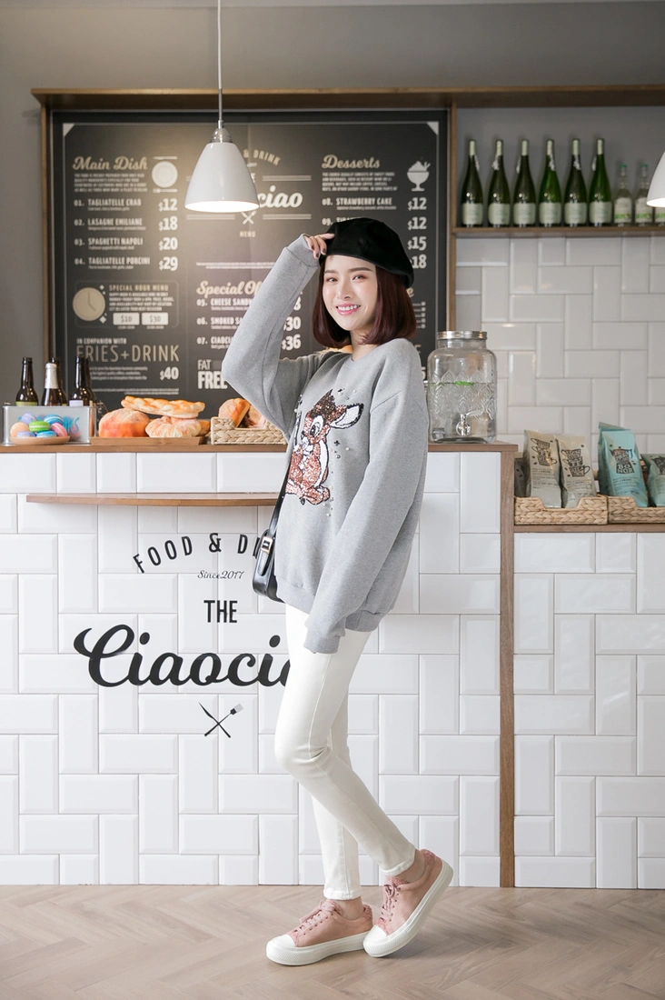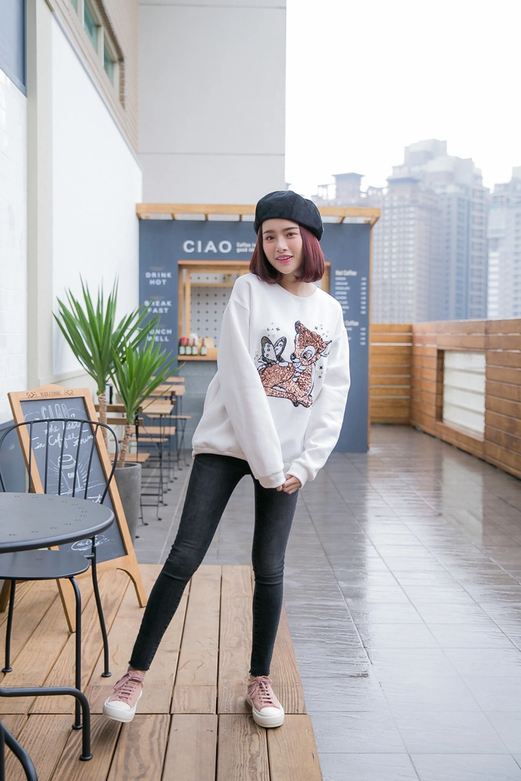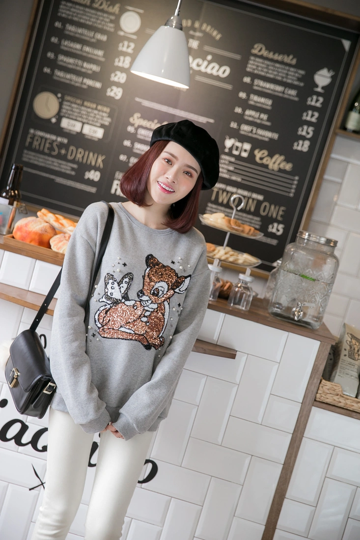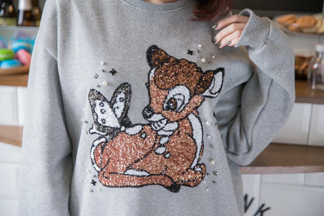 內刷毛/布料柔軟/精緻字母刺繡/外層厚棉材質 精緻亮片珍珠小鹿班比造型