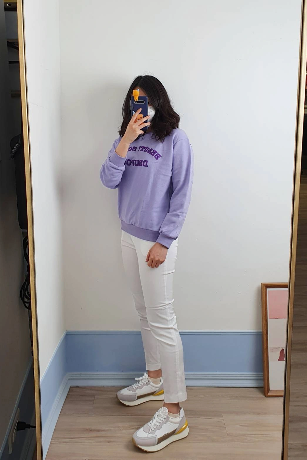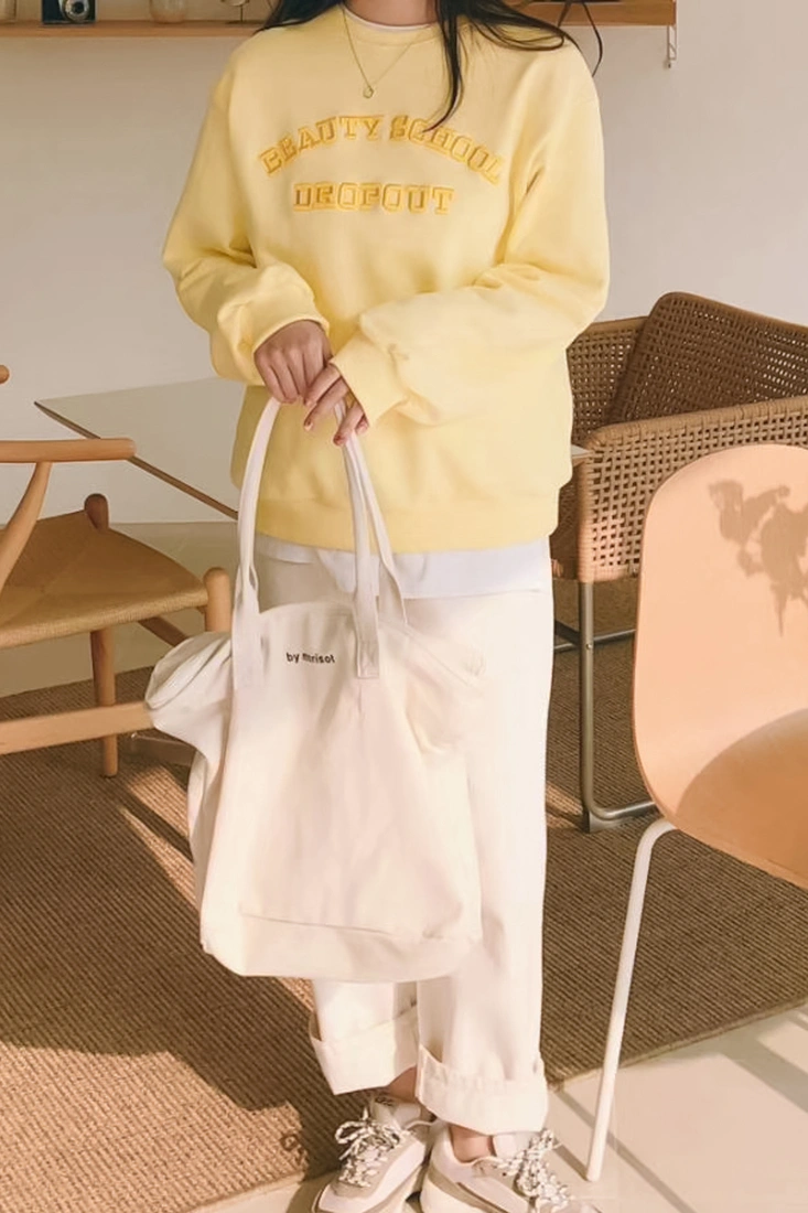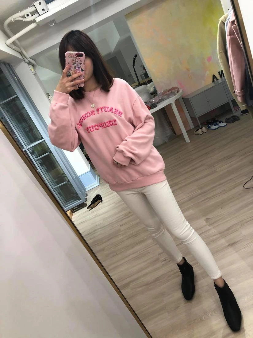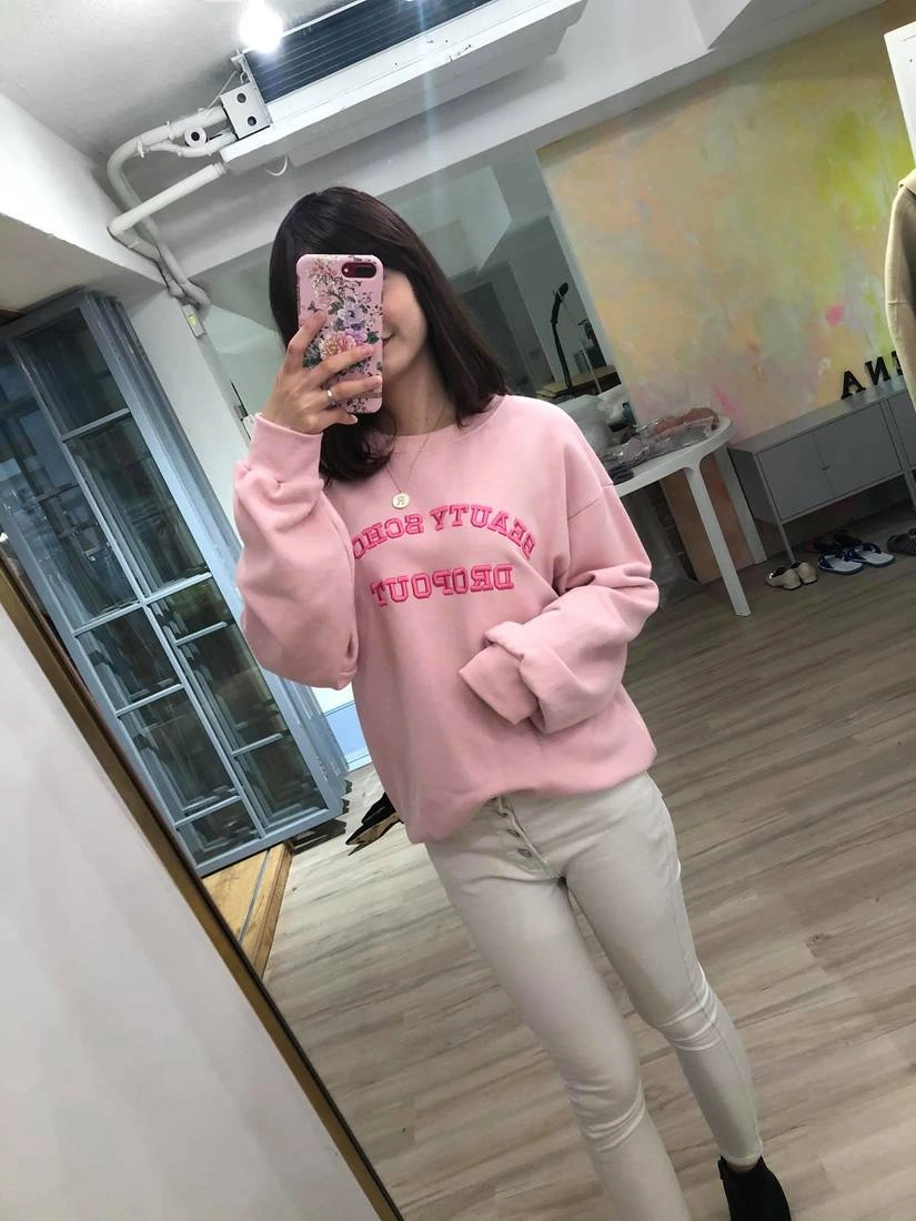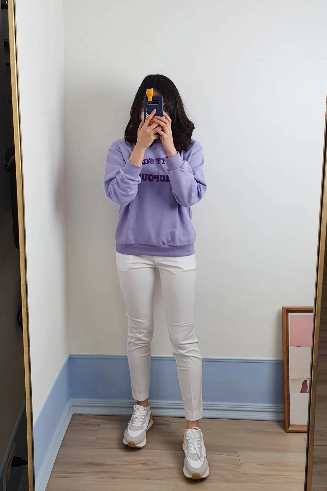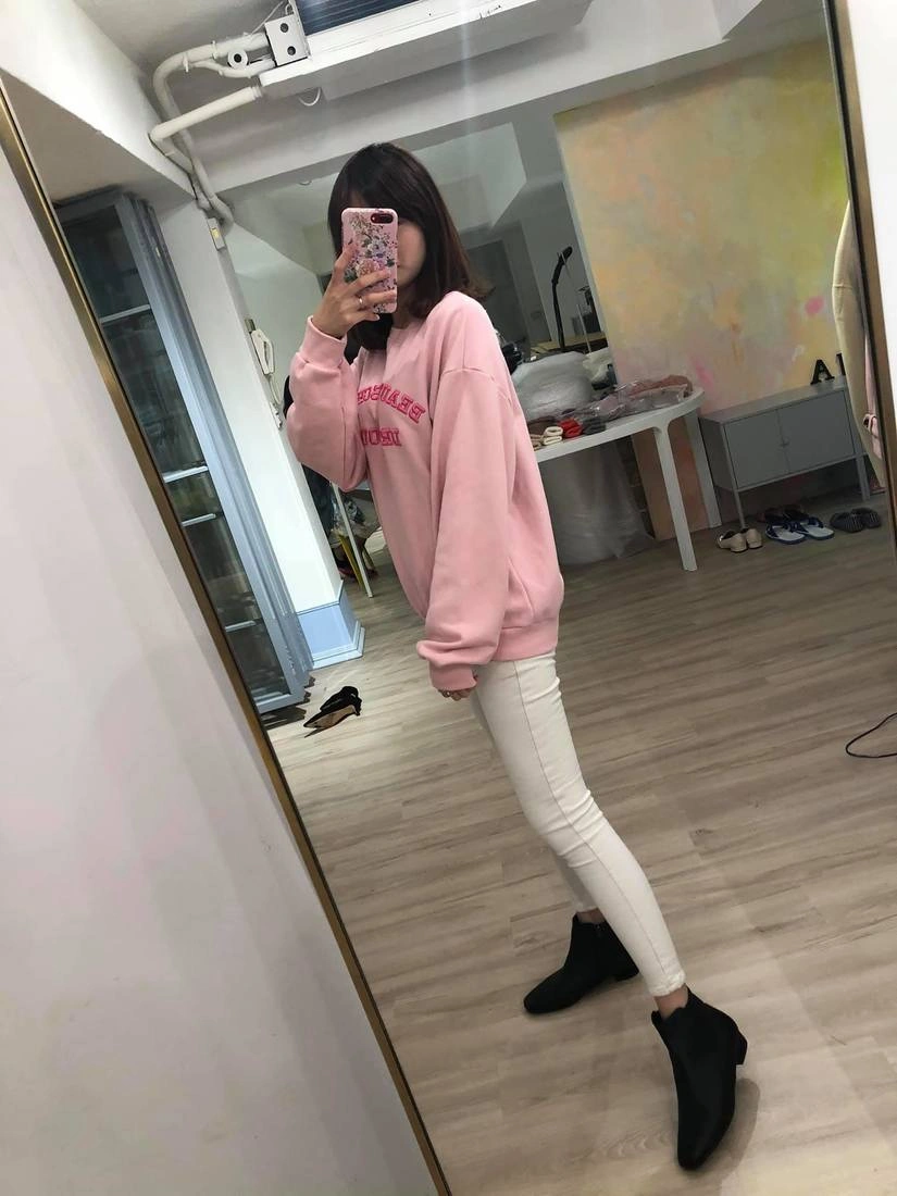 這款的字母圖案很可愛~ 大學T是秋天必備的,這款內裏是毛巾布 穿起來比較沒那麼熱,版型剛剛好~