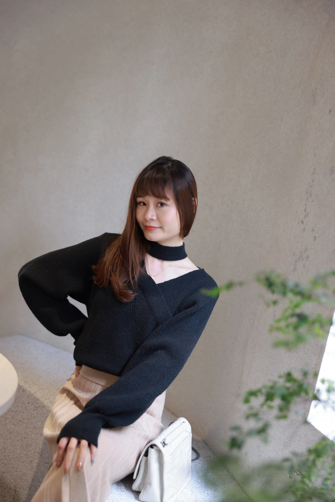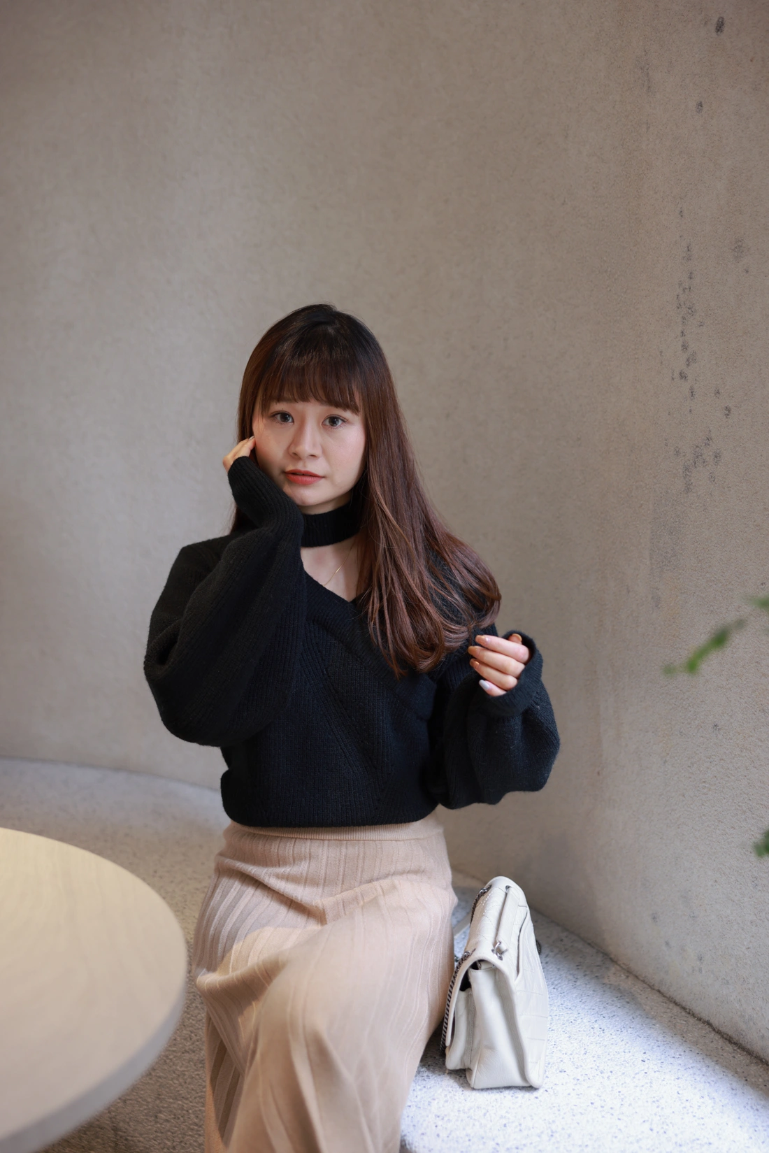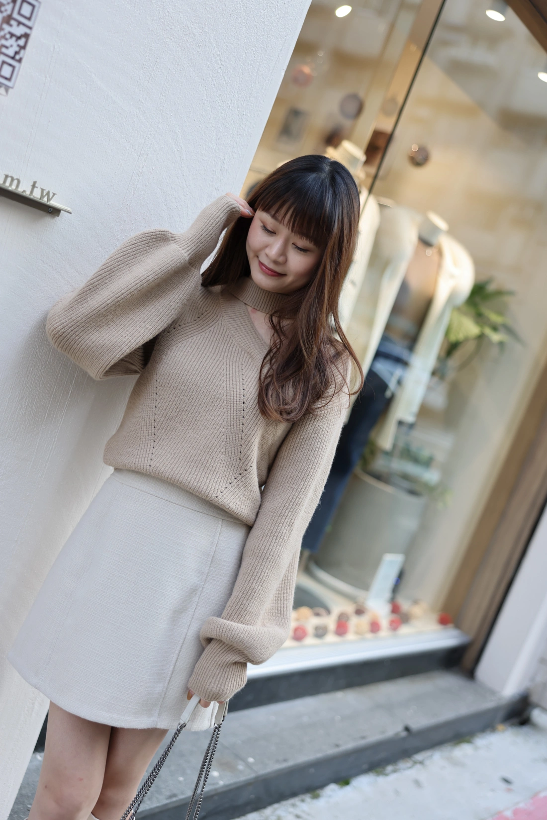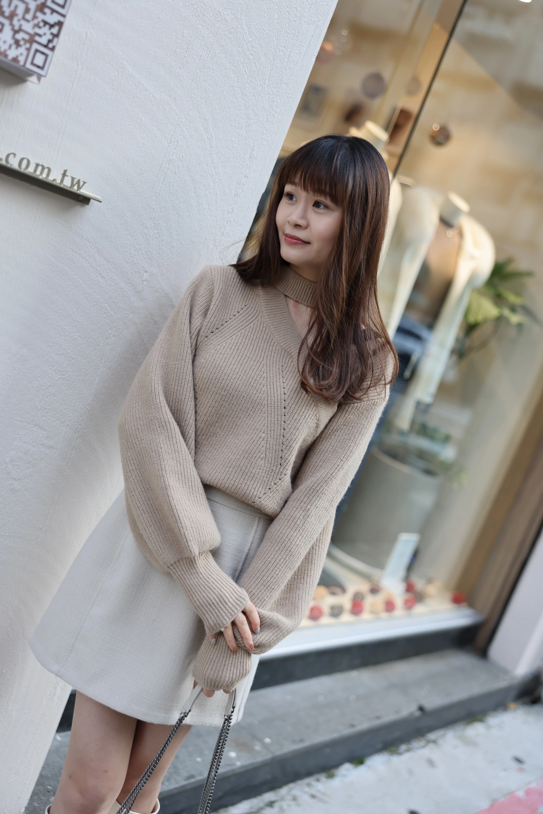 露鎖骨設計/寬袖設計/袖口束口設計/直坑條設計