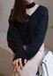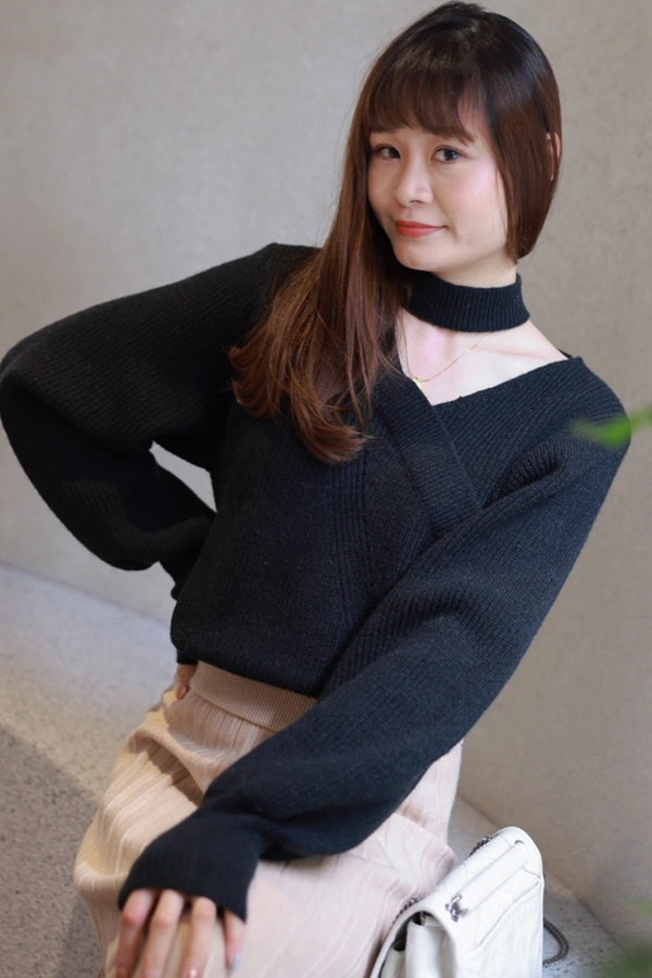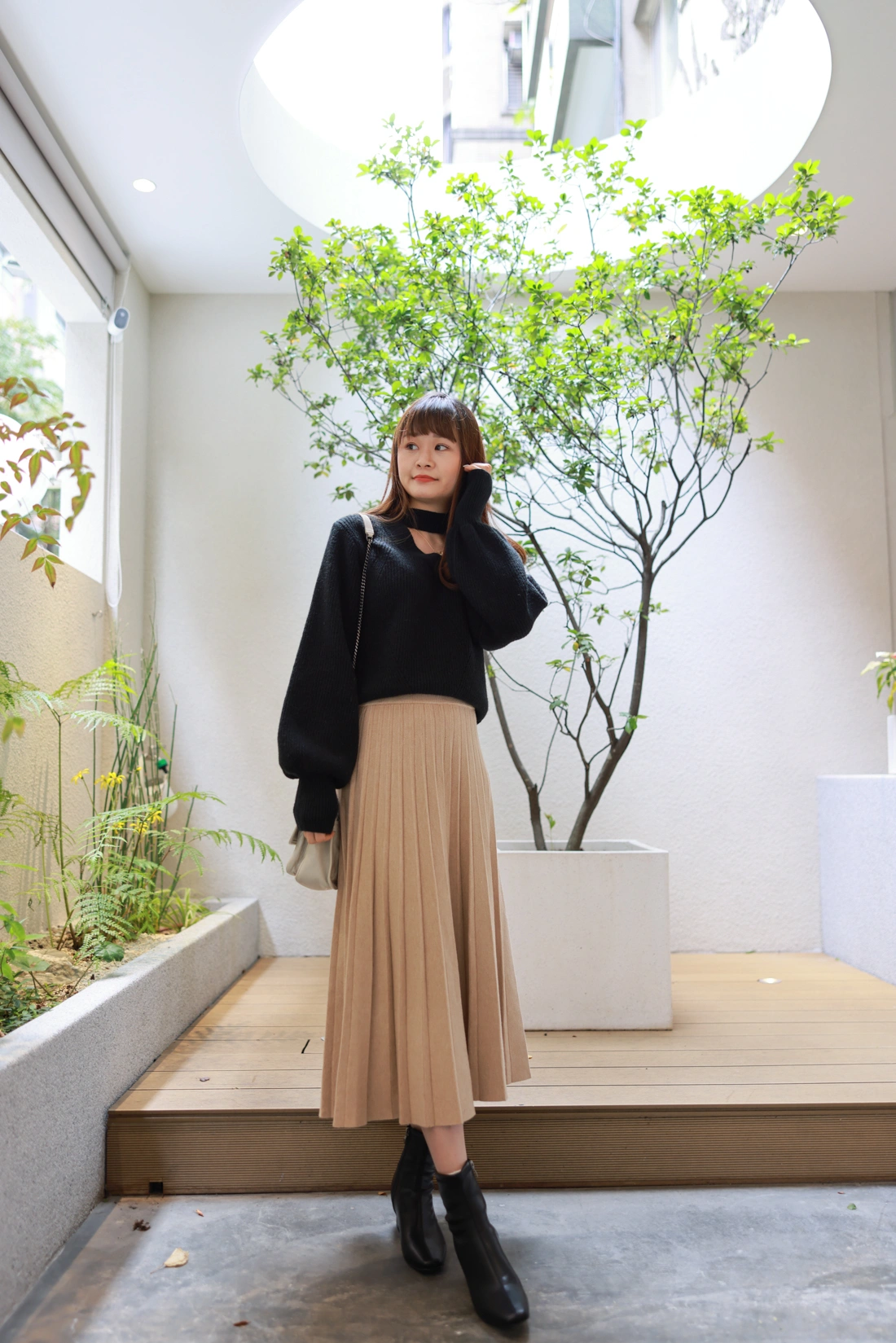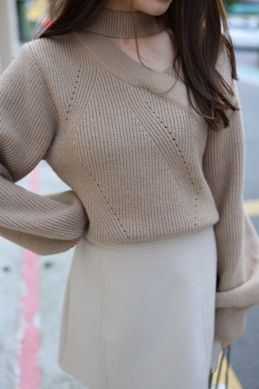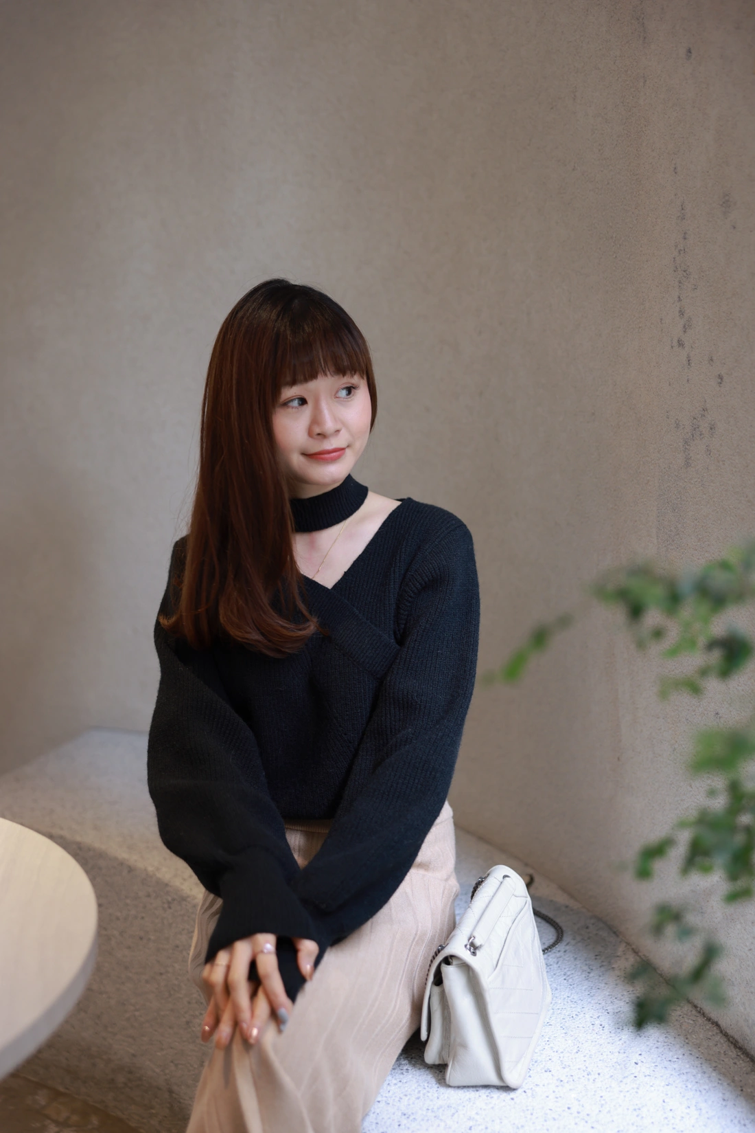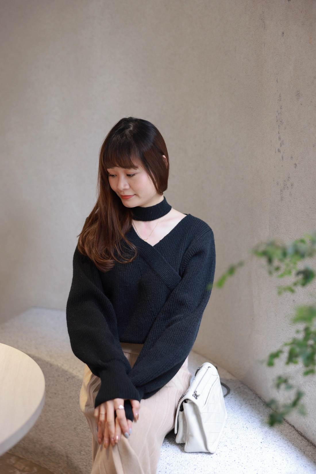 露鎖骨設計/寬袖設計/袖口束口設計/直坑條設計