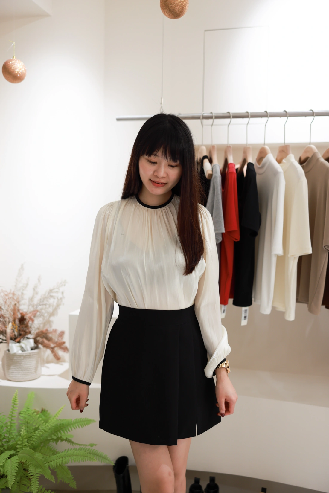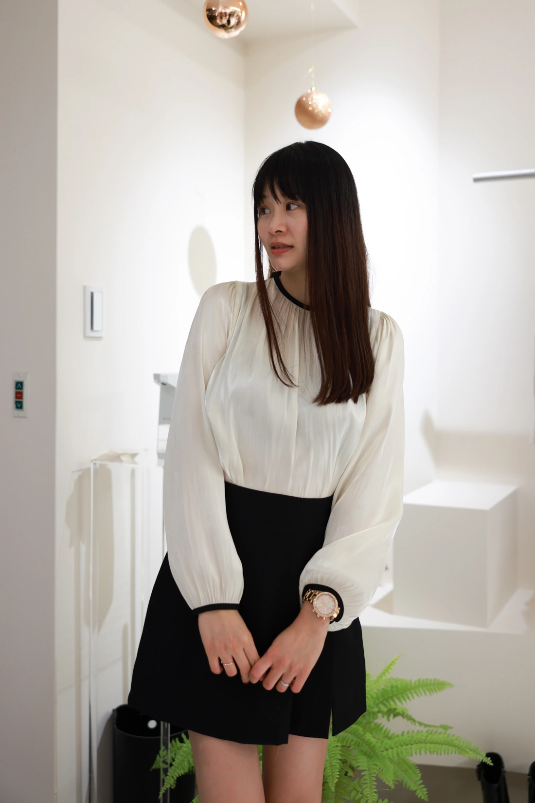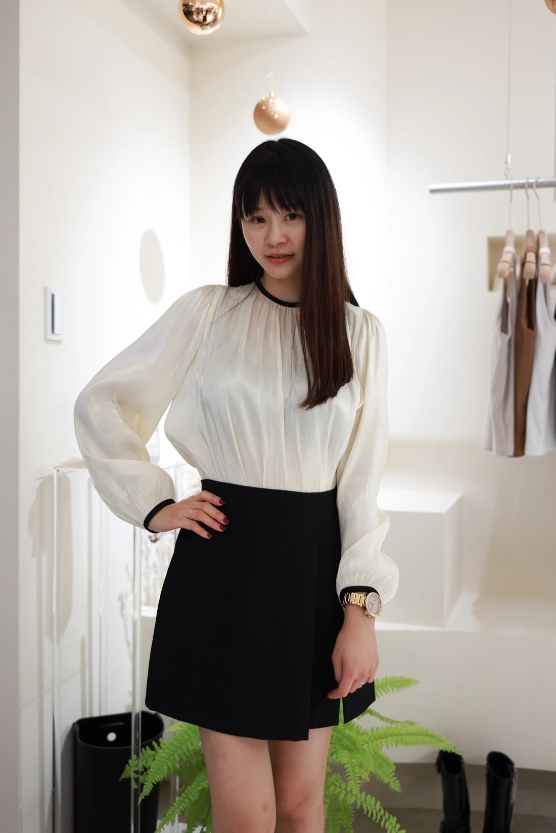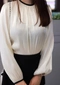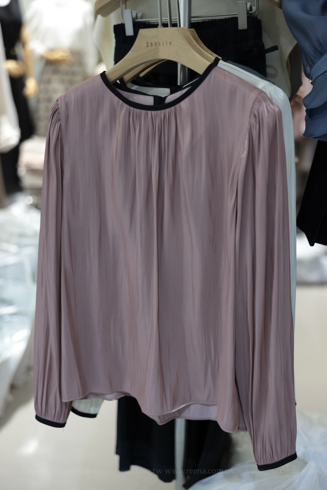 質感光澤感上衣/後扣綁繩設計/抓皺感設計