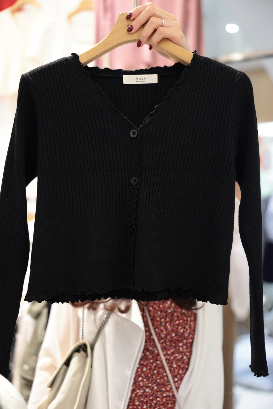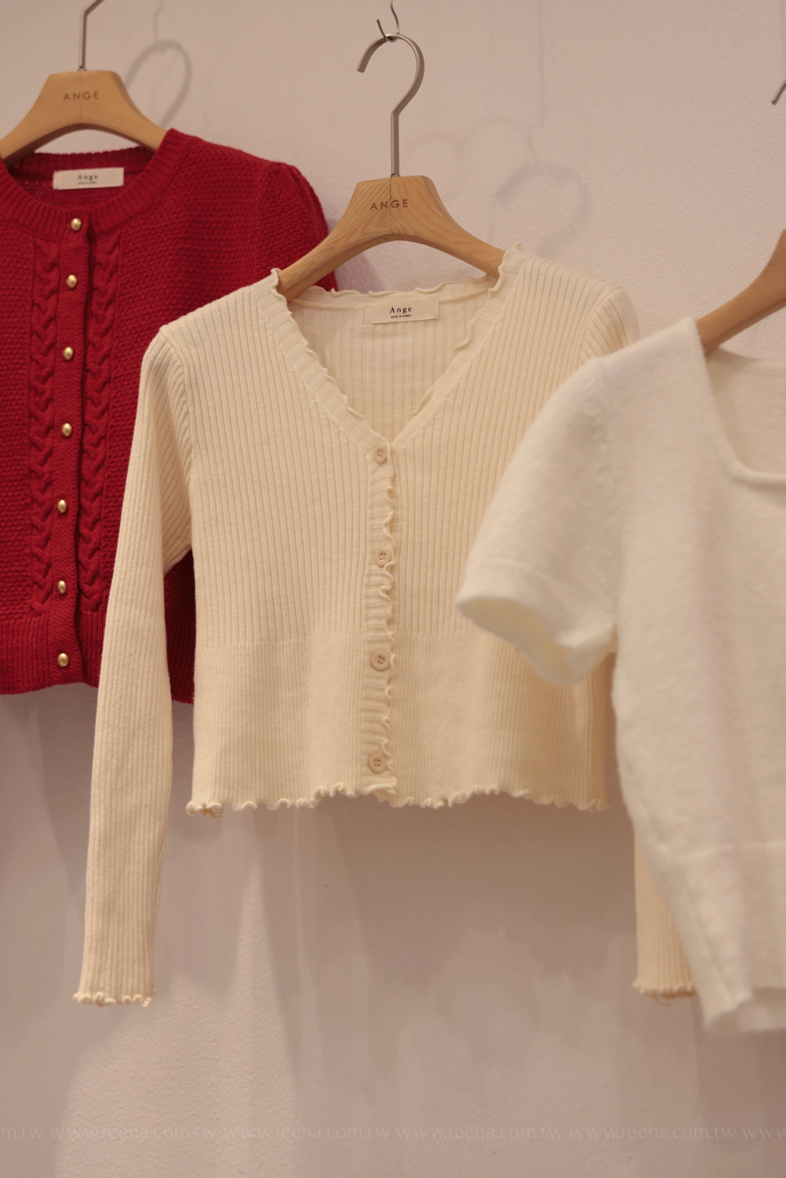 木耳邊長袖上衣/當小外套罩衫也可以/V領設計