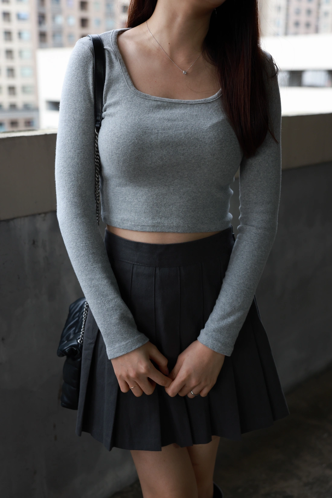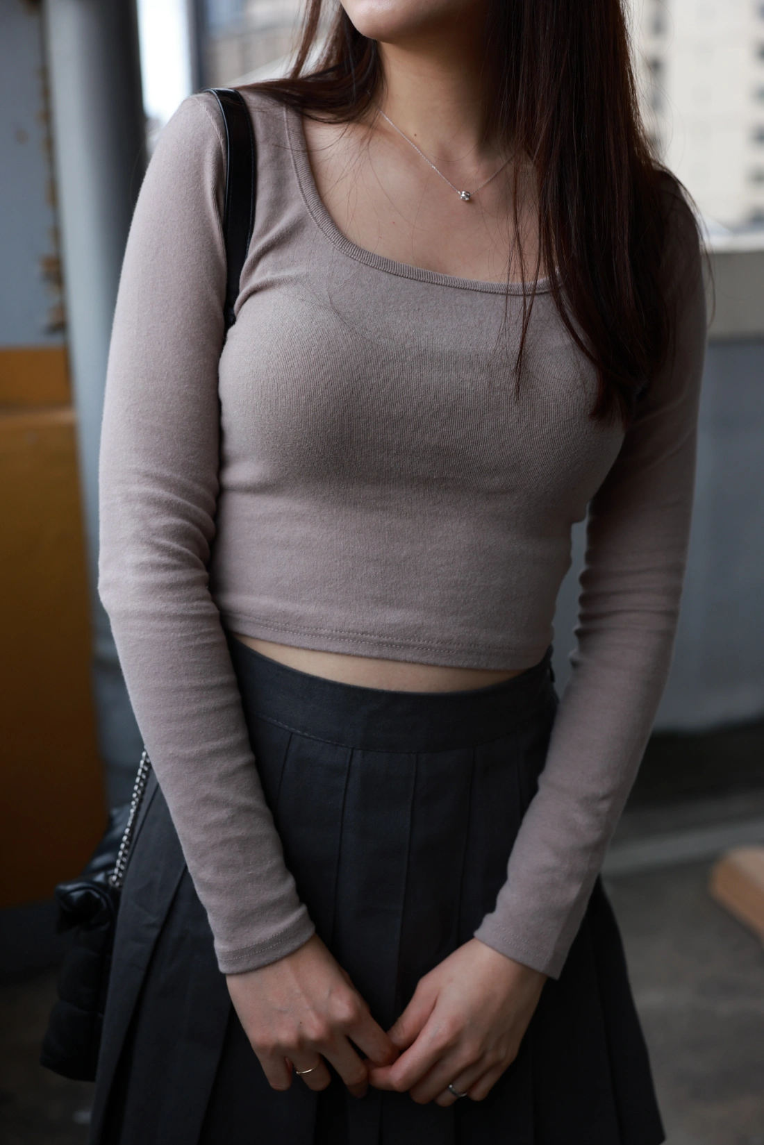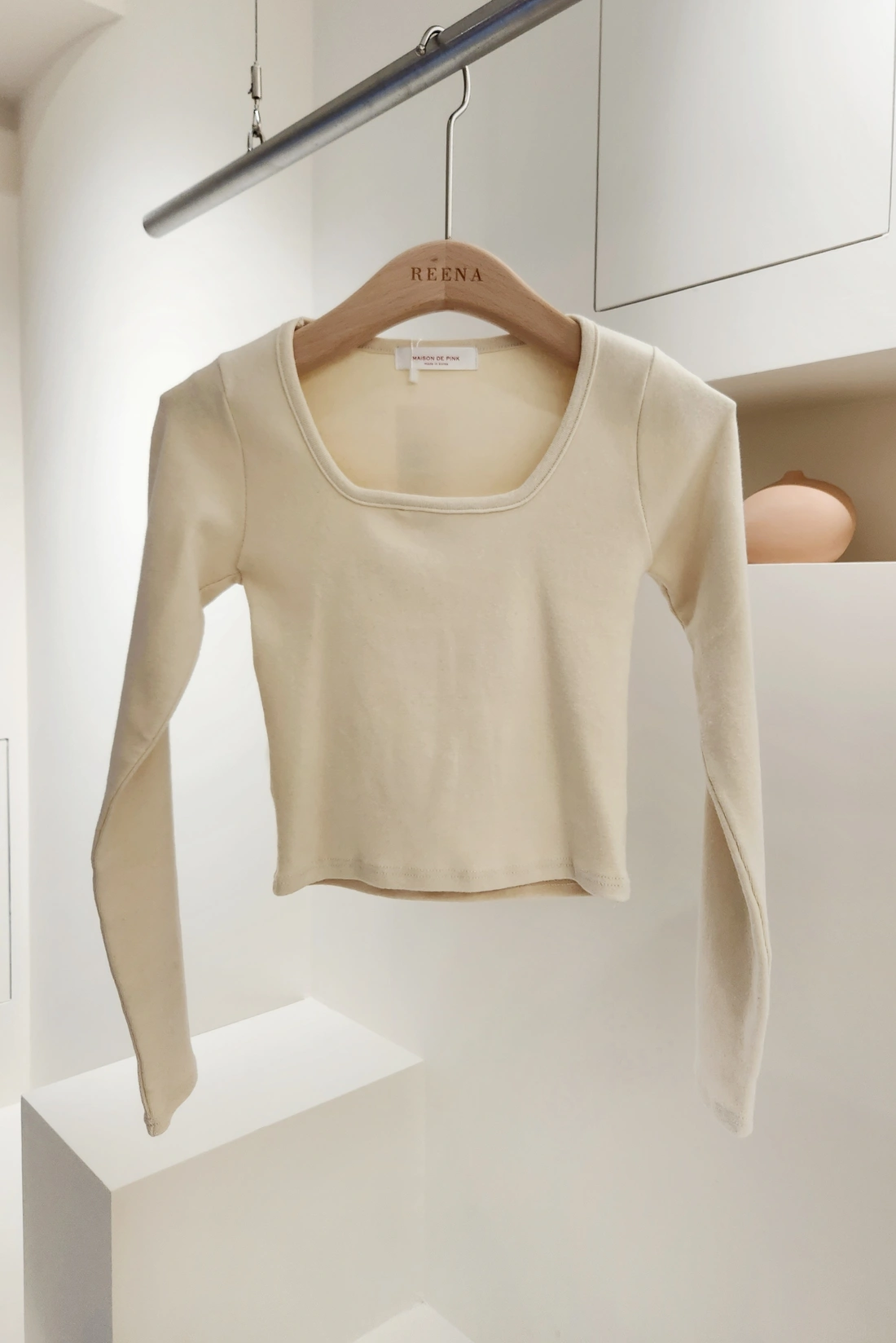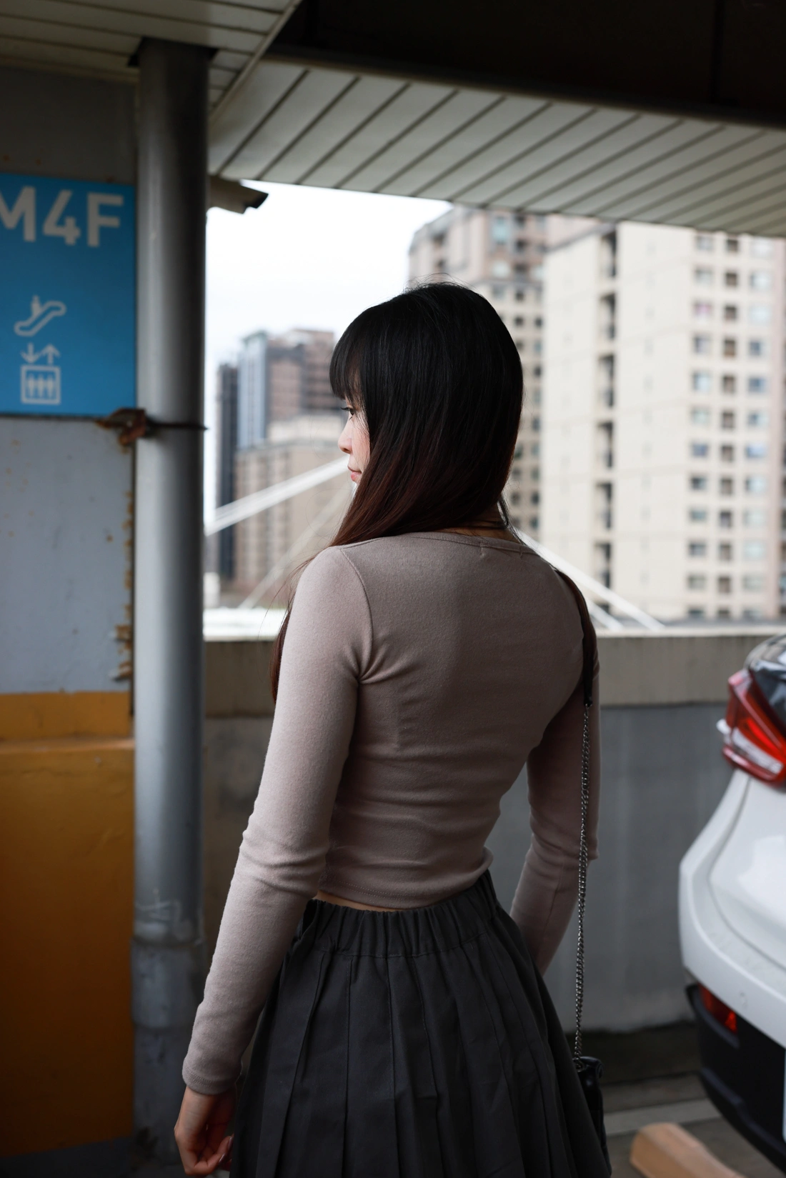 方領設計上衣/磨毛材質更舒服/微短版衣長