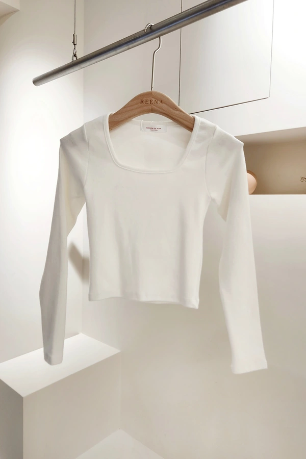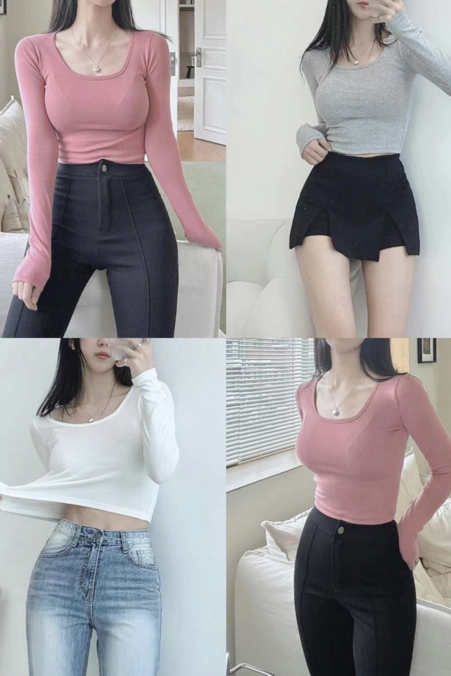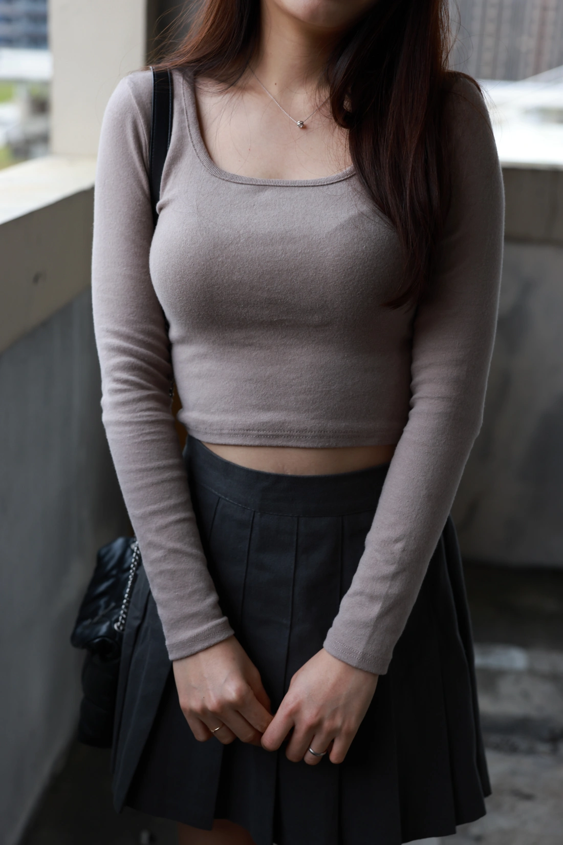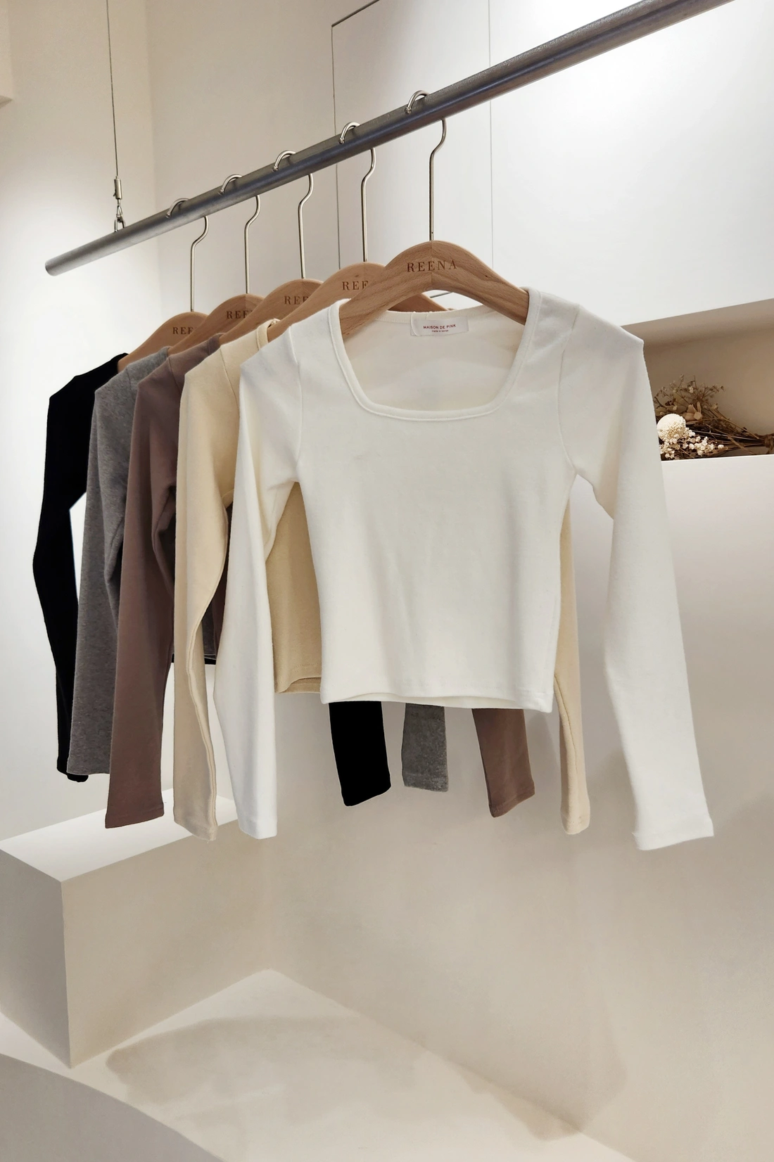 方領設計上衣/磨毛材質更舒服/微短版衣長