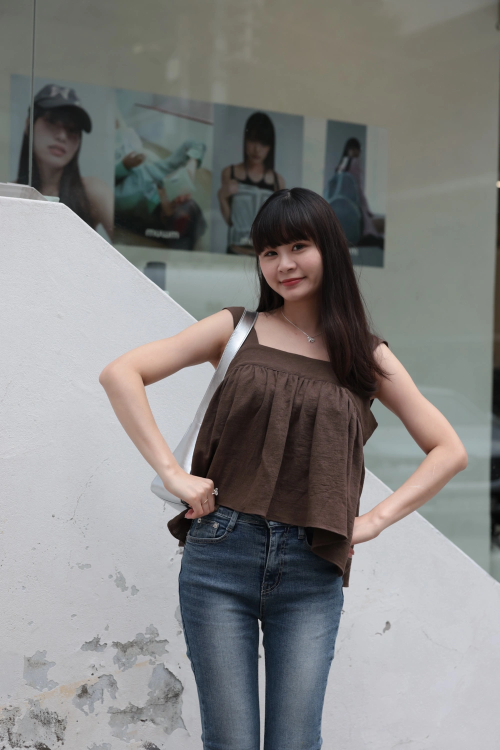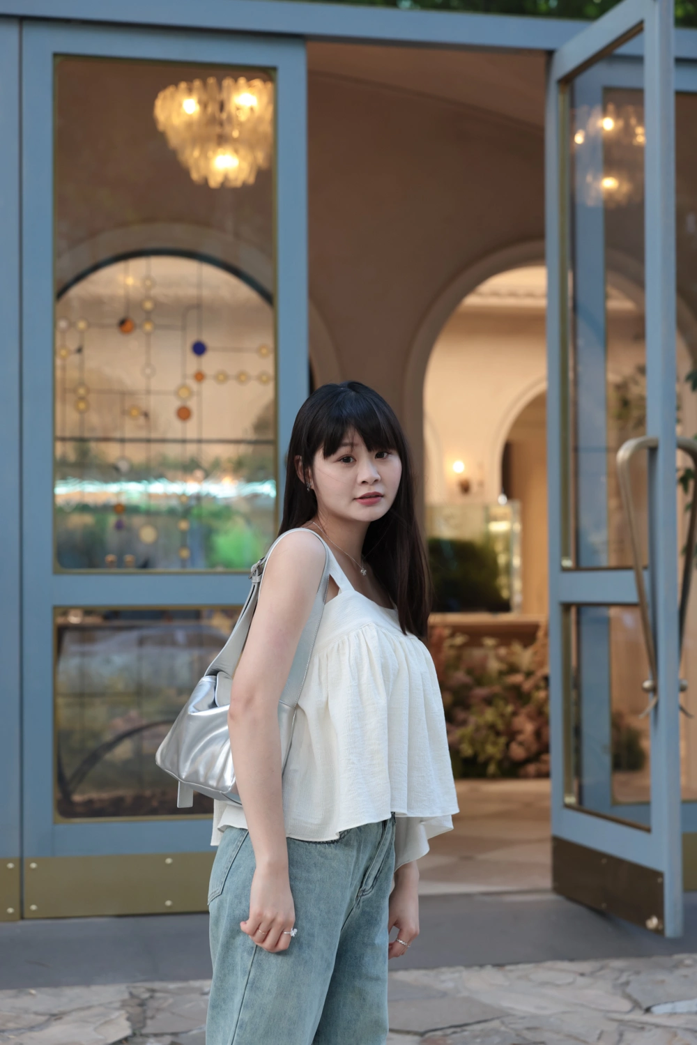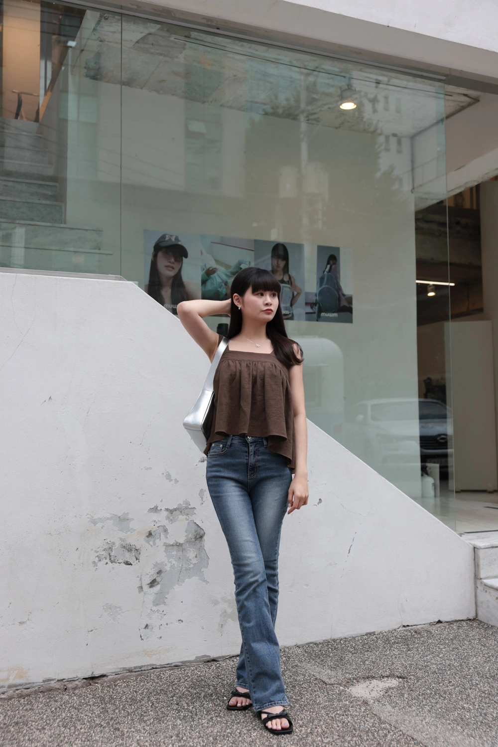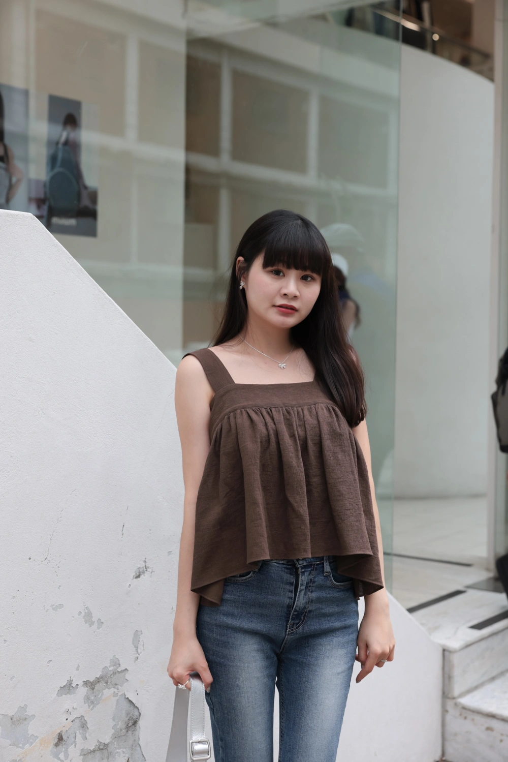 寬肩設計背心/抓皺感設計面料/後綁結細節設計