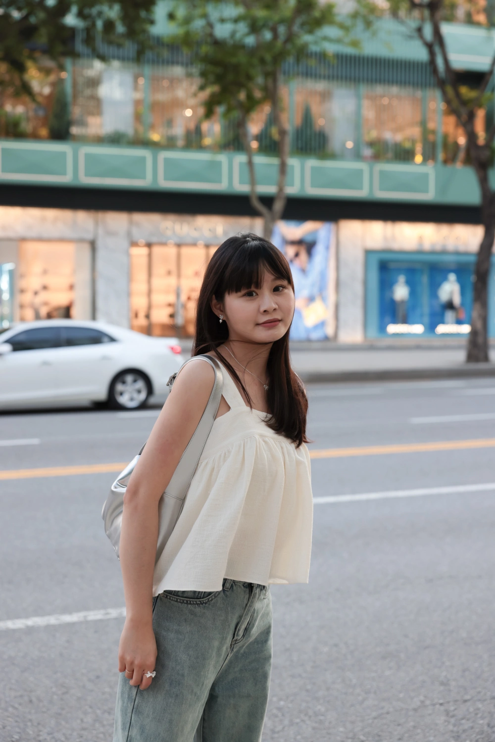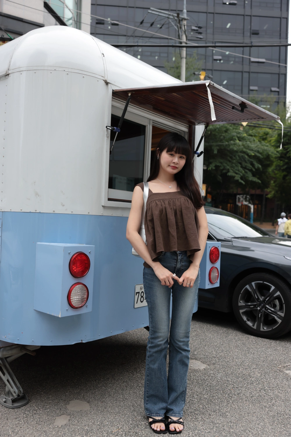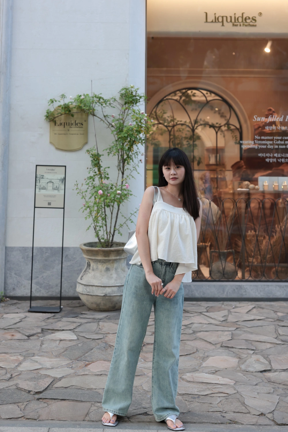 寬肩設計背心/抓皺感設計面料/後綁結細節設計