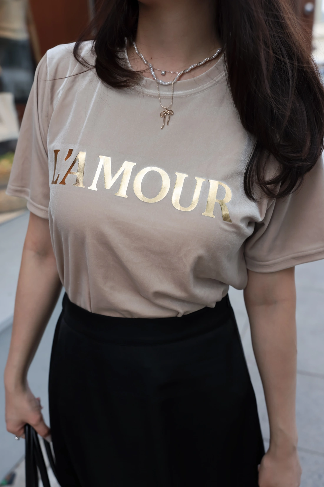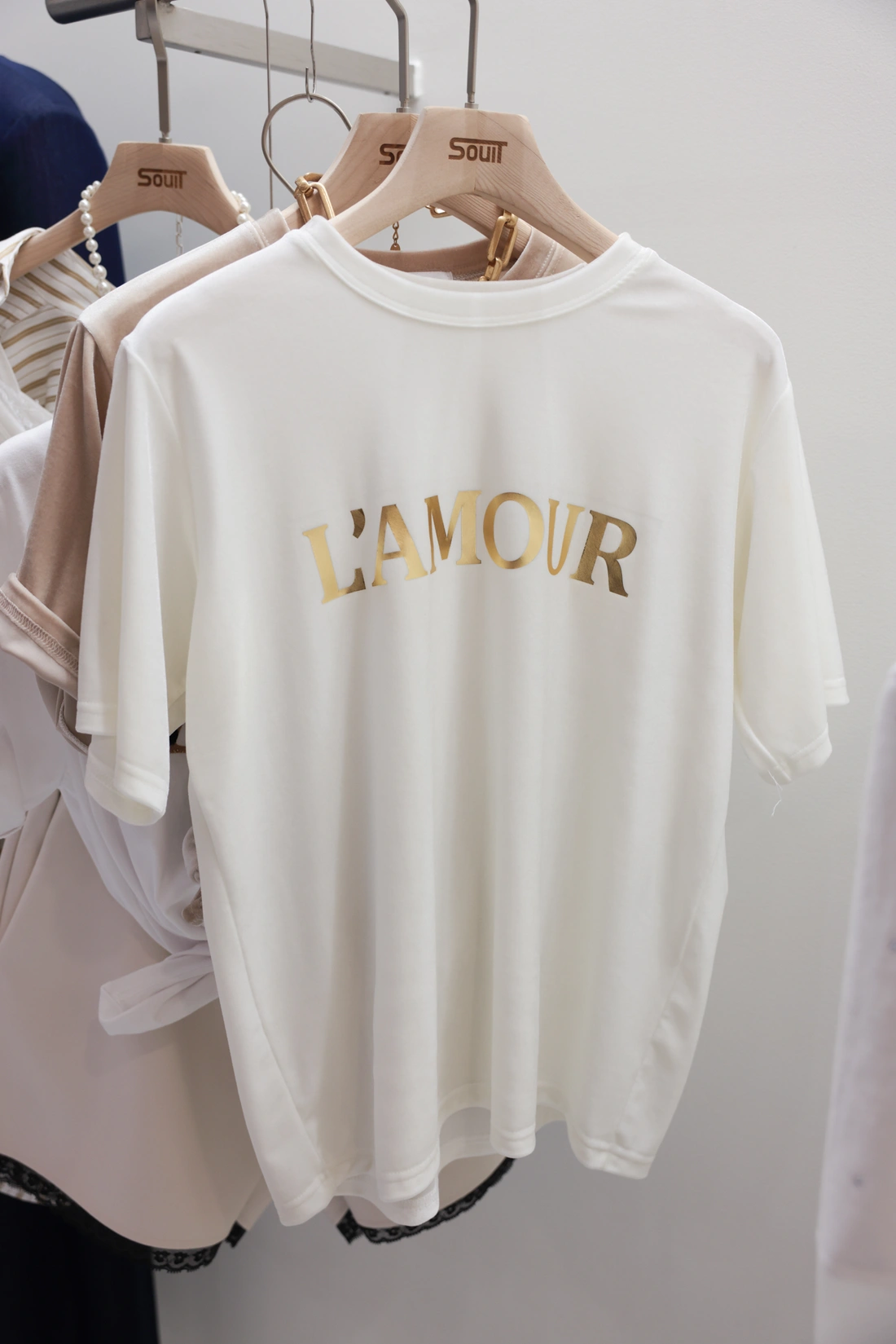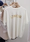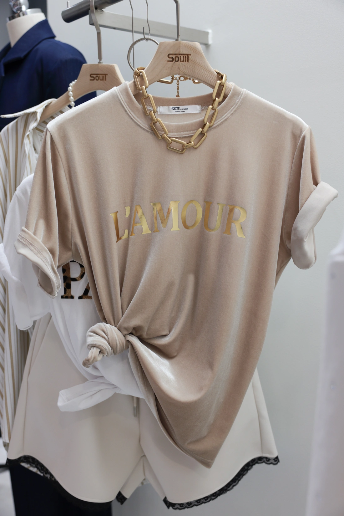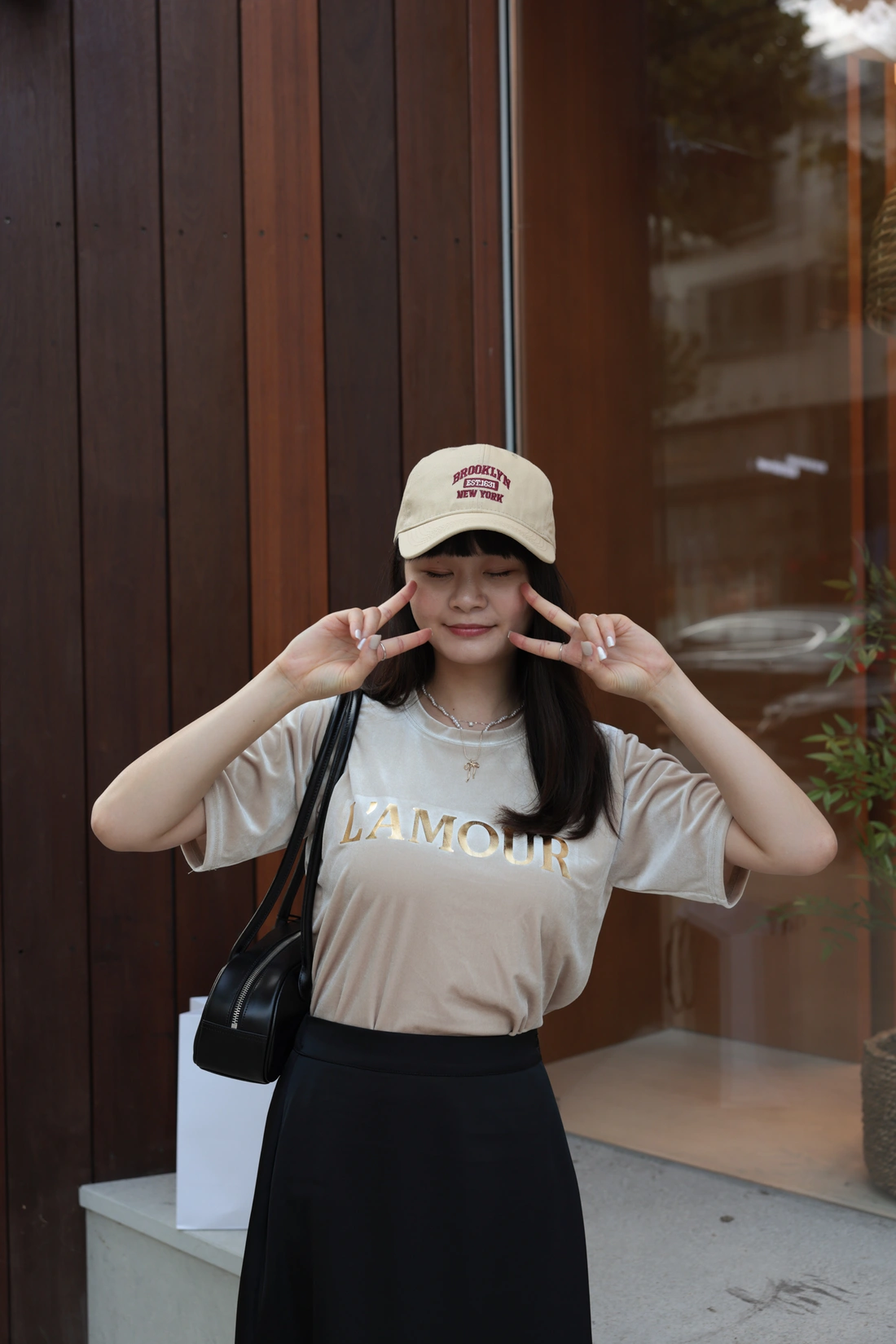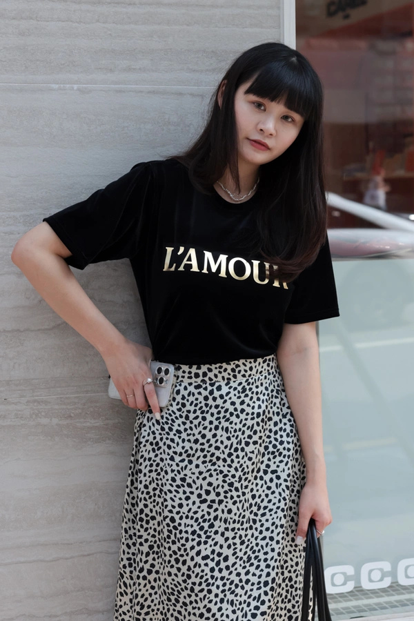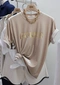 舒適絨布材質/正面印有燙金文字標語/寬鬆中長版型