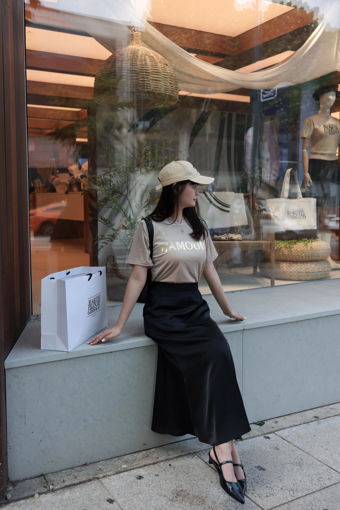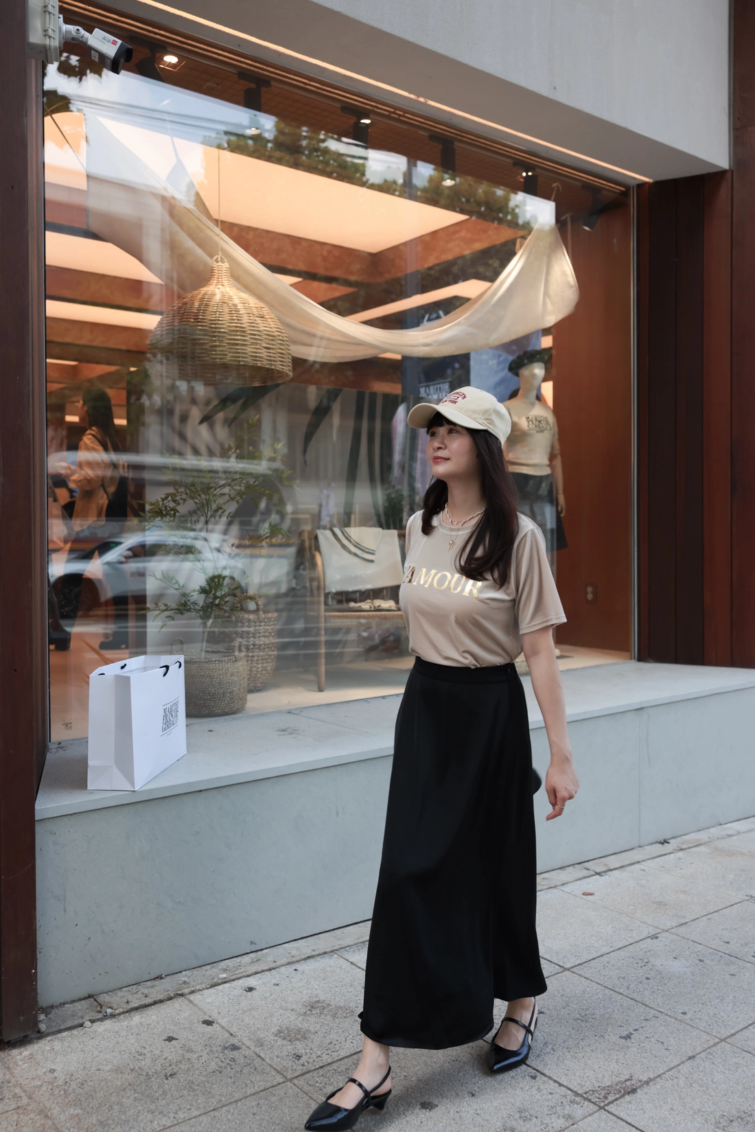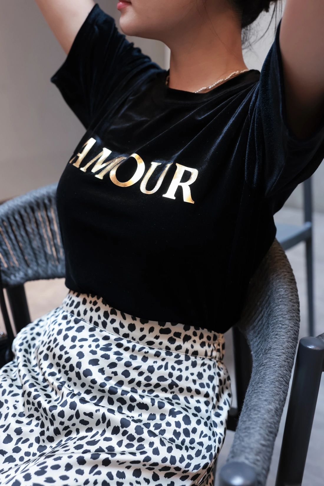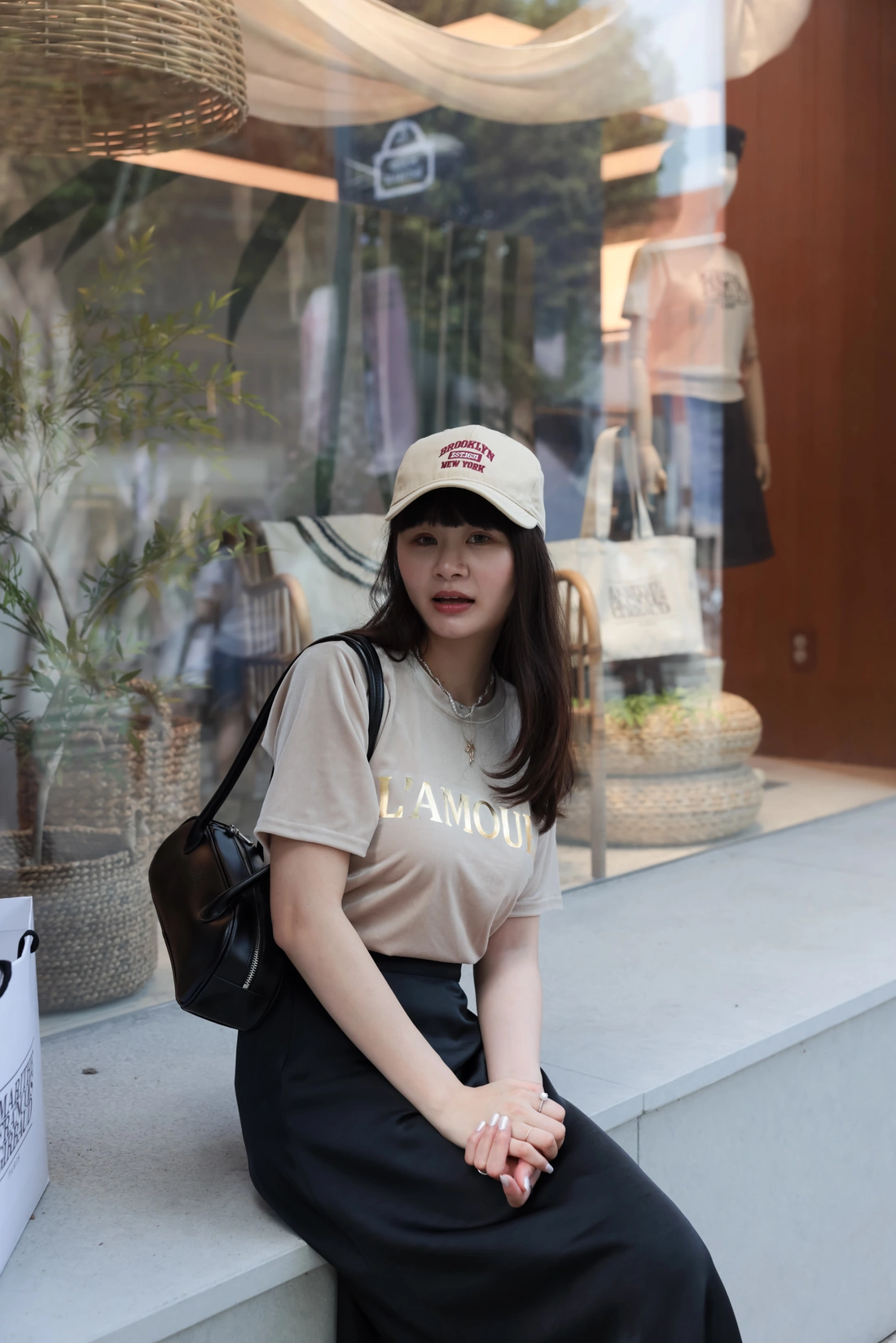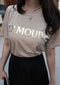舒適絨布材質/正面印有燙金文字標語/寬鬆中長版型