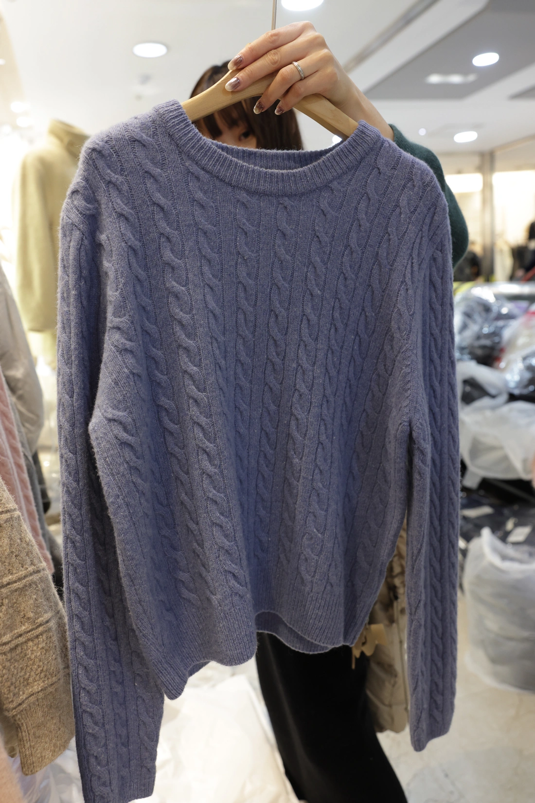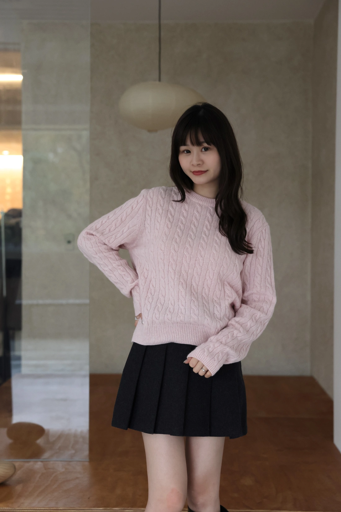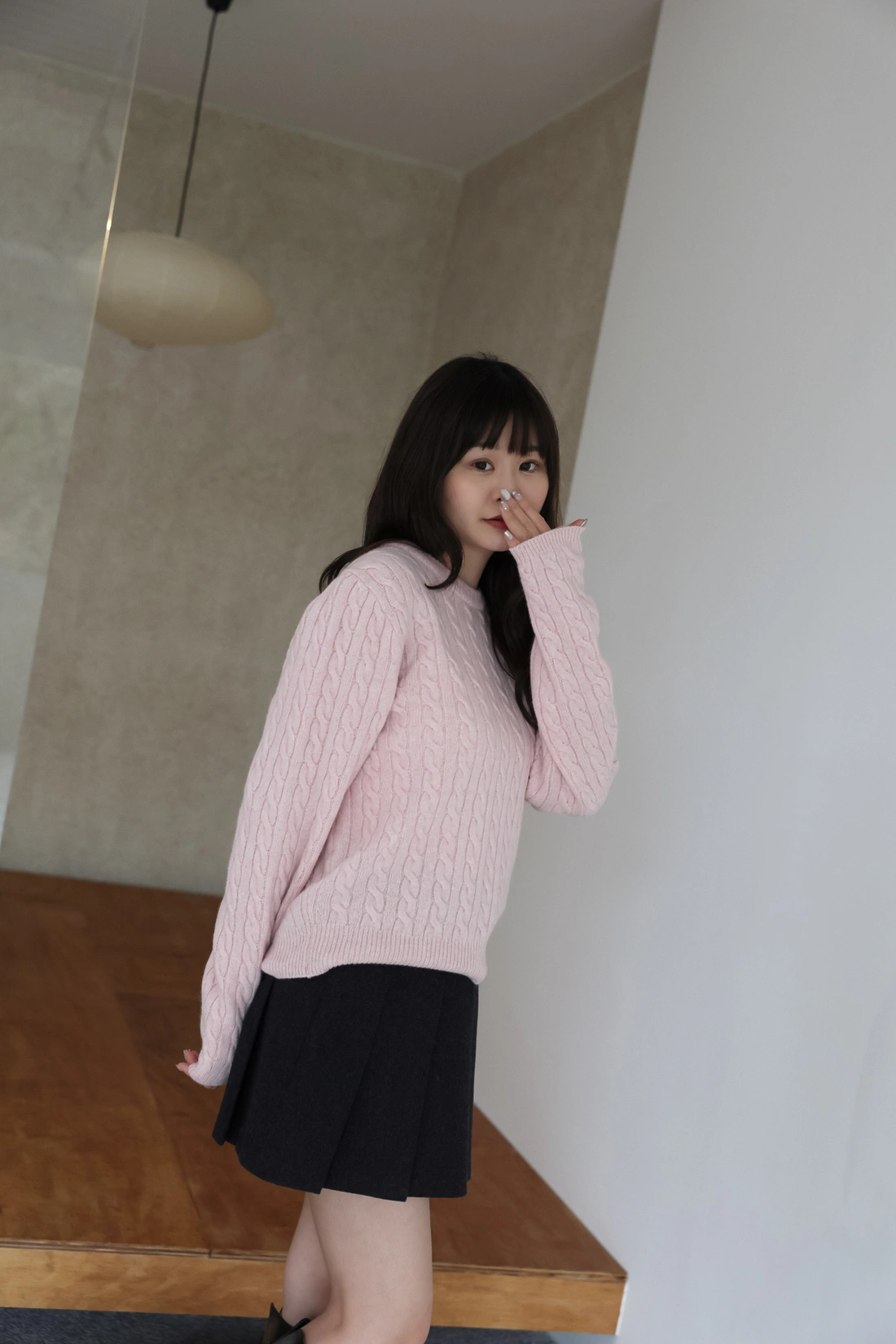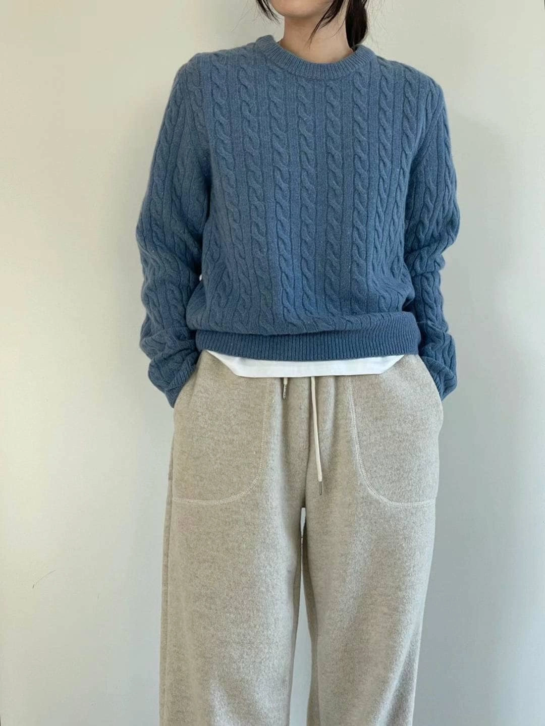 保暖純羊毛材質/麻花編織布料設計/圓領設計