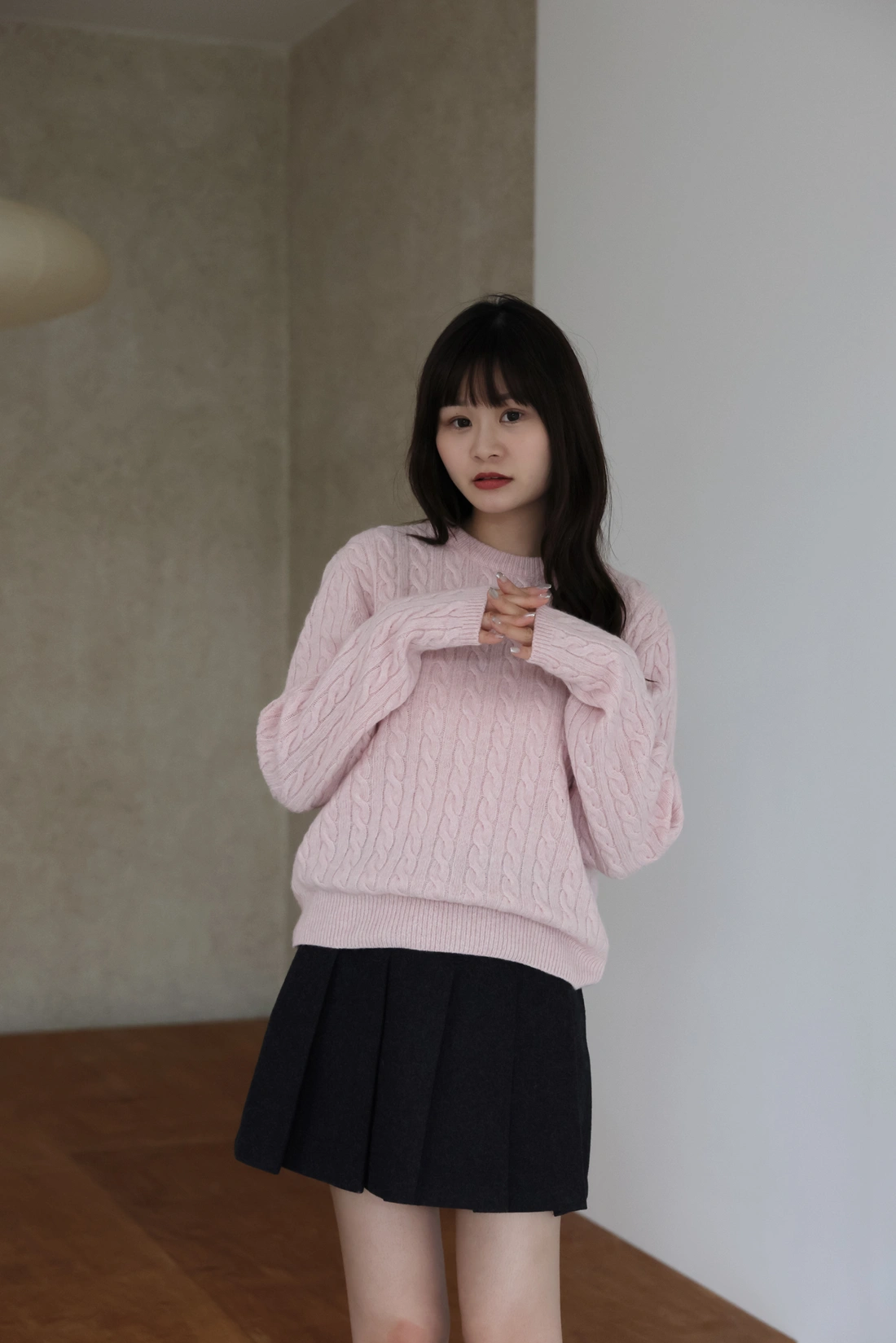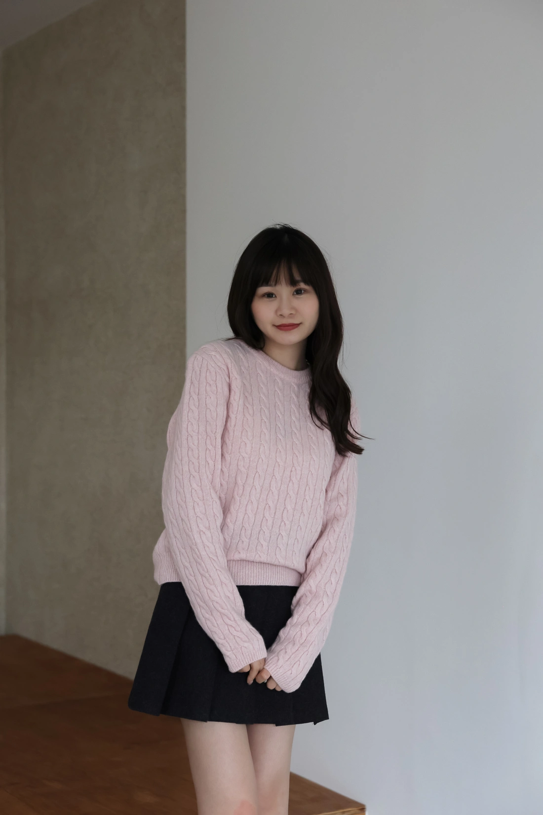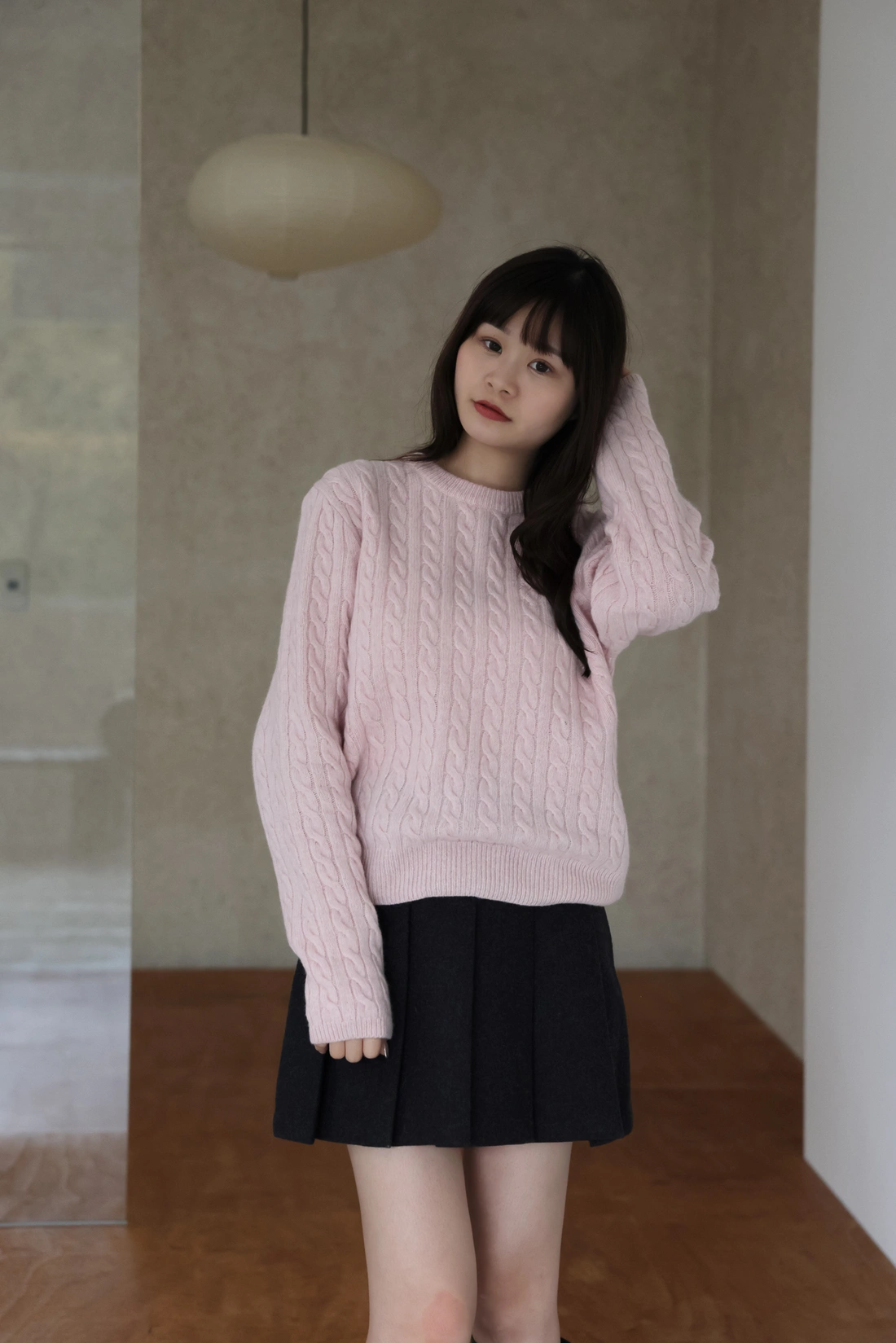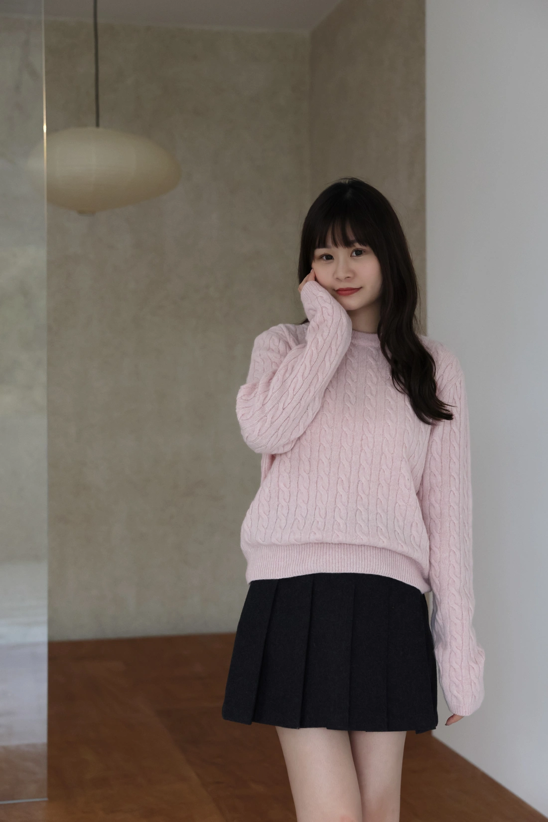 保暖純羊毛材質/麻花編織布料設計/圓領設計
