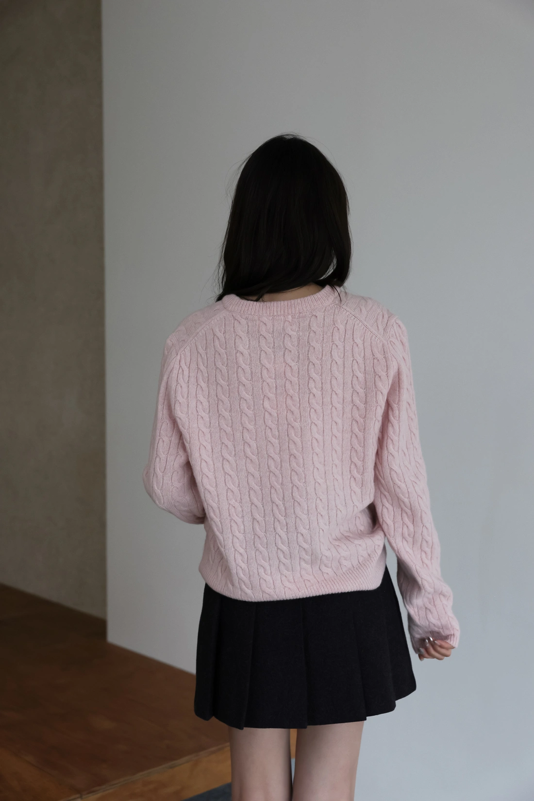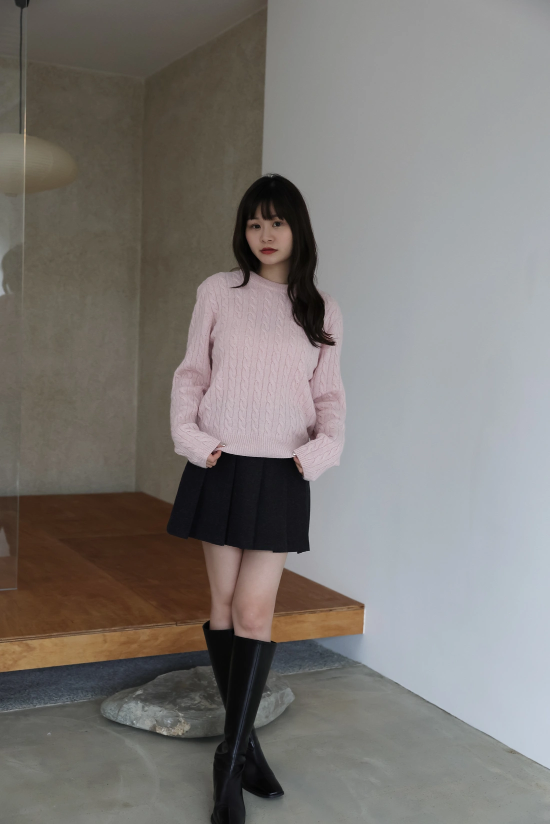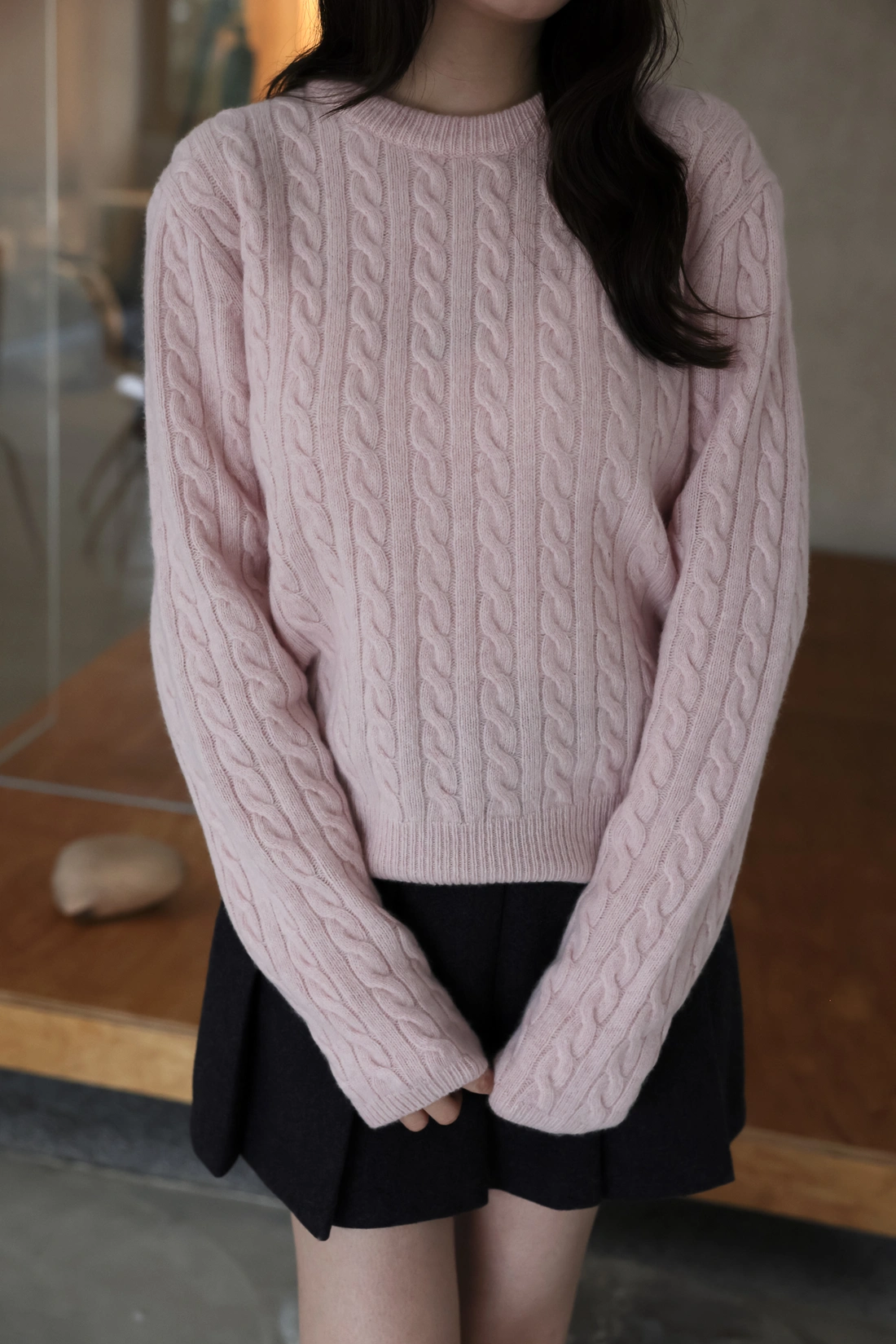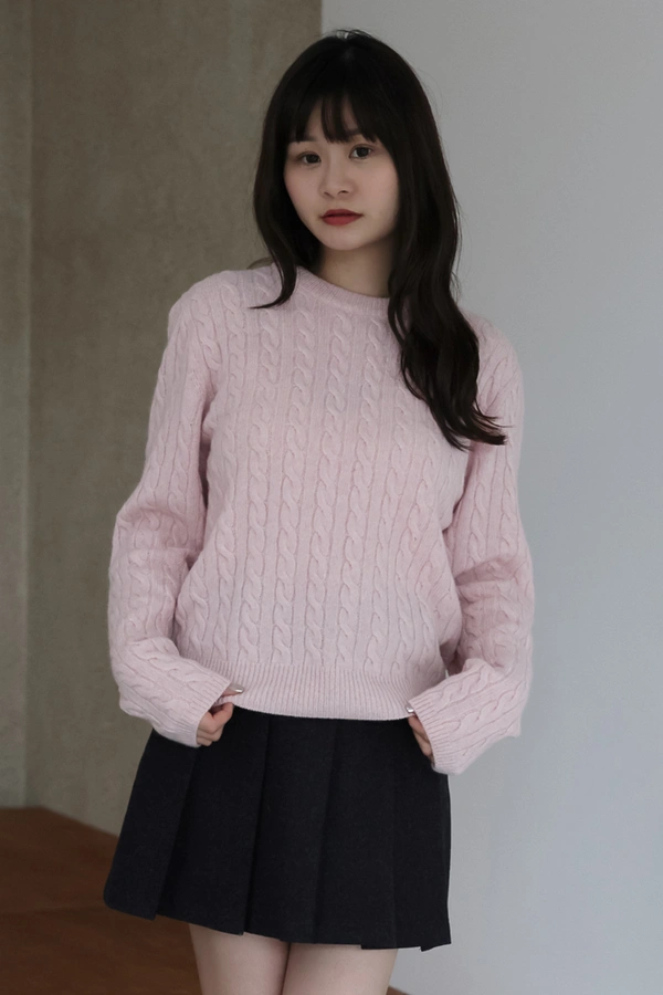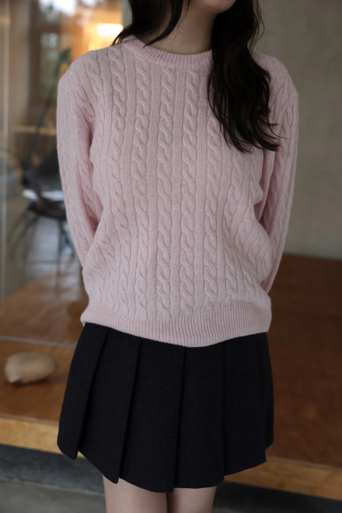 保暖純羊毛材質/麻花編織布料設計/圓領設計