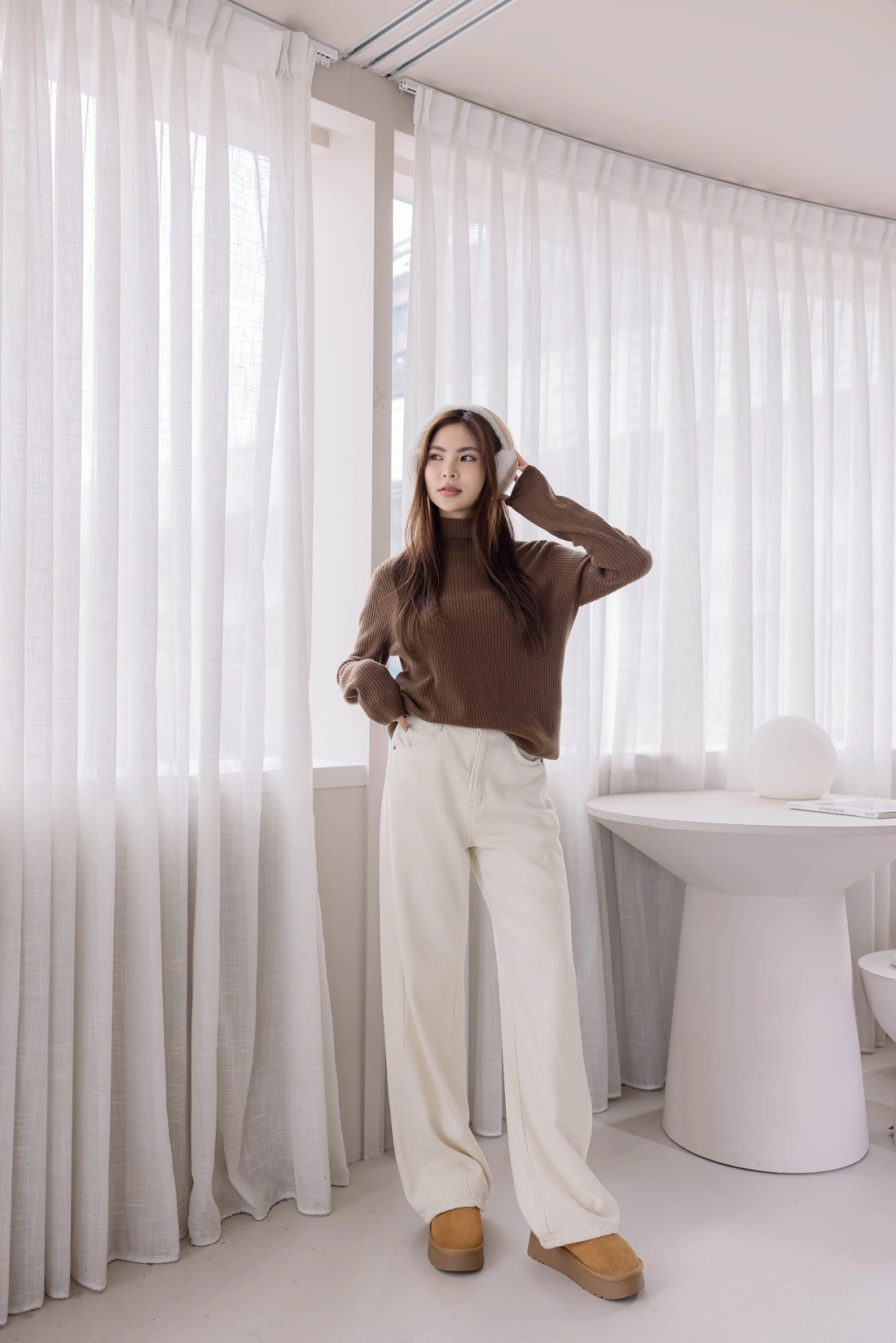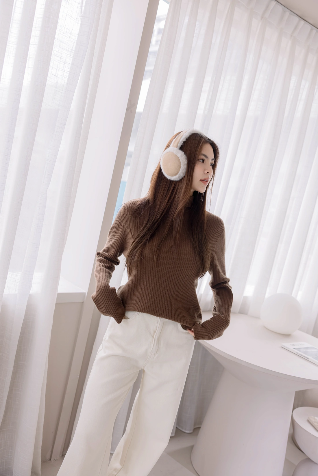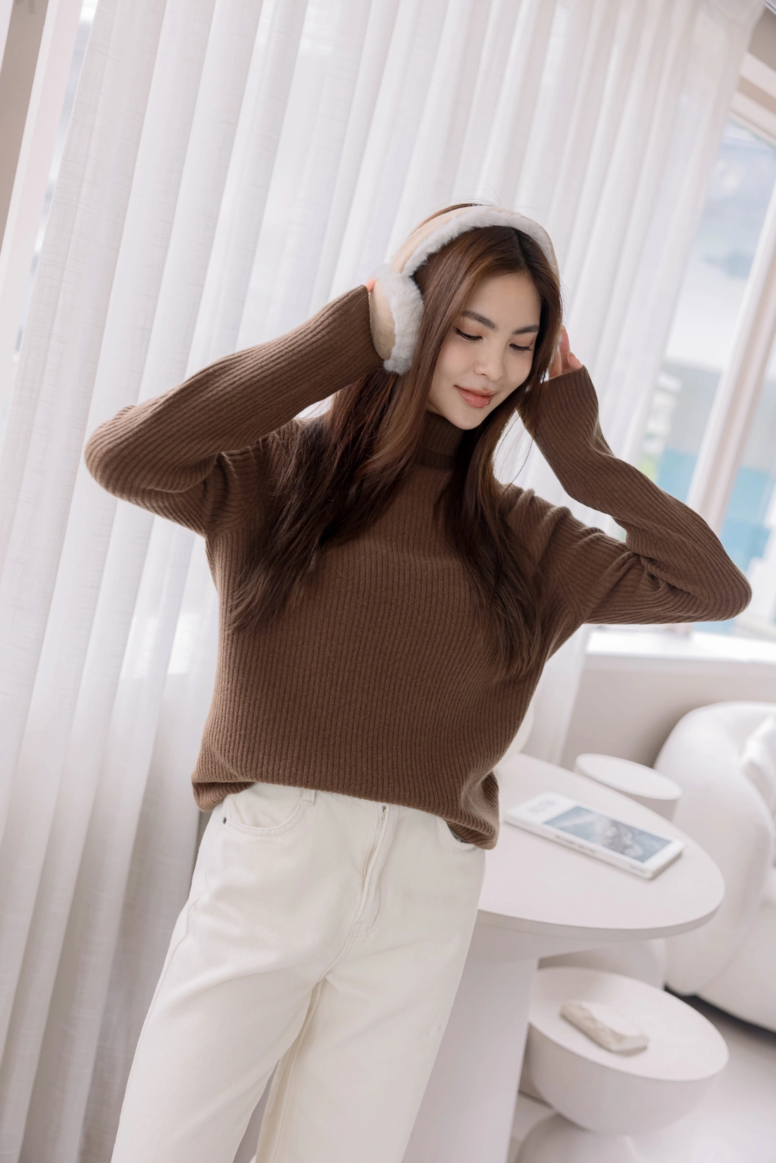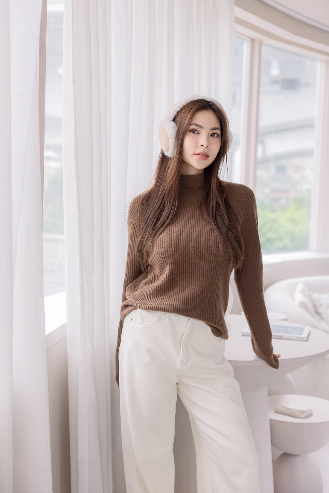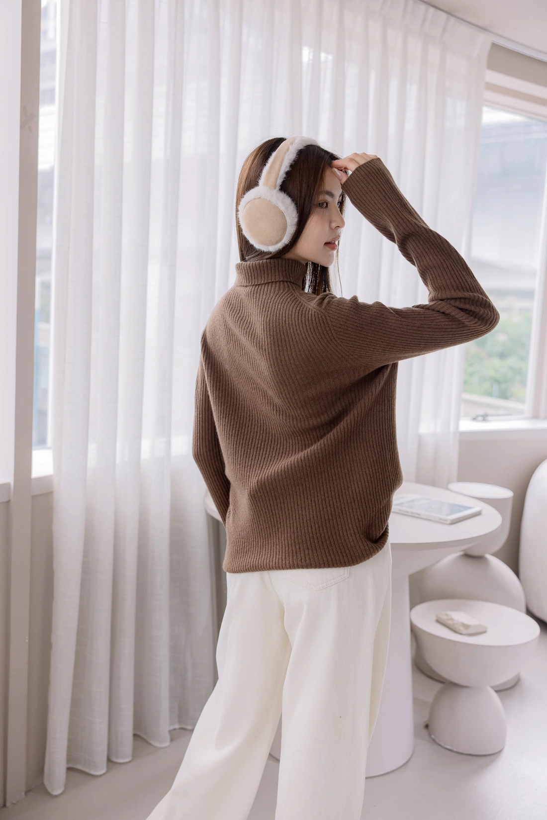 無縫高領毛衣/彈性非常好適合各身形/直條織紋布料
