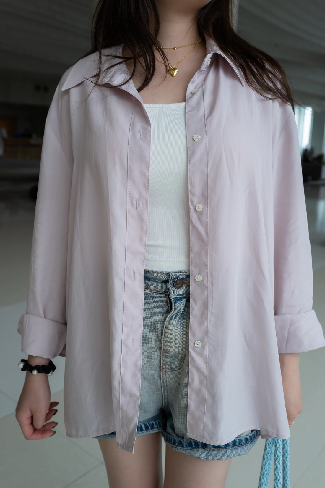 舒服絲滑面料材質/單色排扣設計/簡約百搭包色款襯衫