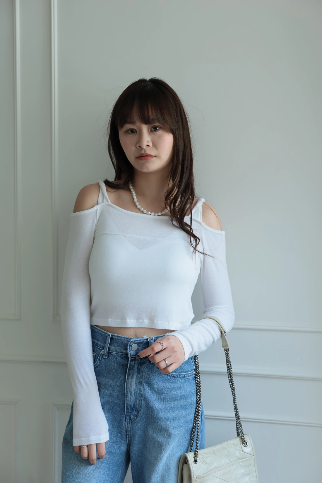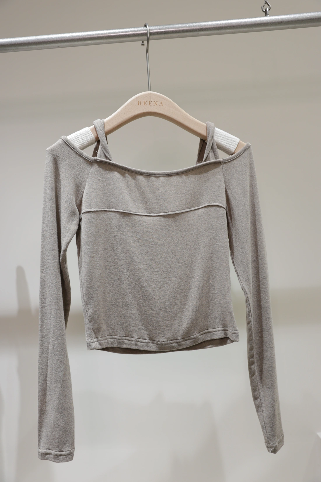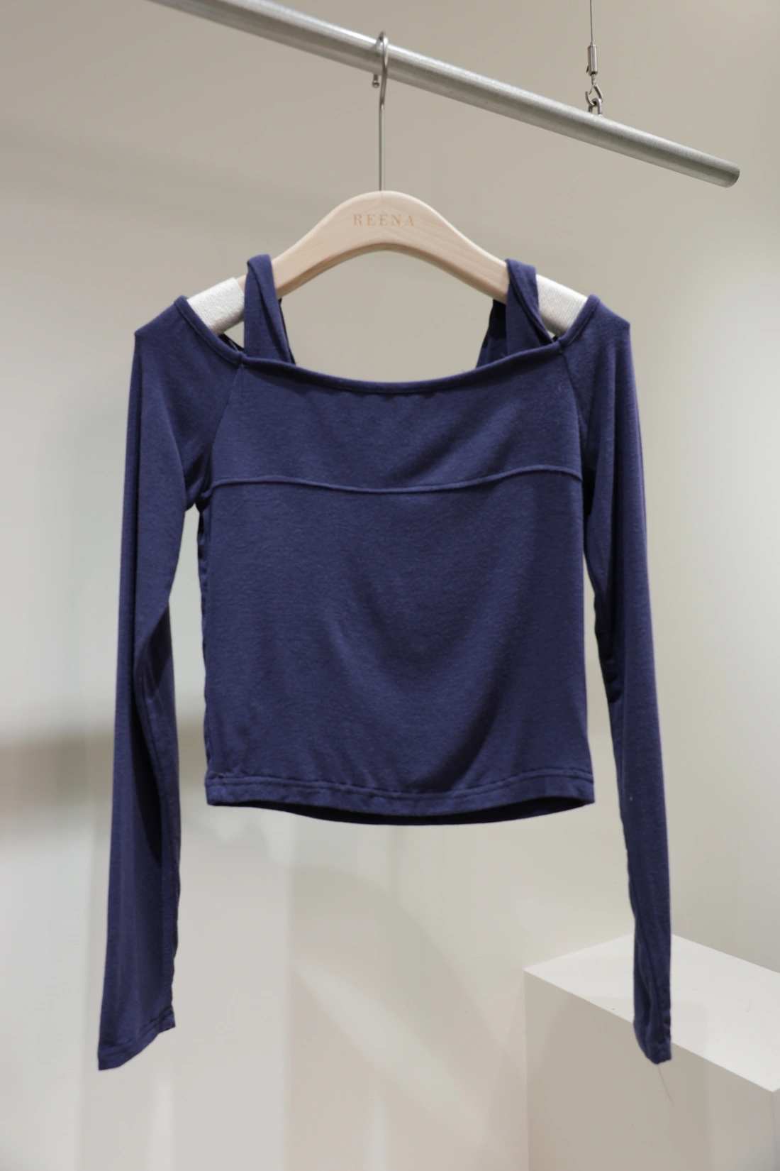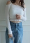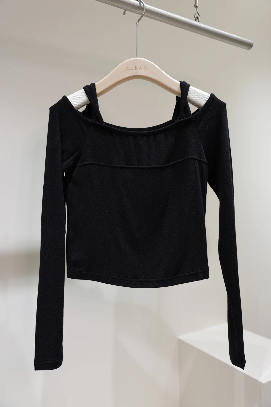 肩扭結設計/露香肩設計上衣/微短版衣長親膚材質