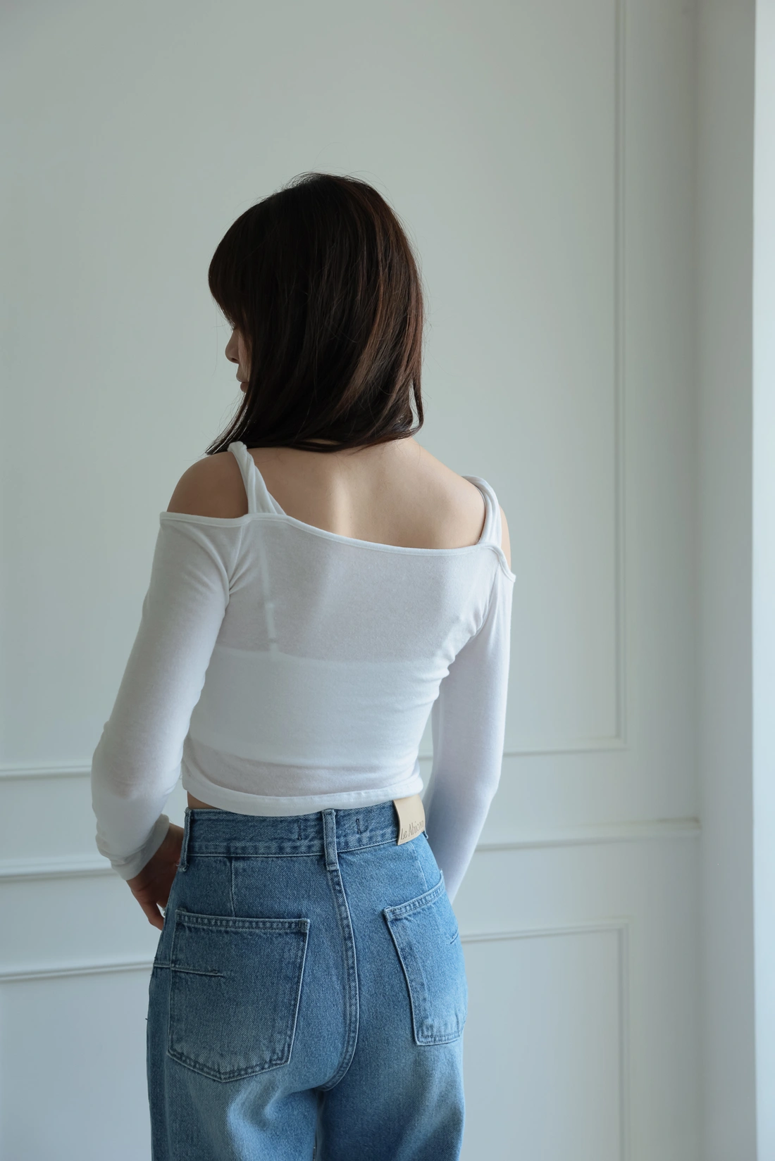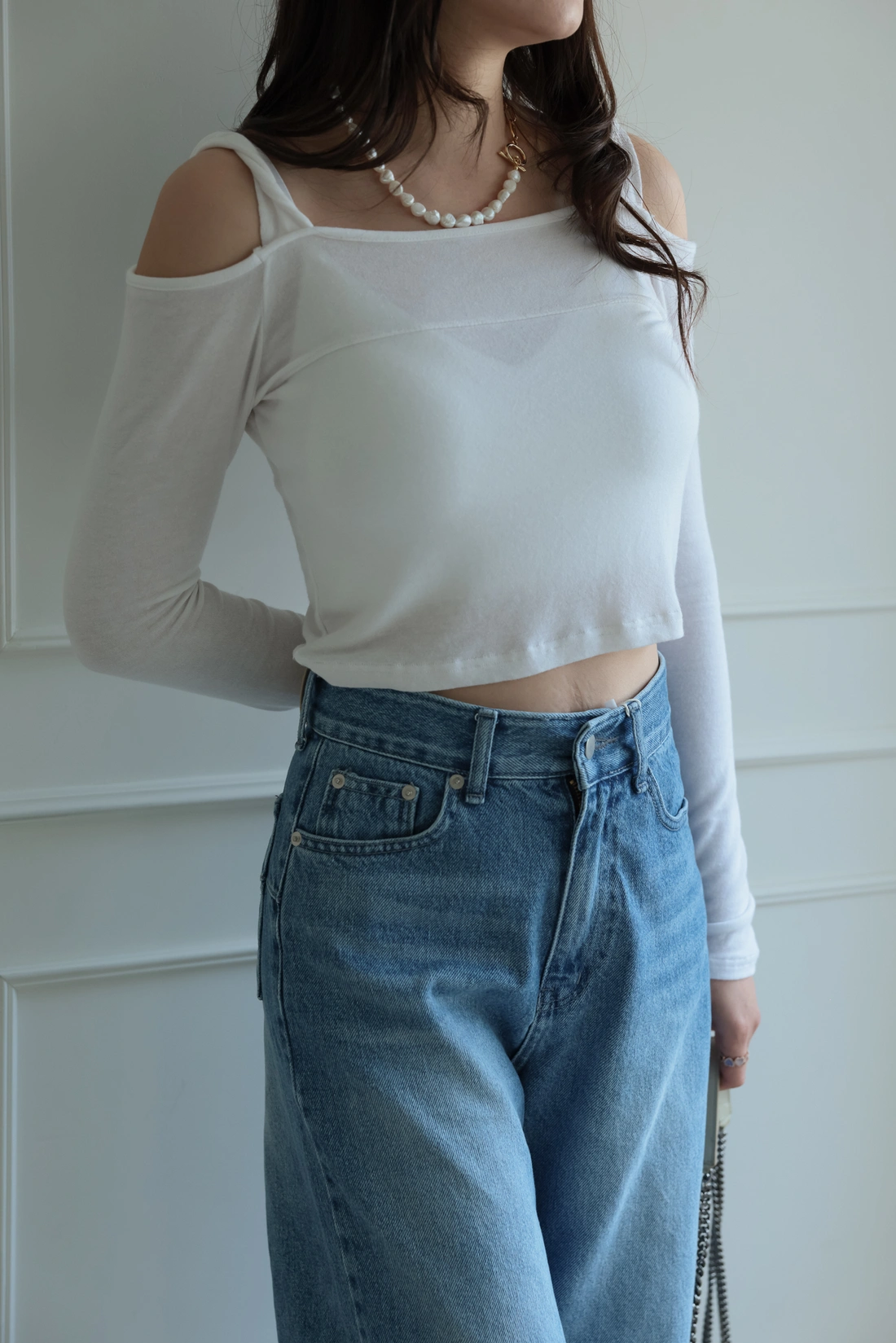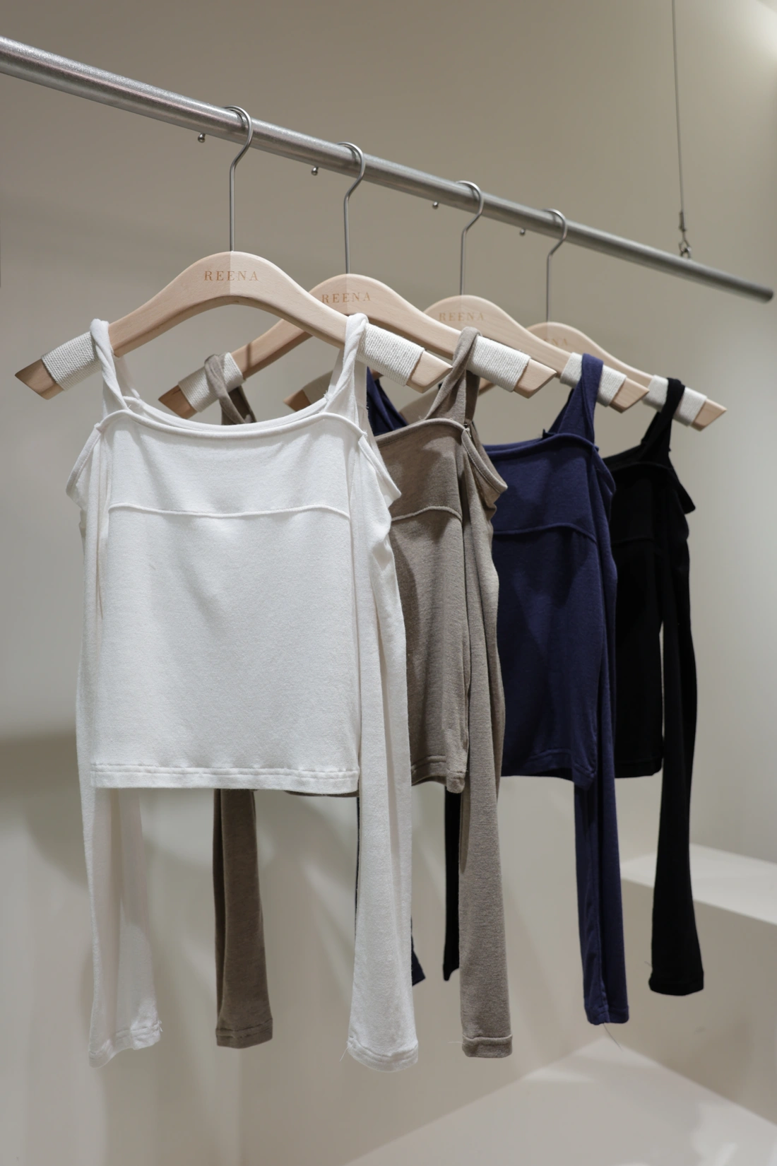 肩扭結設計/露香肩設計上衣/微短版衣長親膚材質