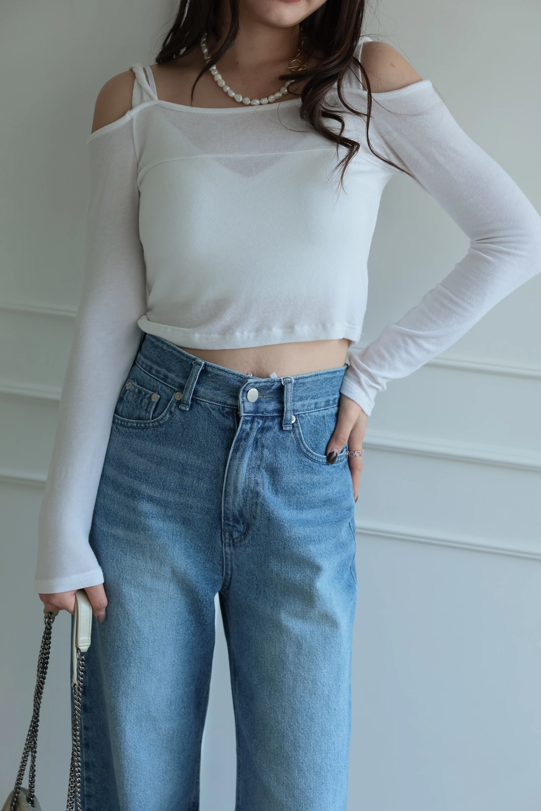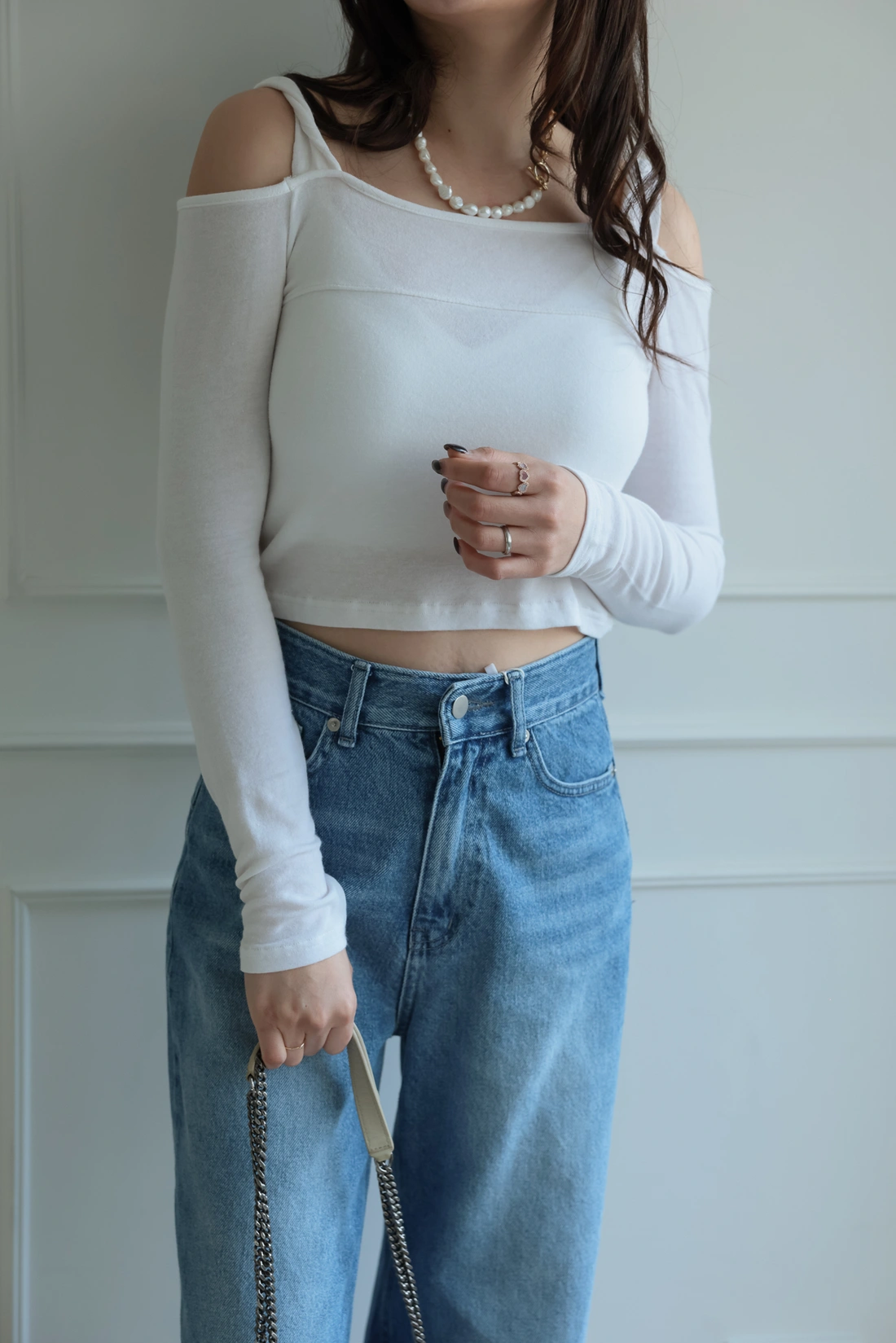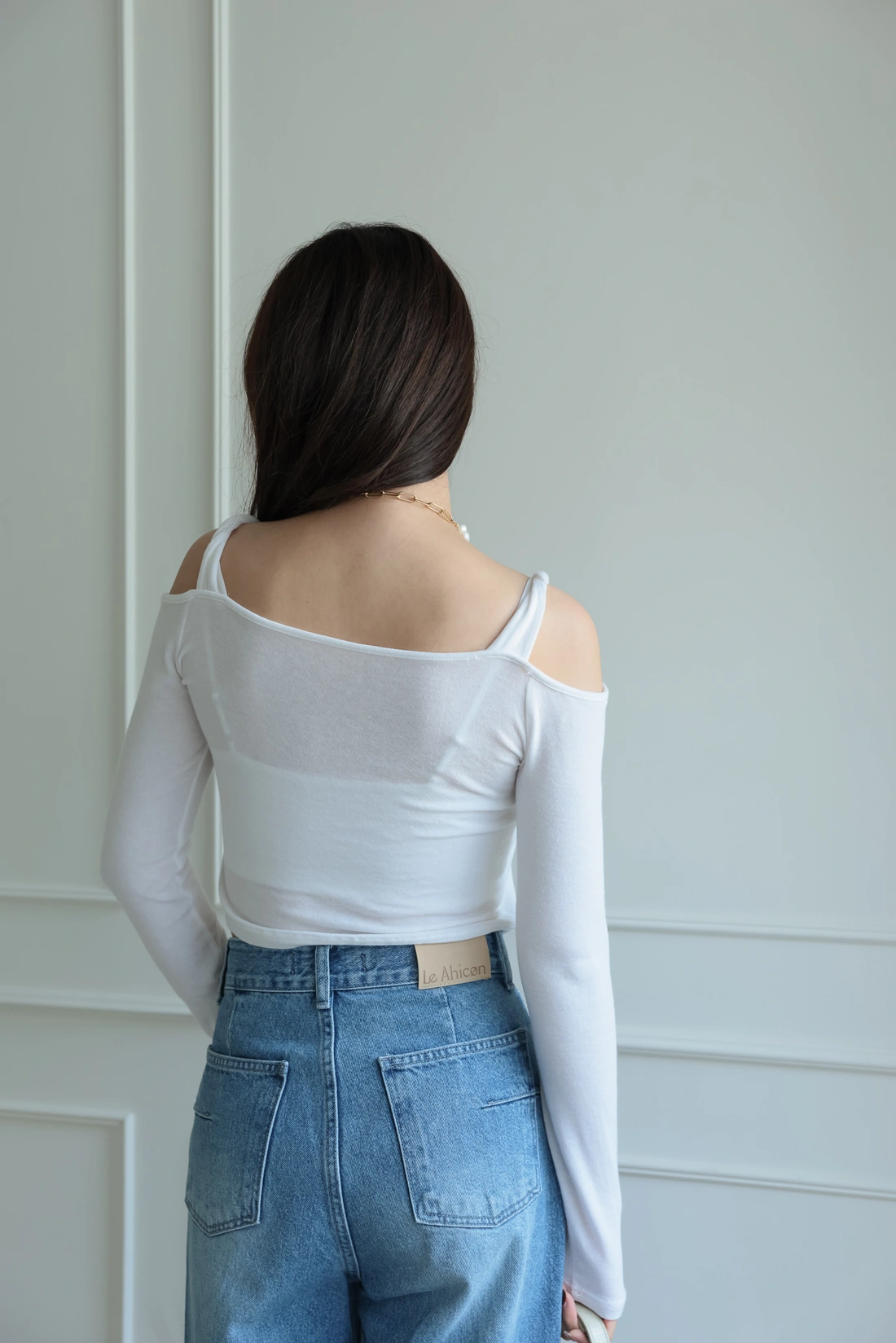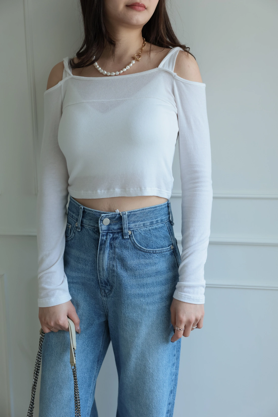 肩扭結設計/露香肩設計上衣/微短版衣長親膚材質