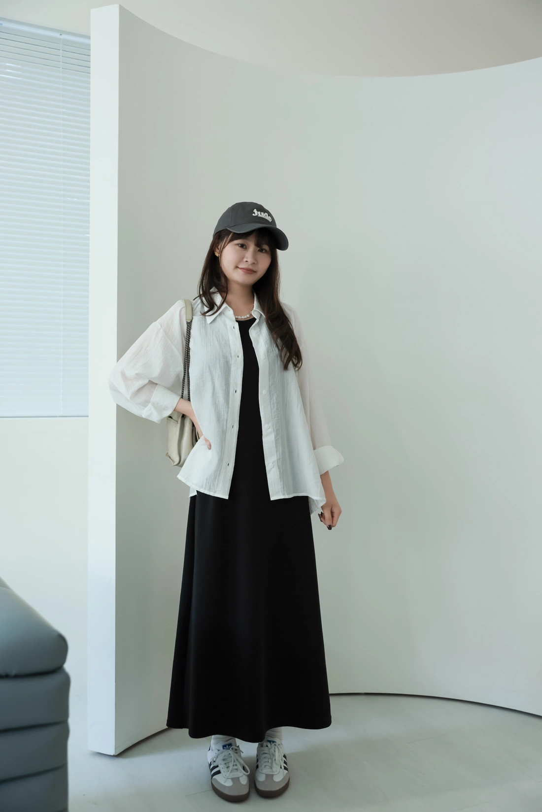 壓紋設計襯衫/排釦設計/夏天必備簡約單色襯衫