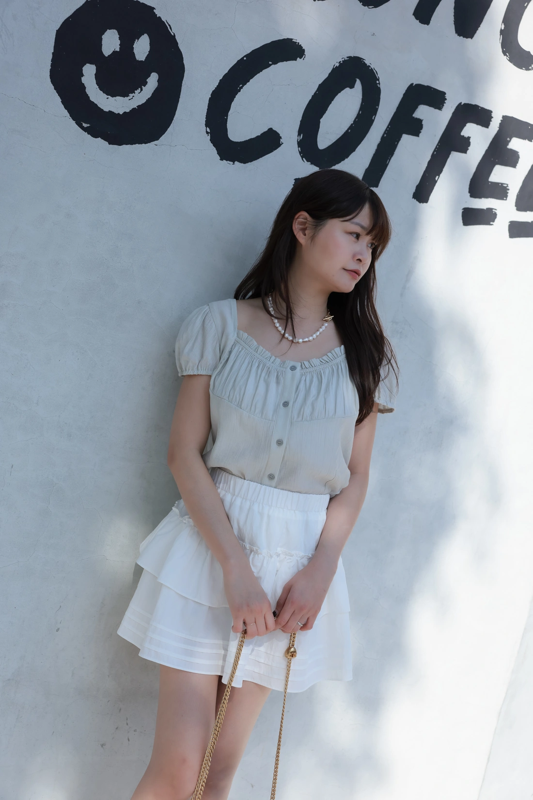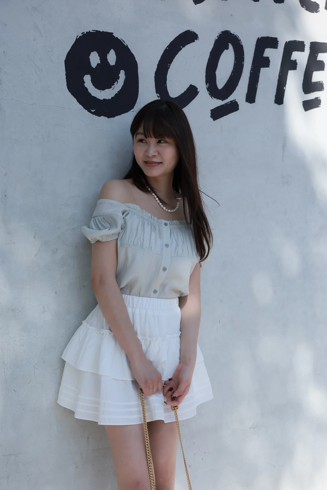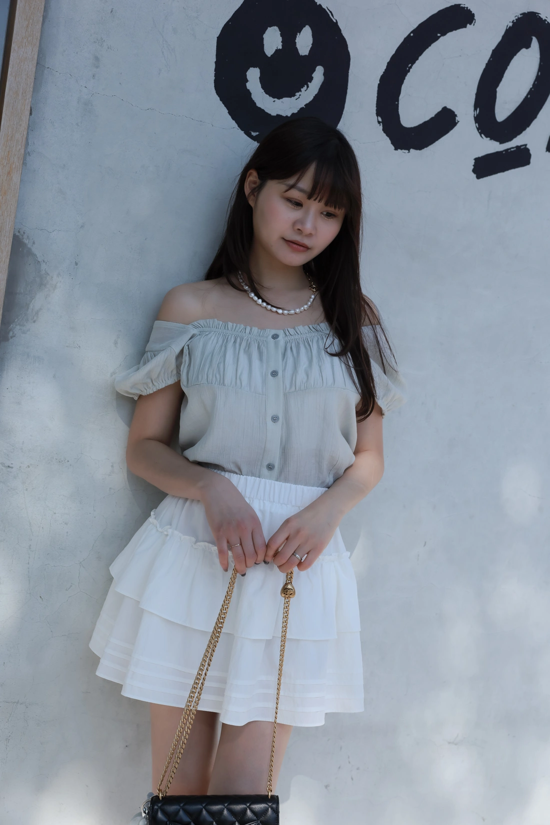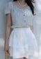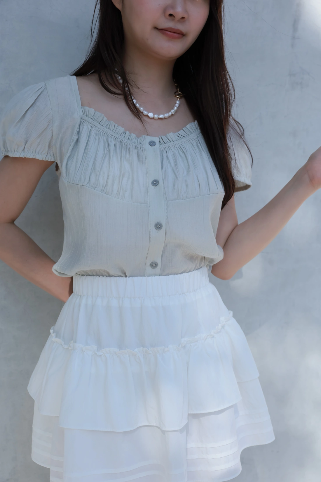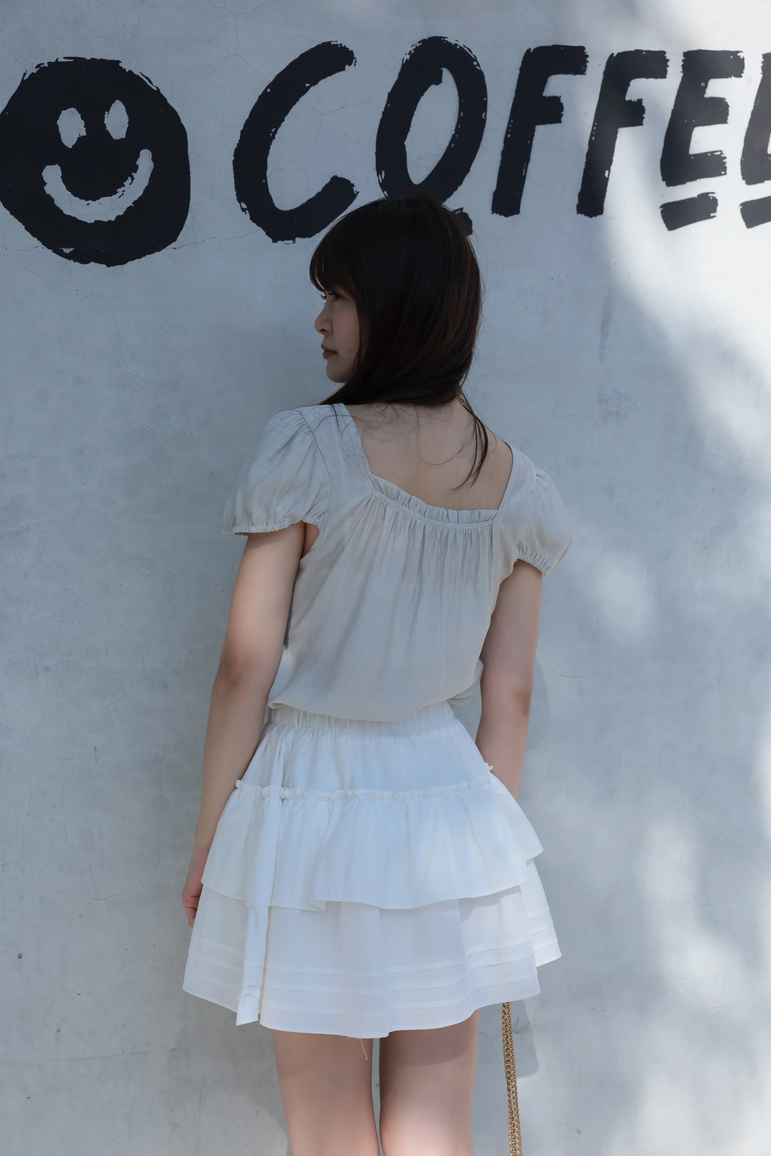 法式風格甜美上衣/方領排釦設計/透膚材質超舒服