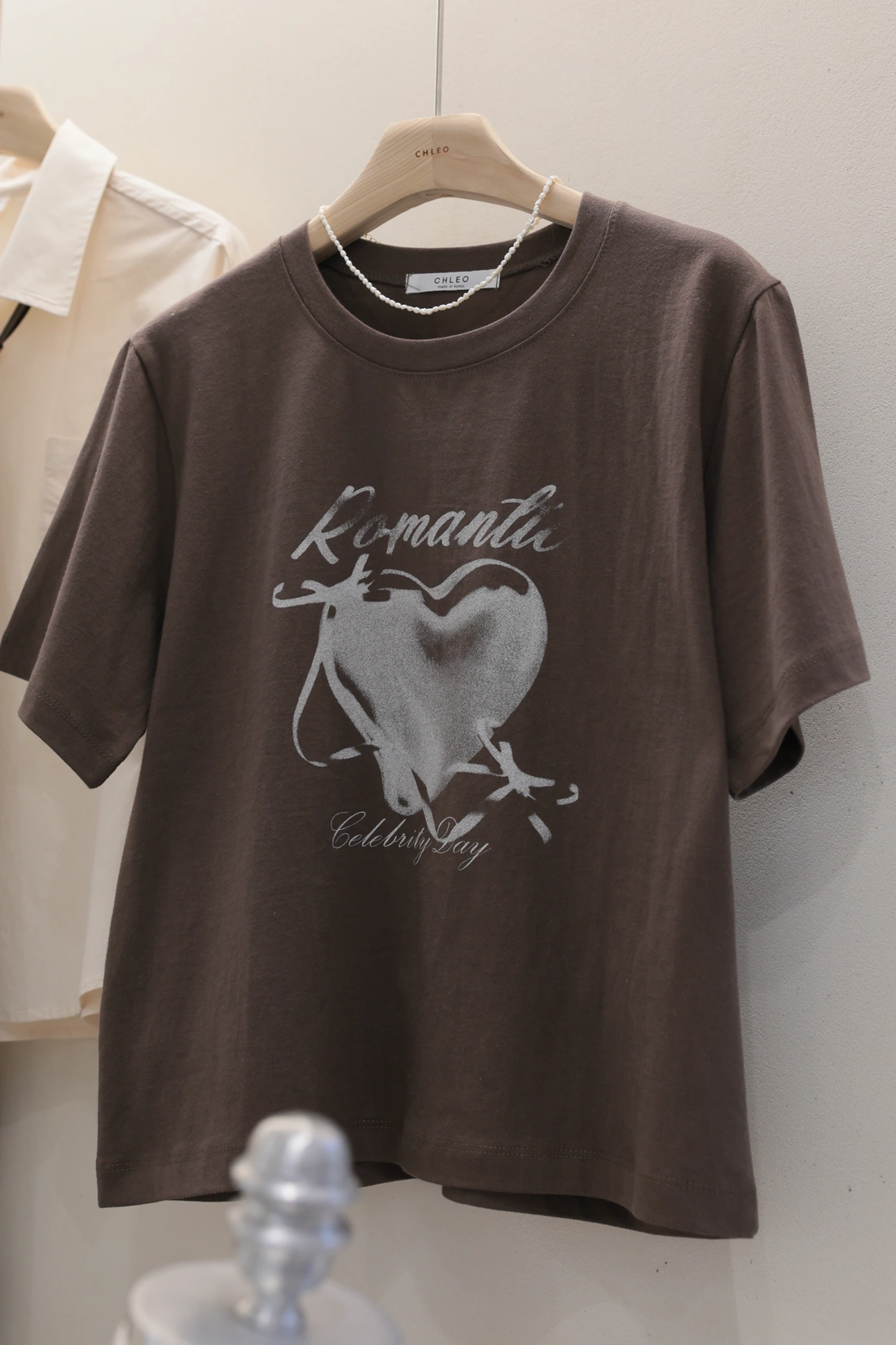 舒適棉質材質/正面印有愛心圖案文字標語/簡約經典短袖上衣