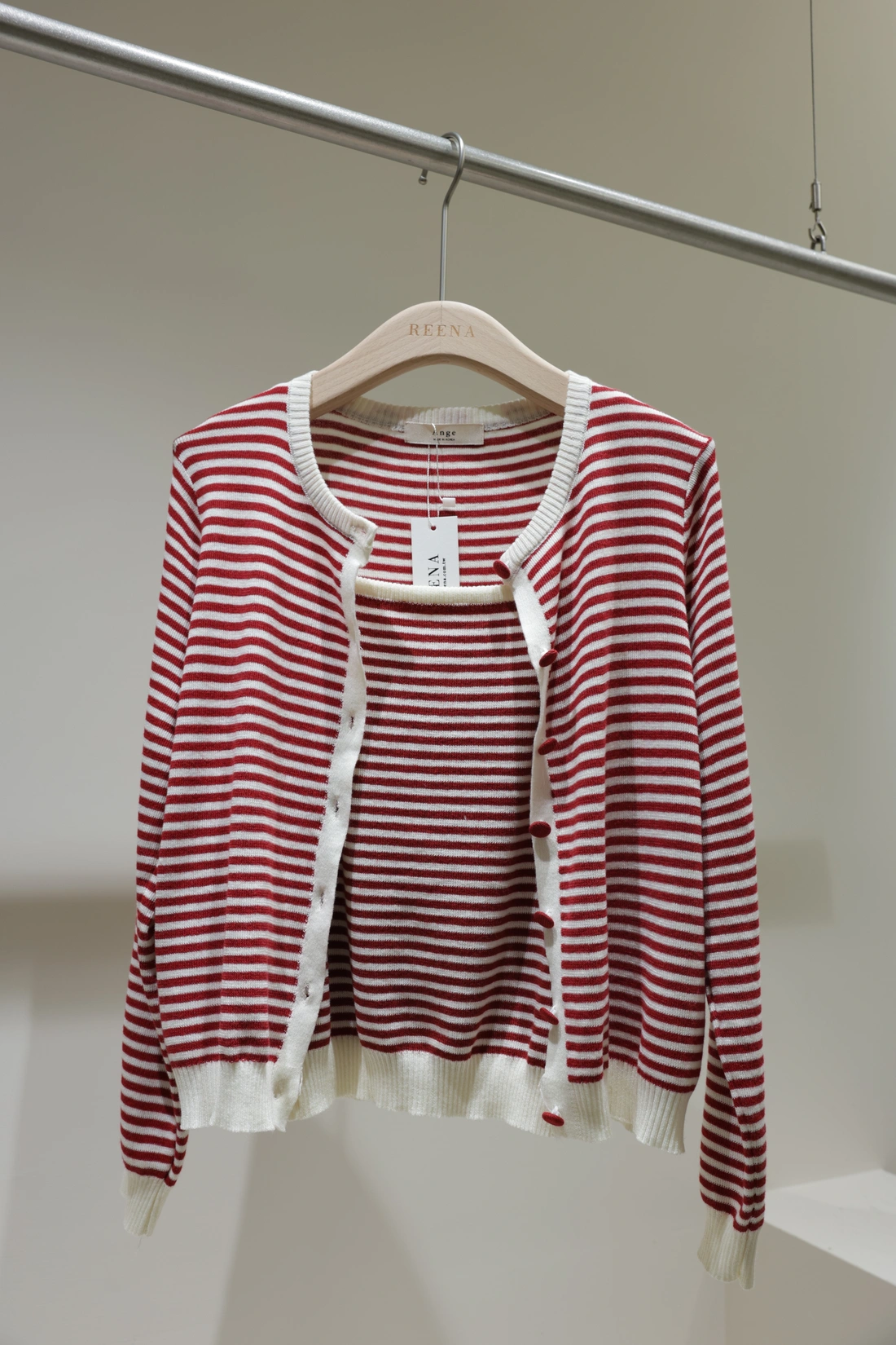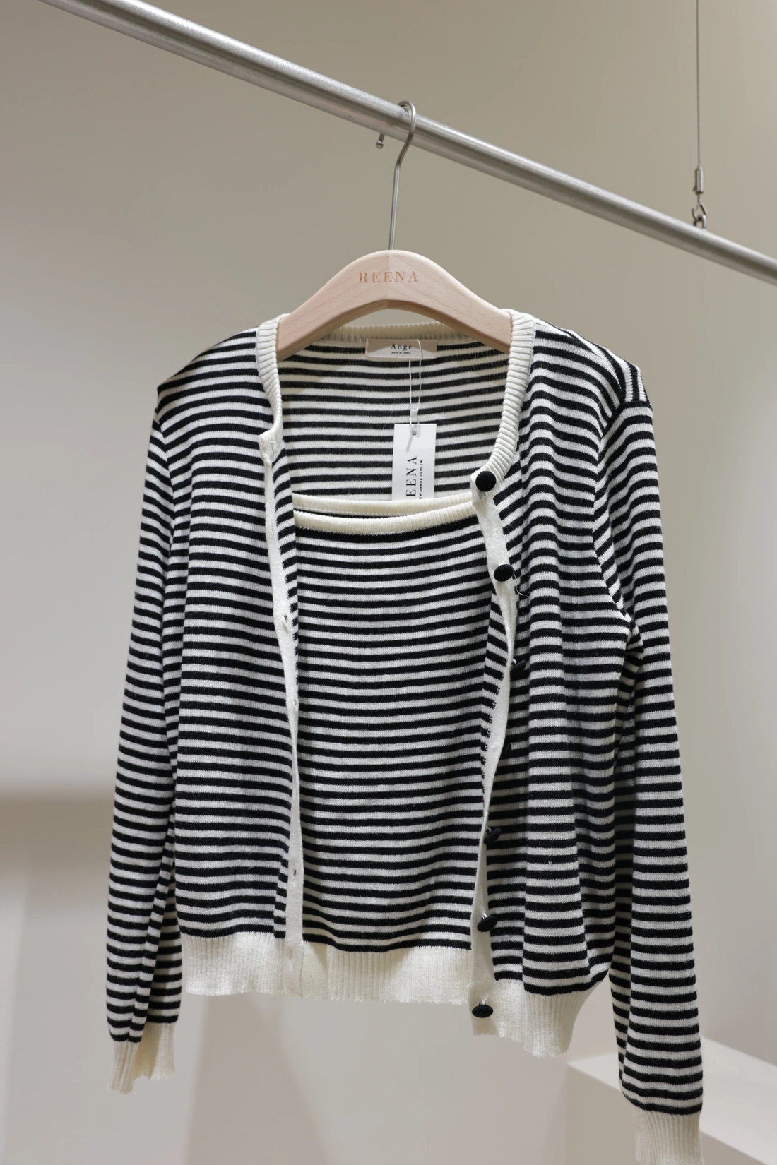 同色釦細節設計/條紋布料材質/一穿上衣穿搭就搞定