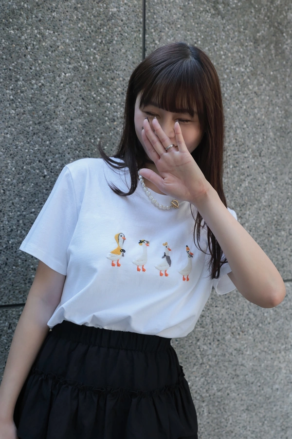 立體線縫走秀鵝設計/超可愛T桖/簡約風設計短袖