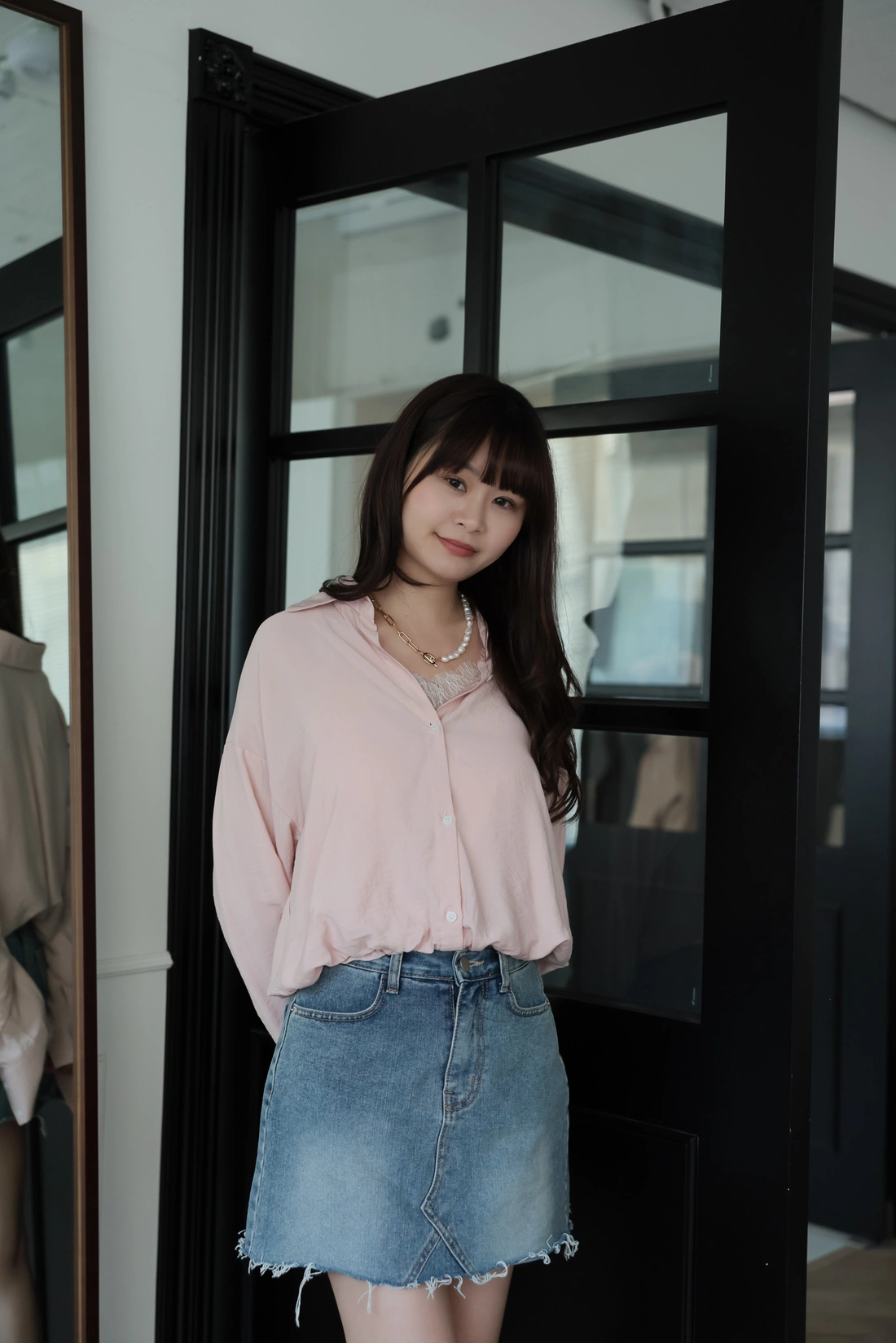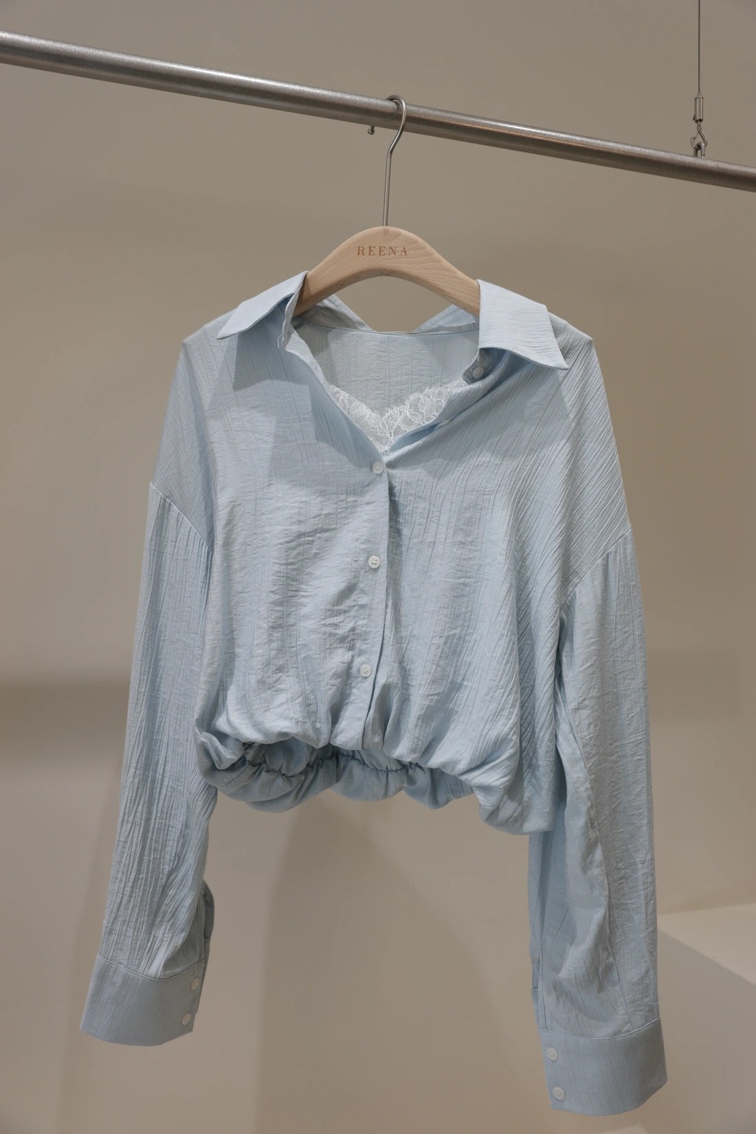 內裡細肩蕾絲造型設計/外罩排釦設計/下擺鬆緊設計