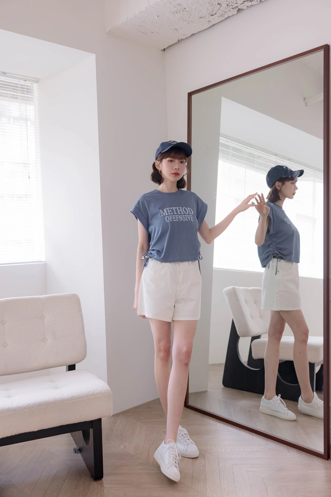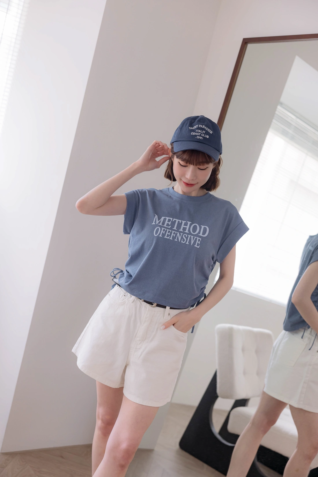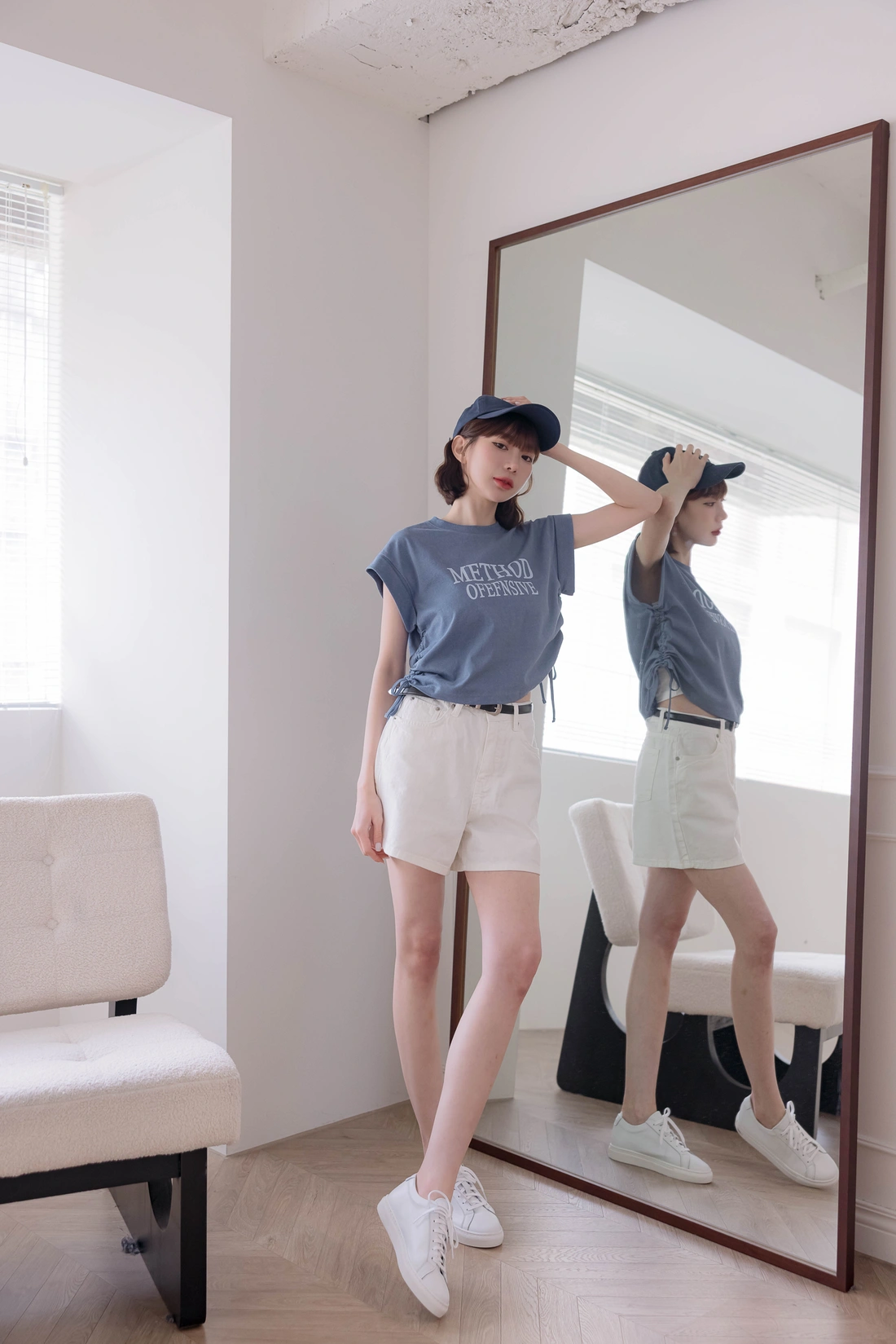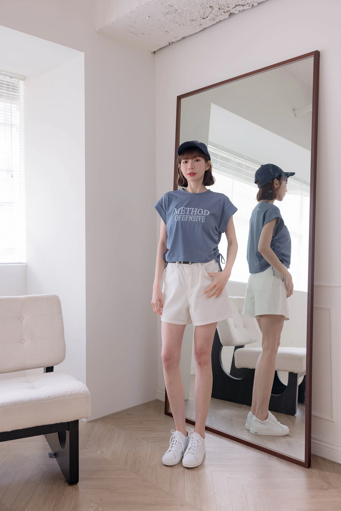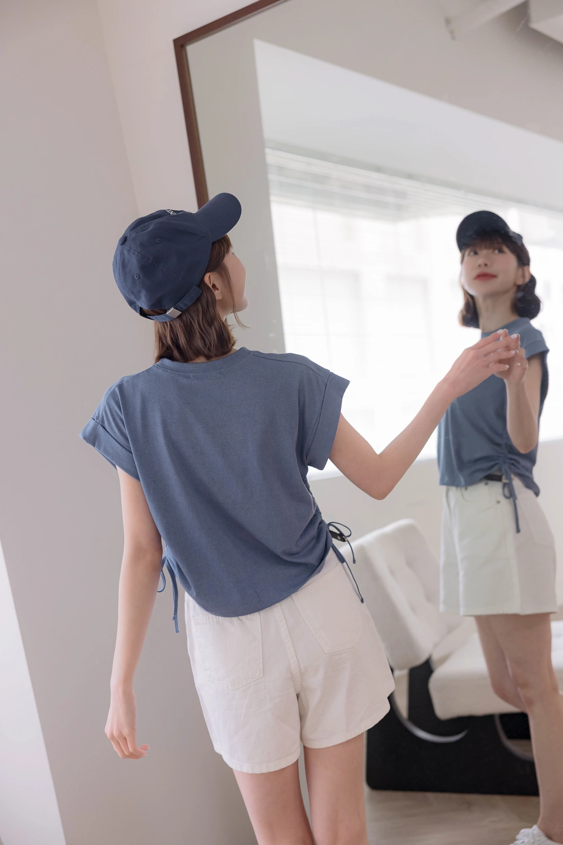 舒適棉質材質/兩側綁繩設計/落肩設計上衣