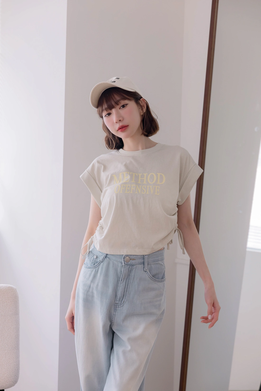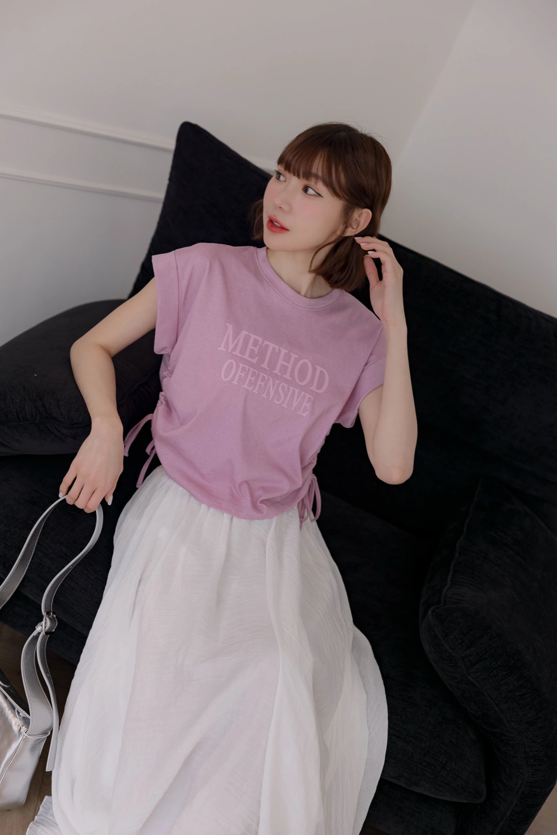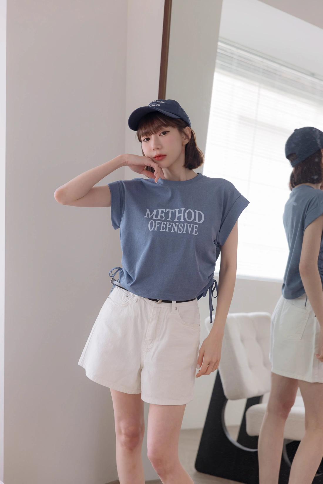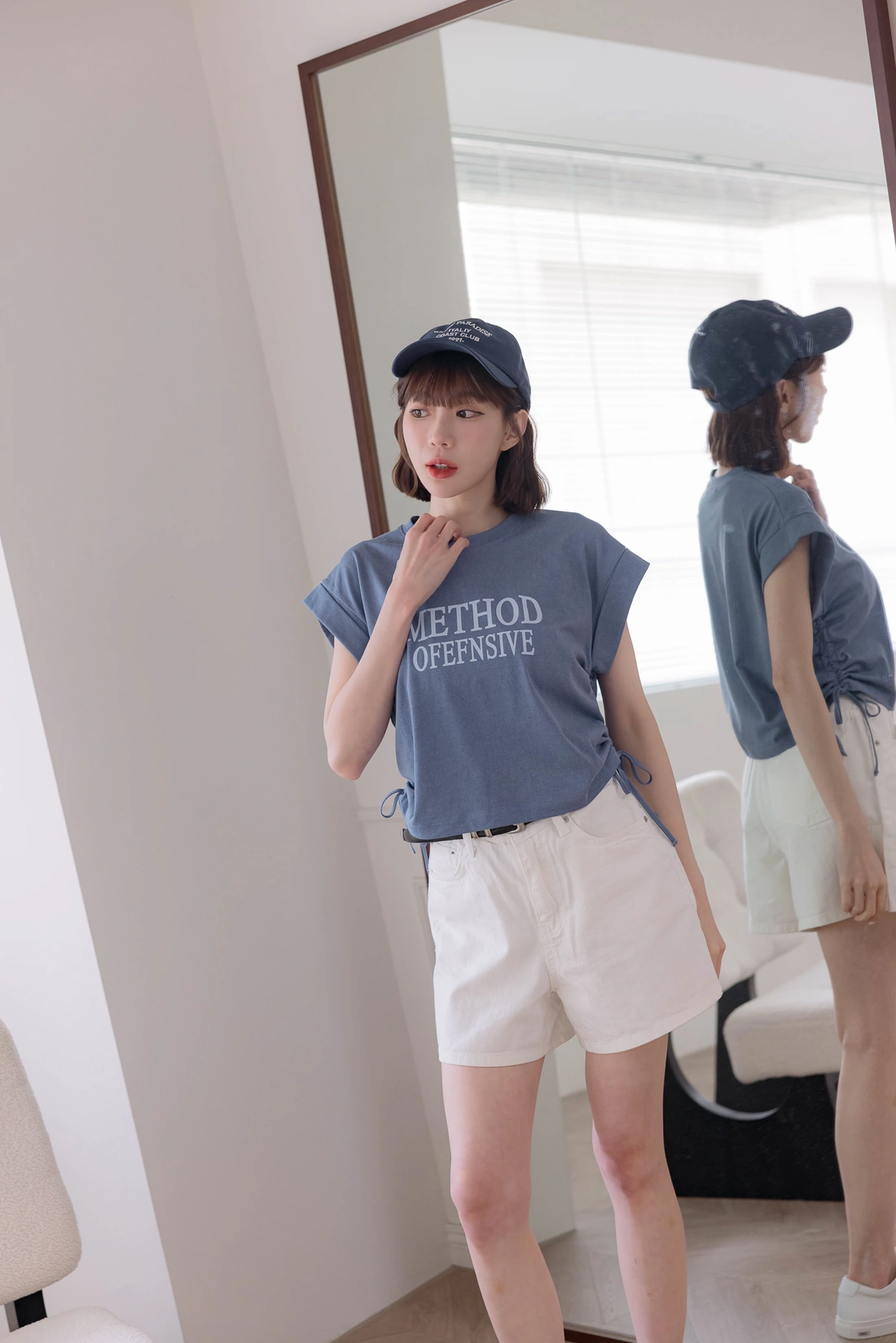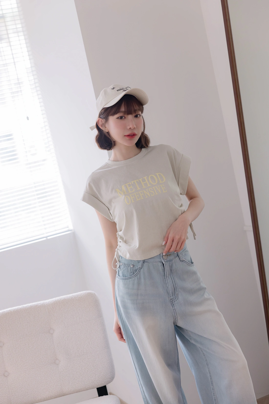 舒適棉質材質/兩側綁繩設計/落肩設計上衣