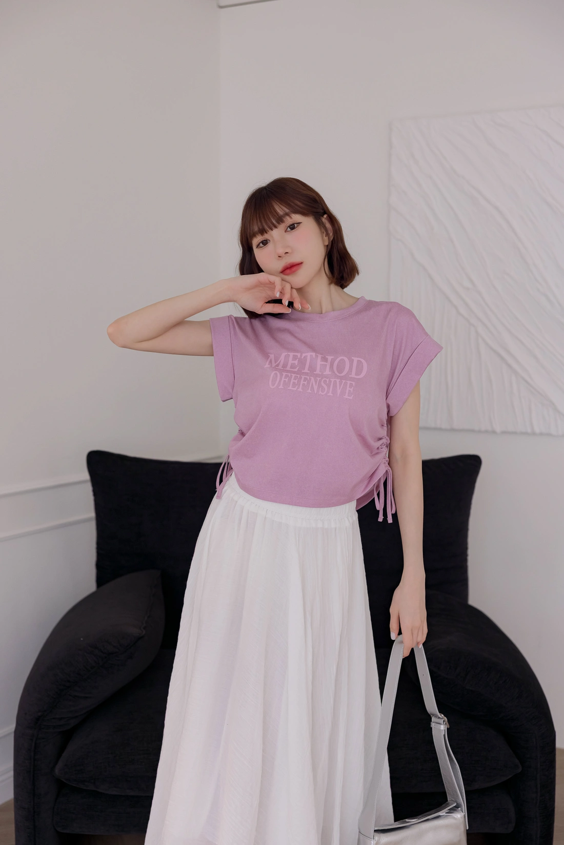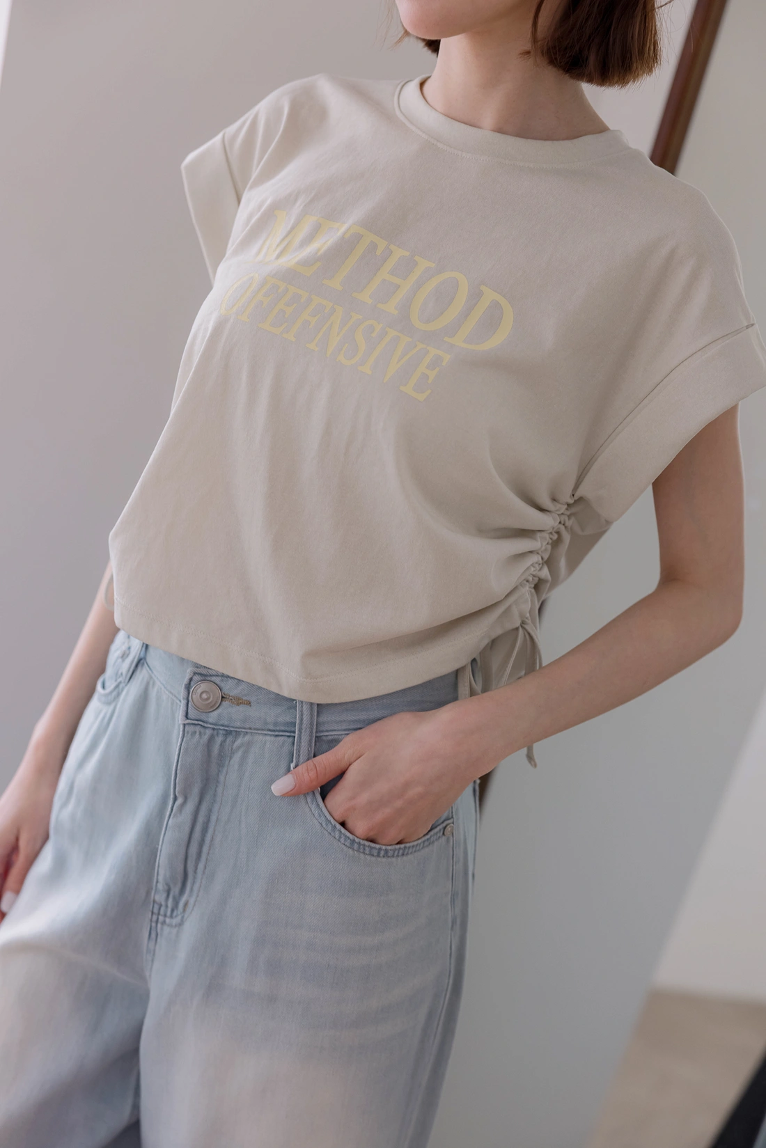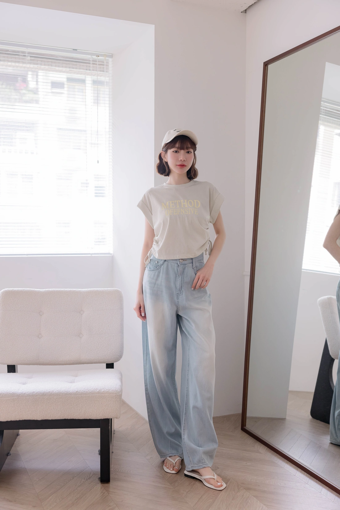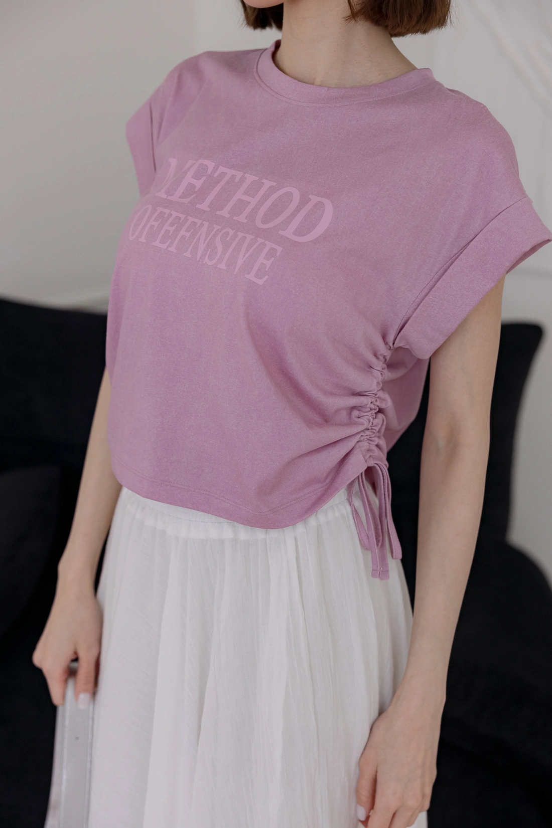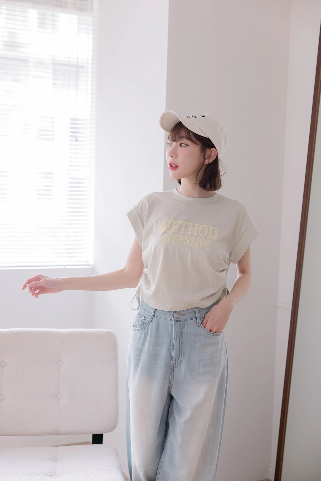 舒適棉質材質/兩側綁繩設計/落肩設計上衣