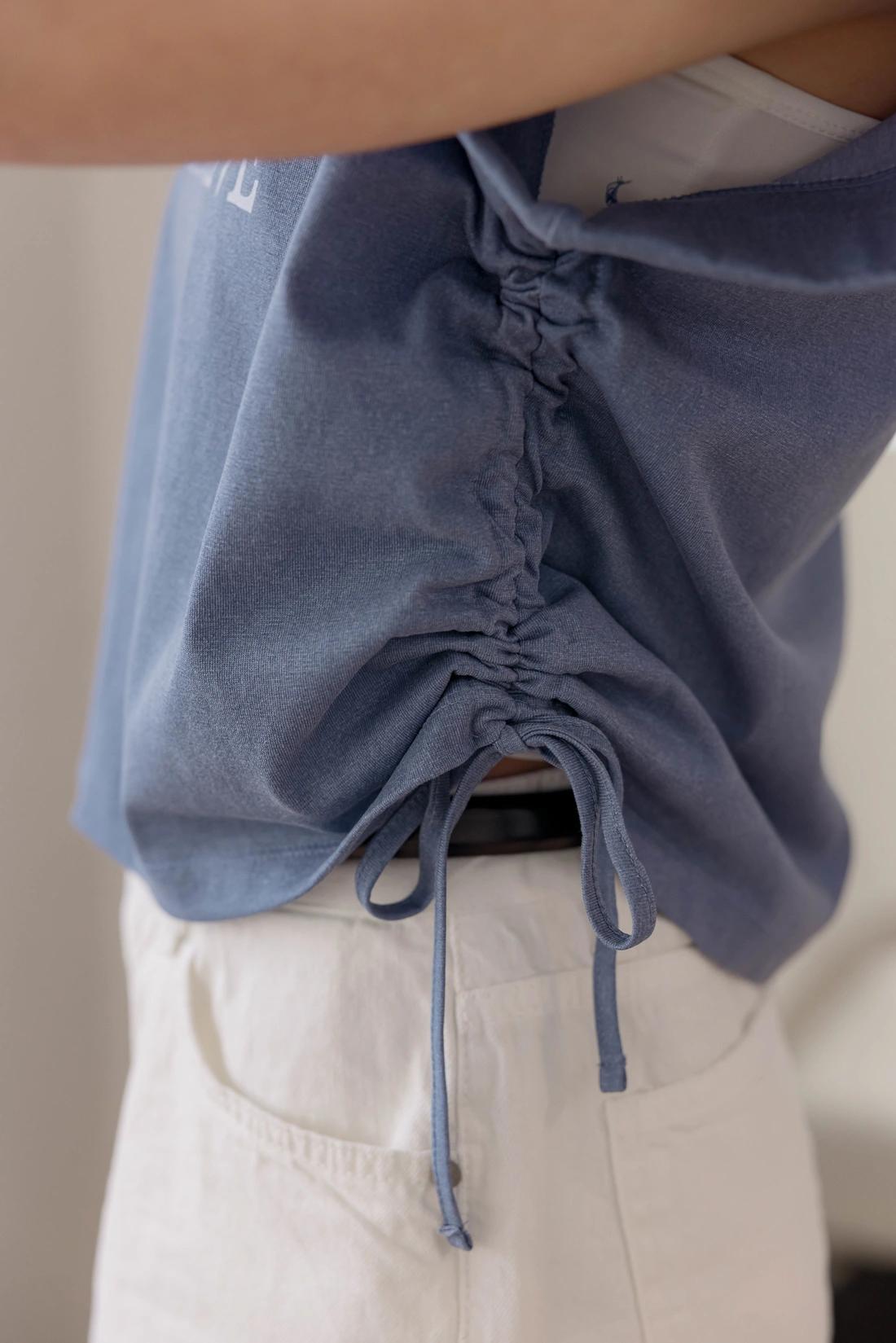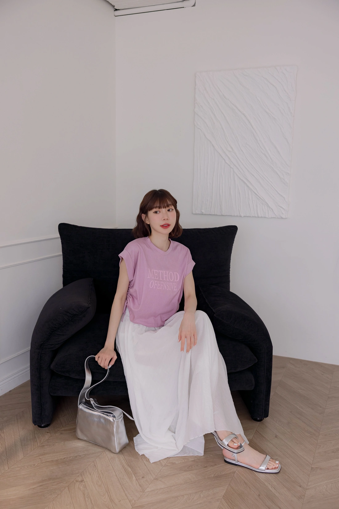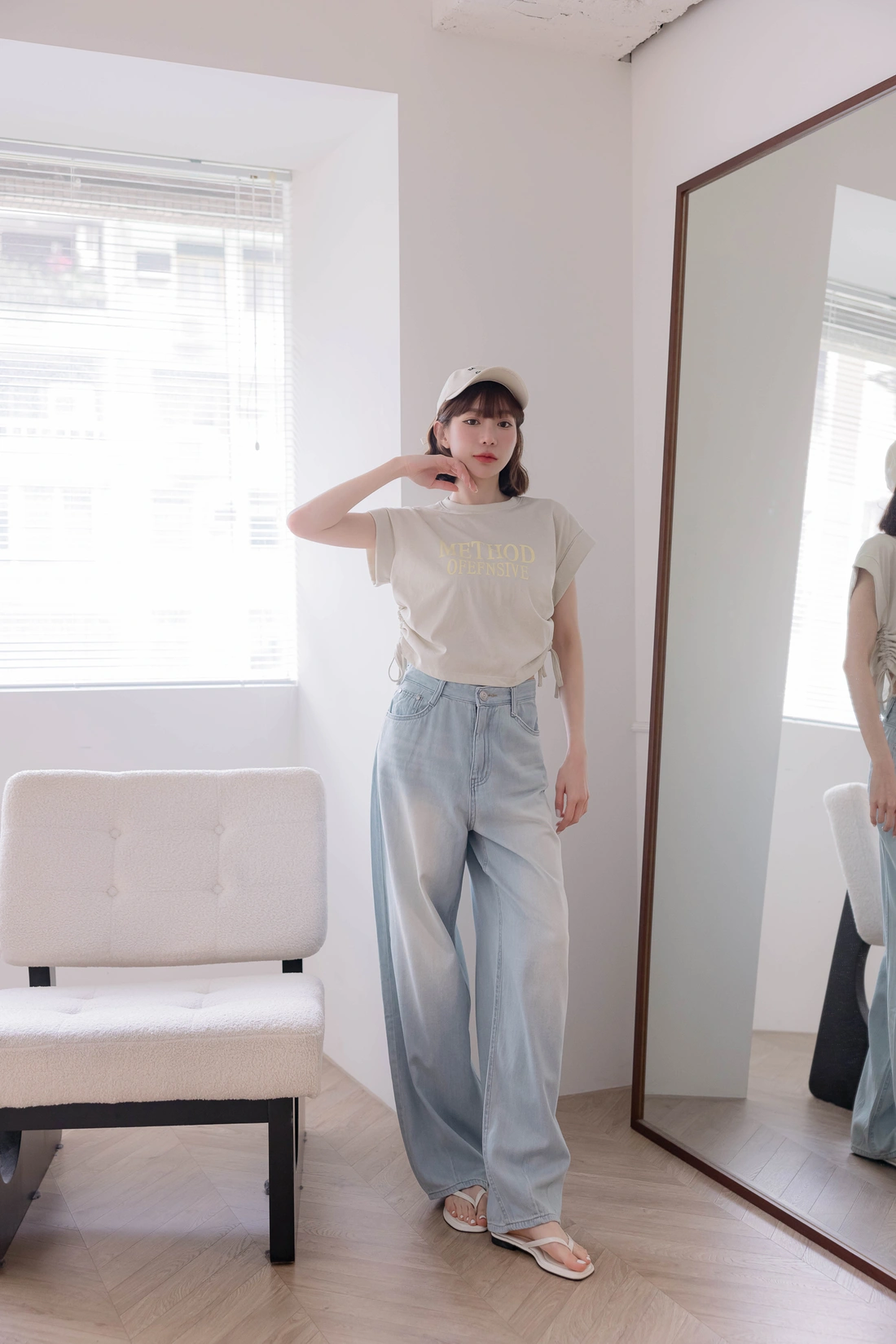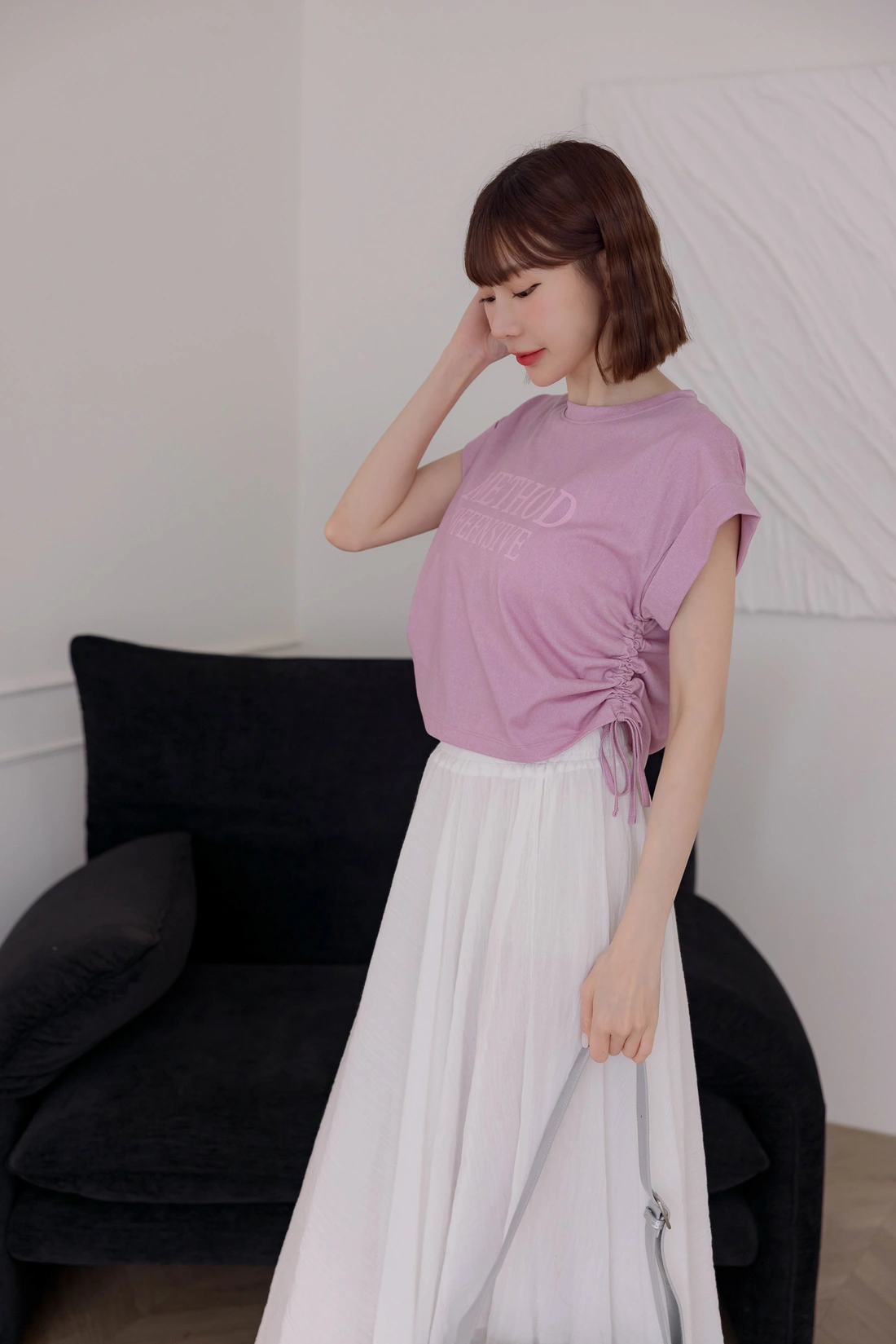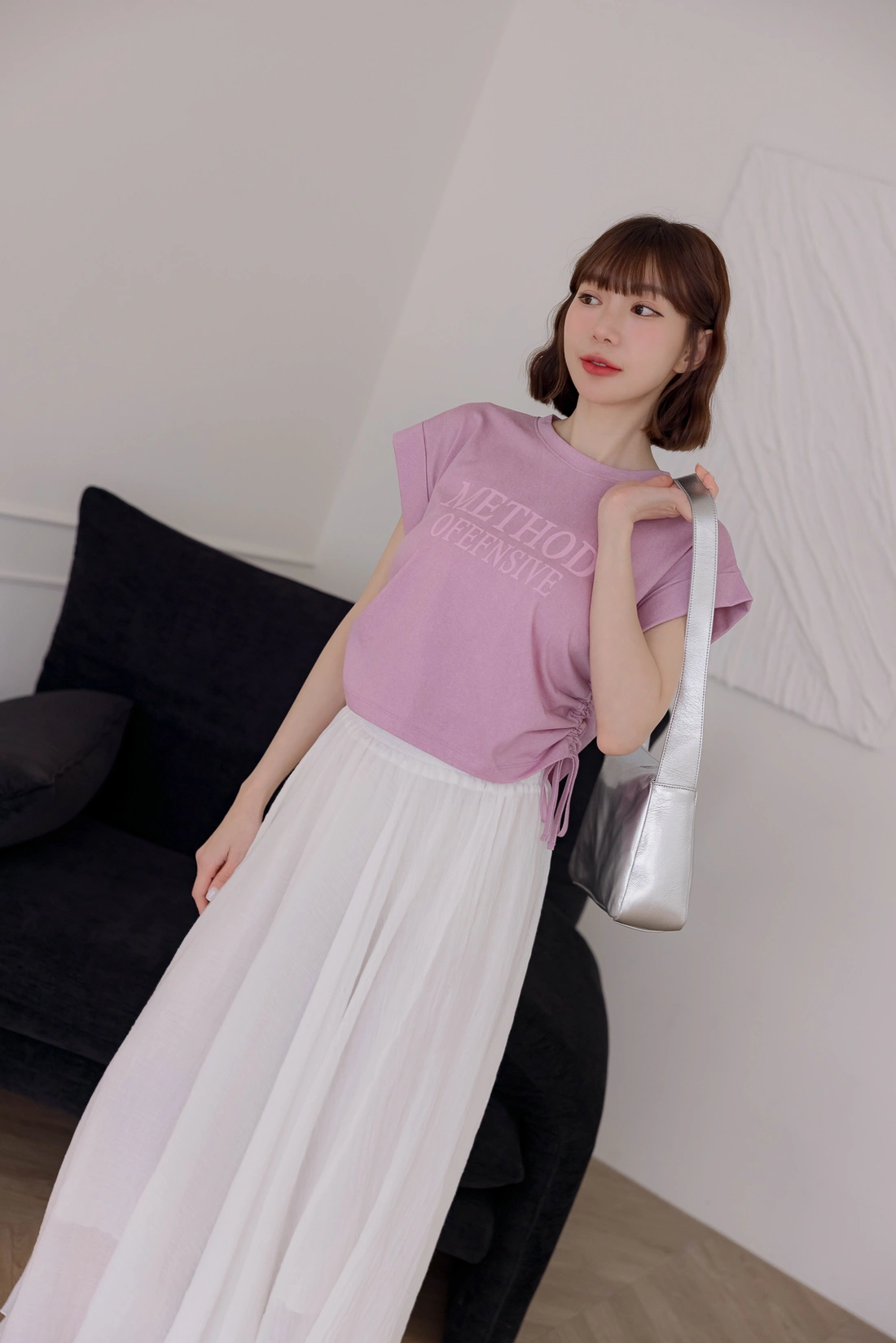 舒適棉質材質/兩側綁繩設計/落肩設計上衣