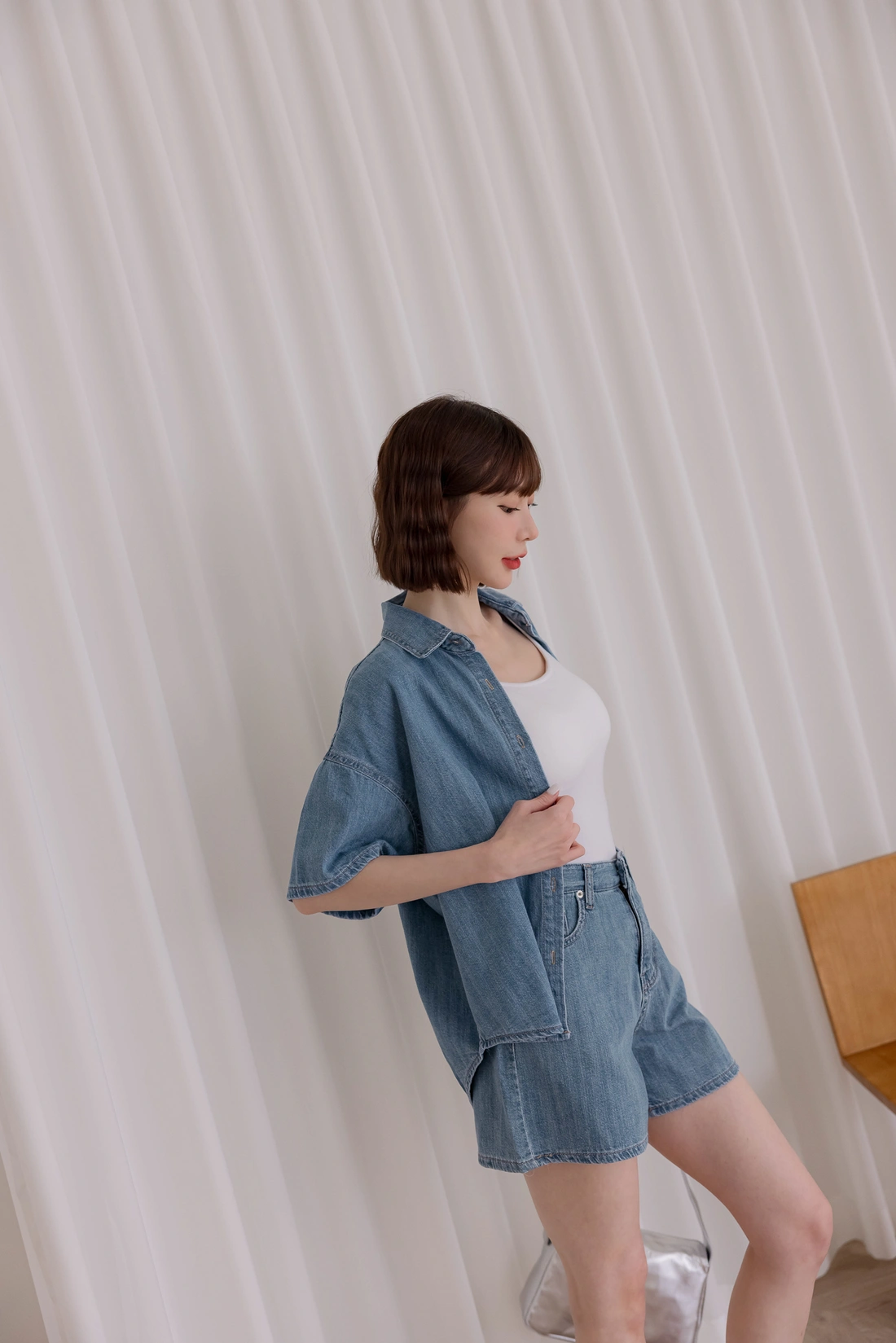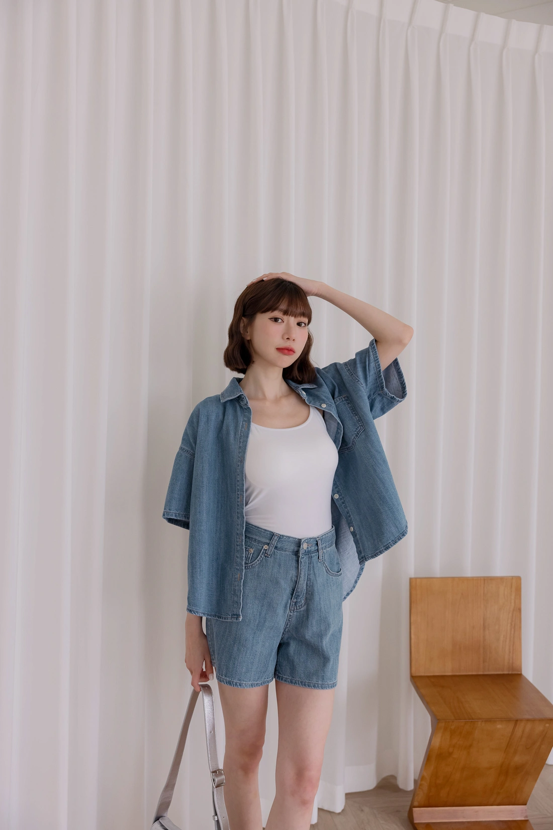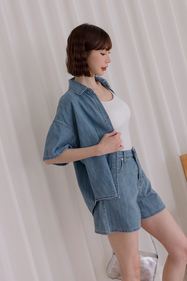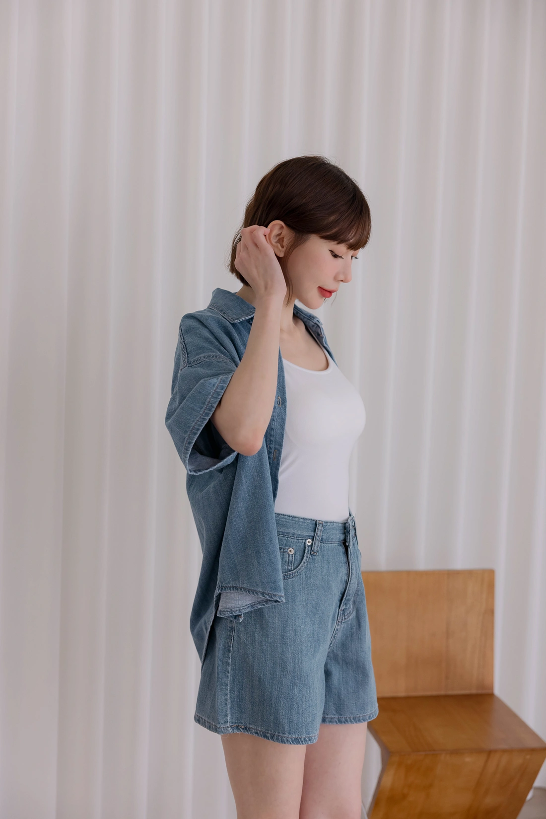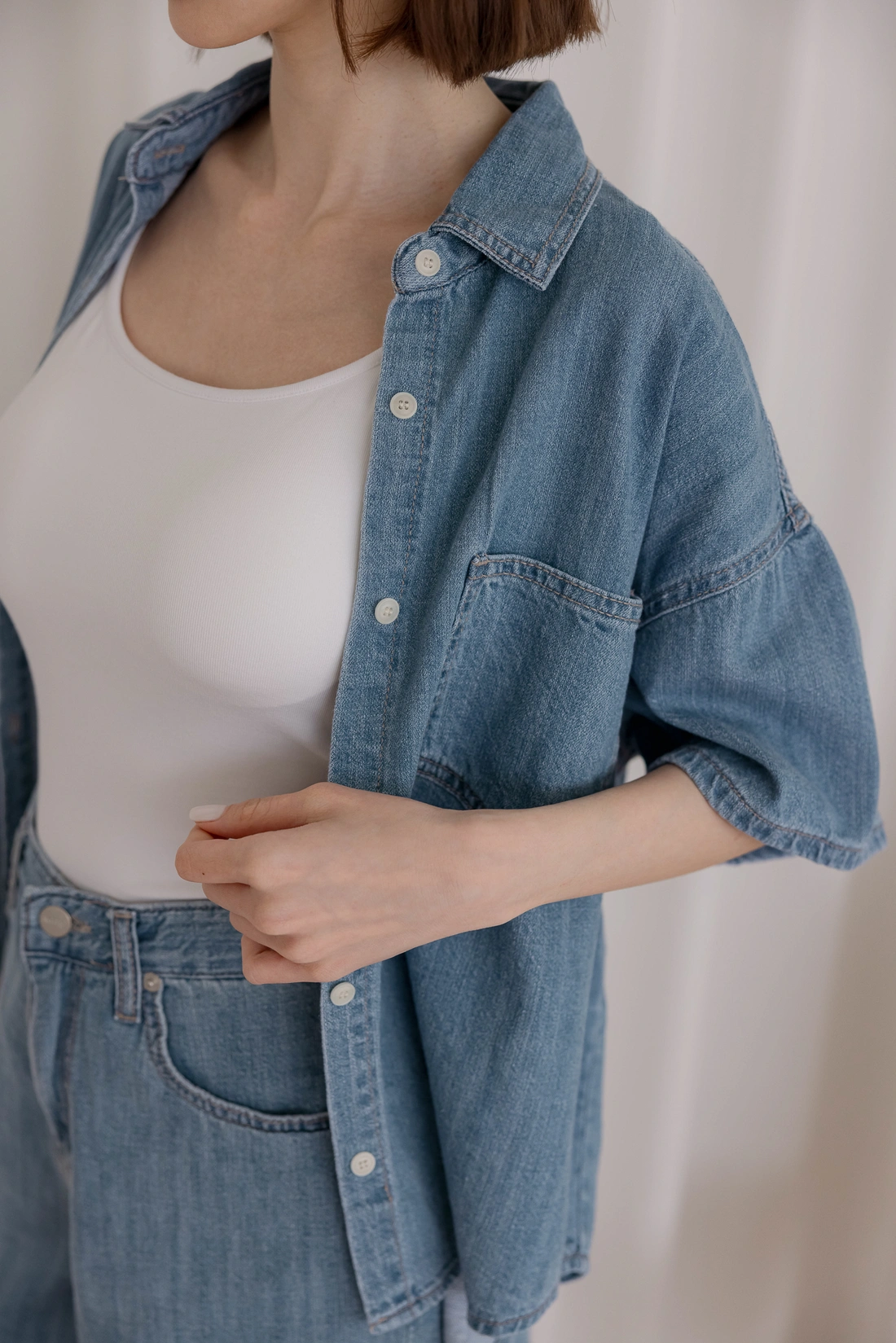 舒適棉質材質100%棉/水洗牛仔短袖襯衫