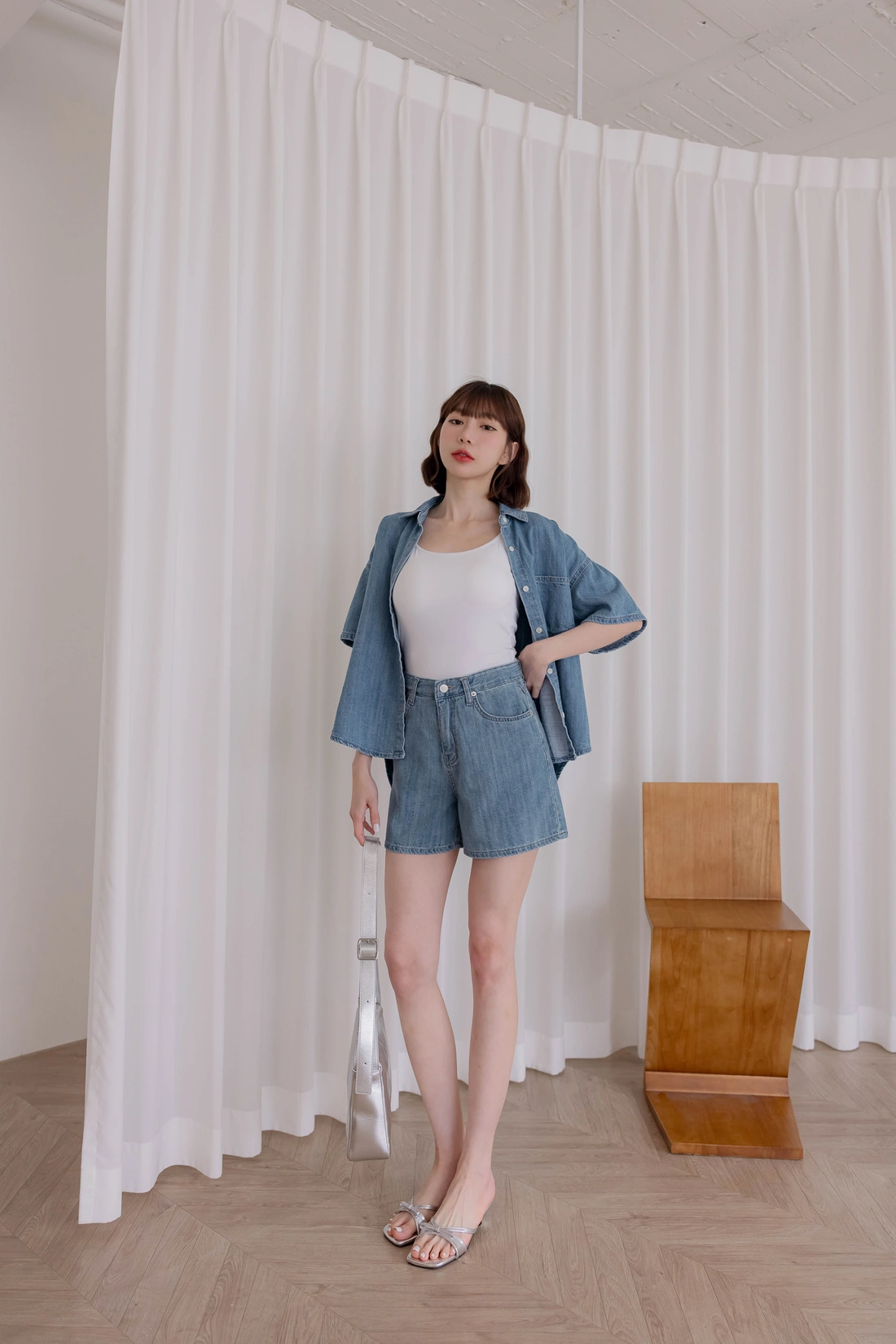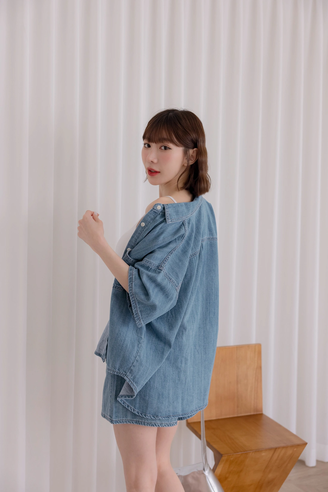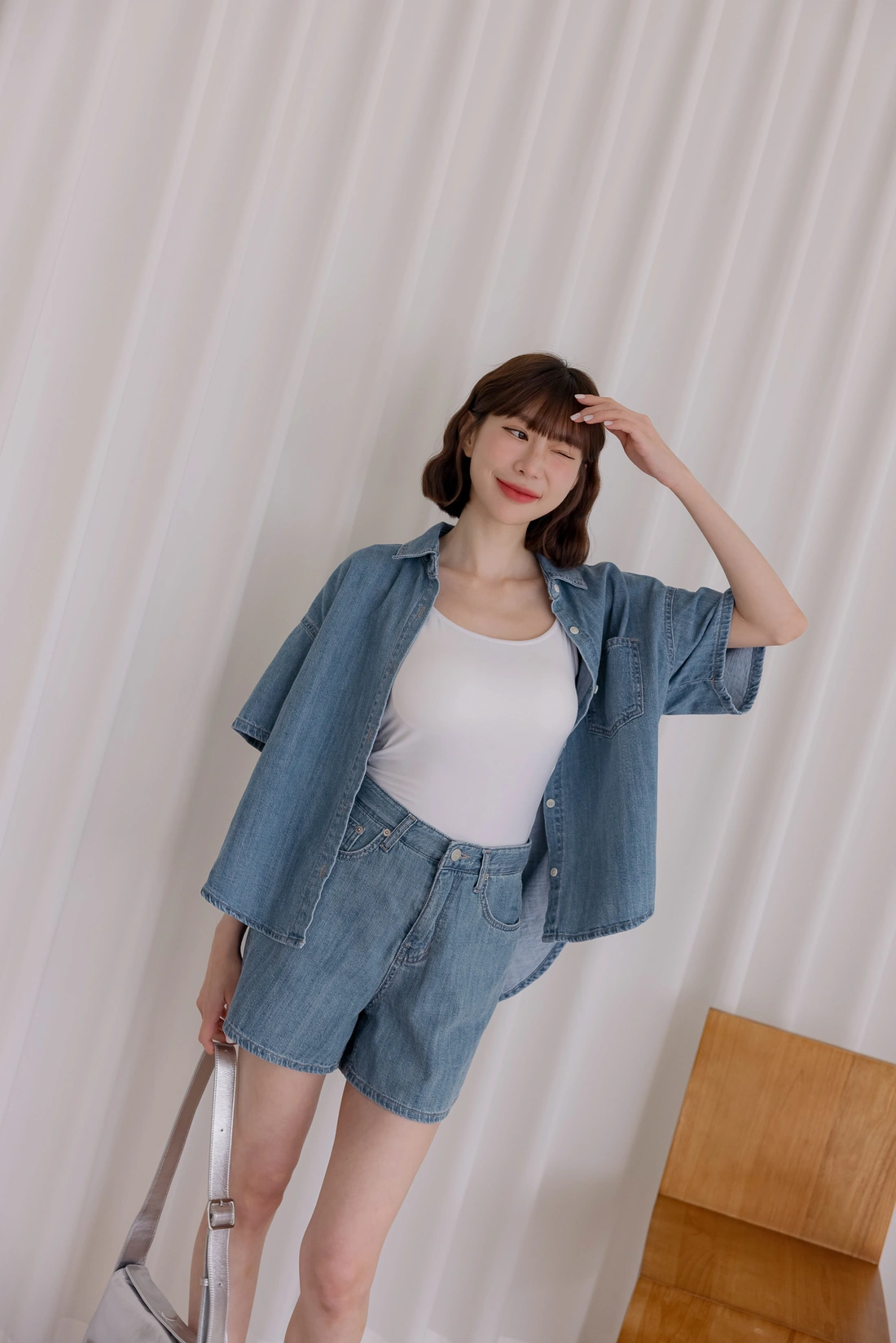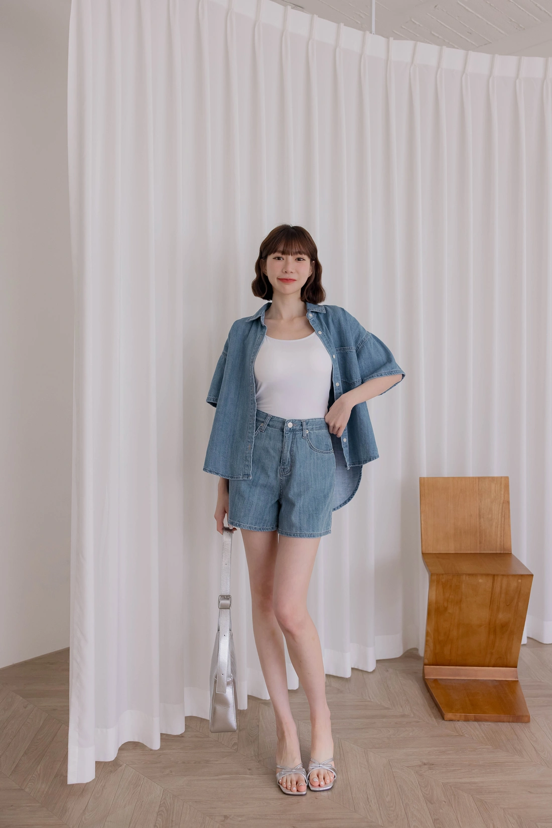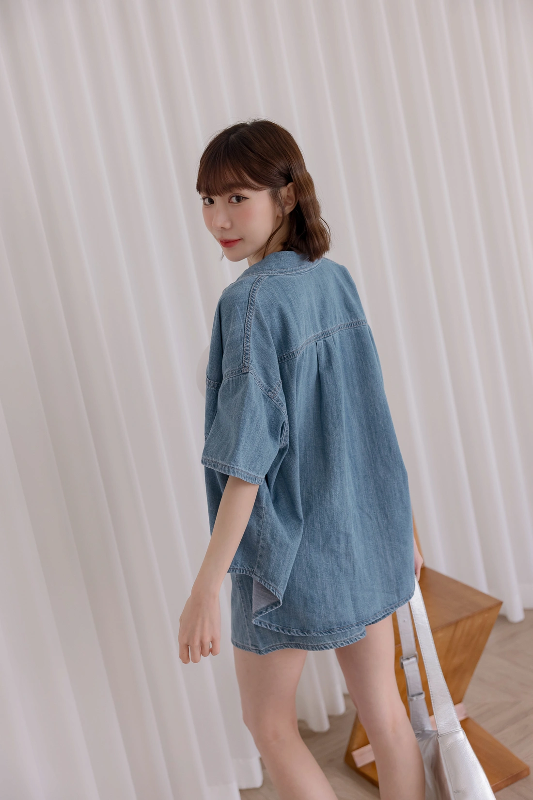 舒適棉質材質100%棉/水洗牛仔短袖襯衫