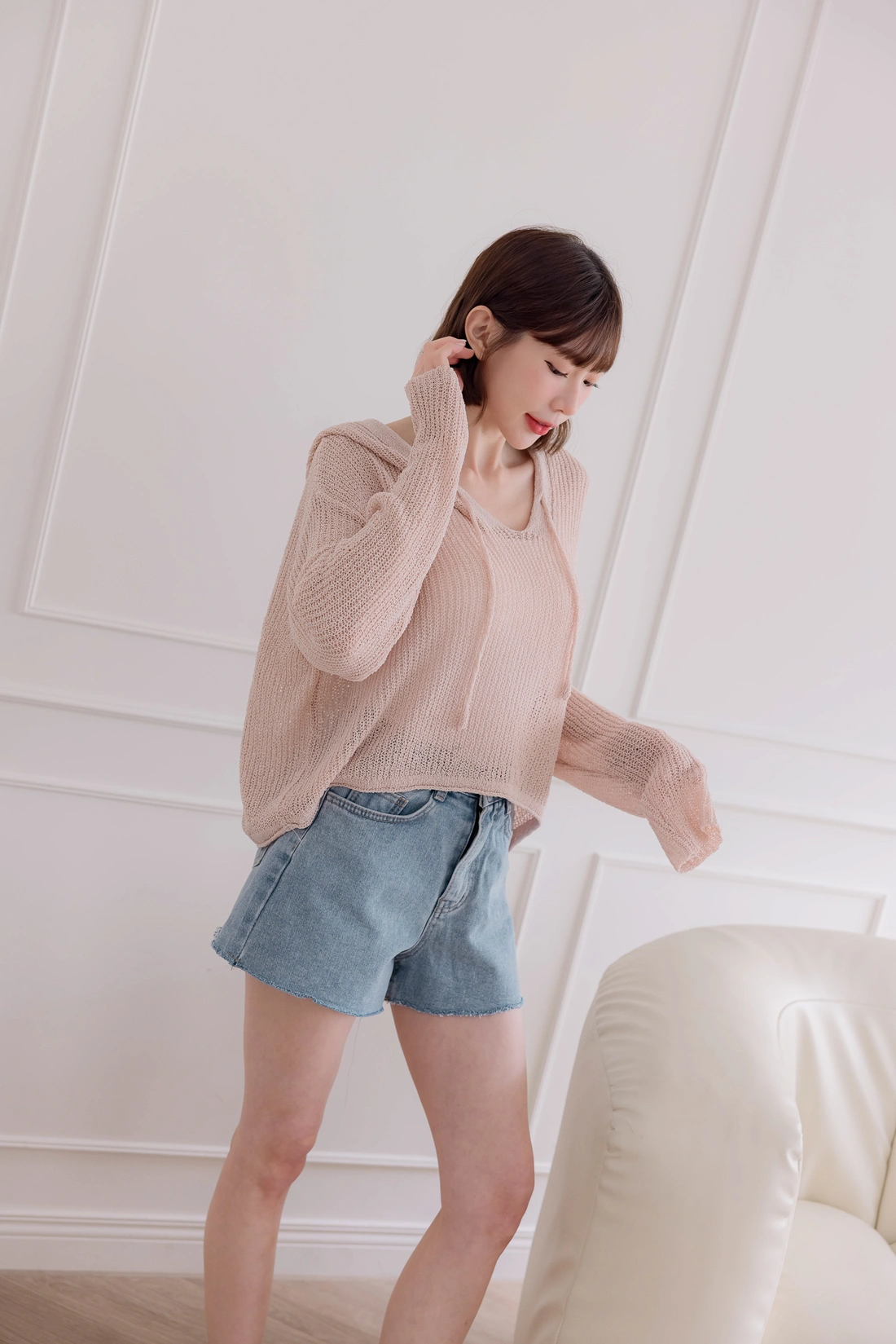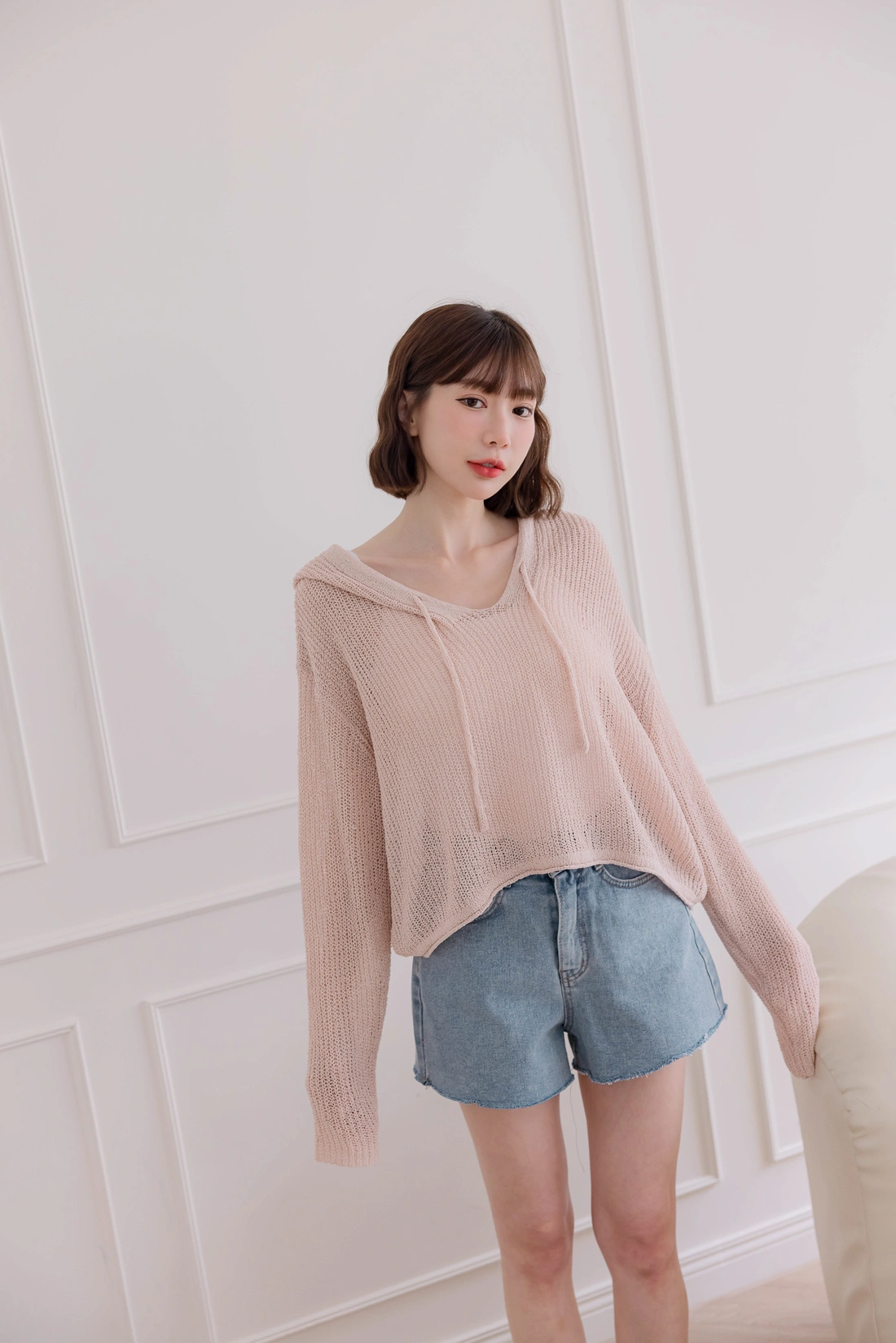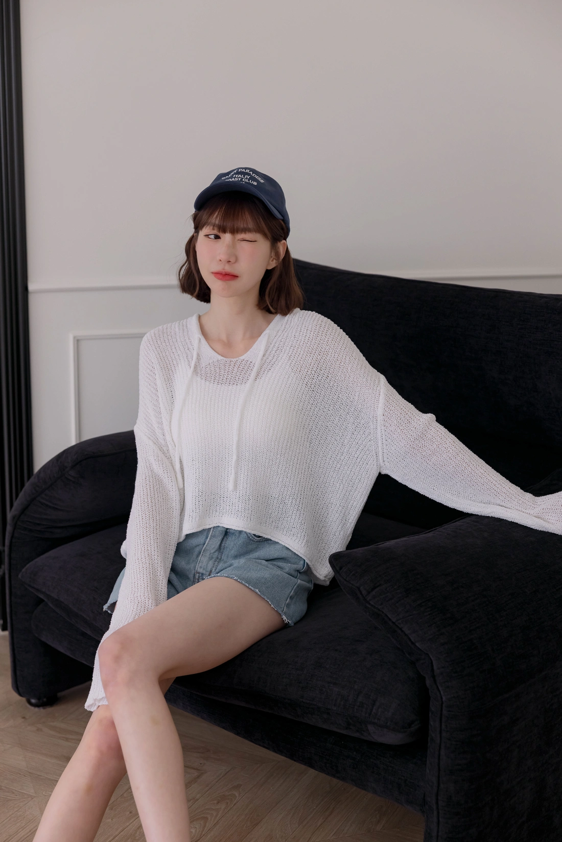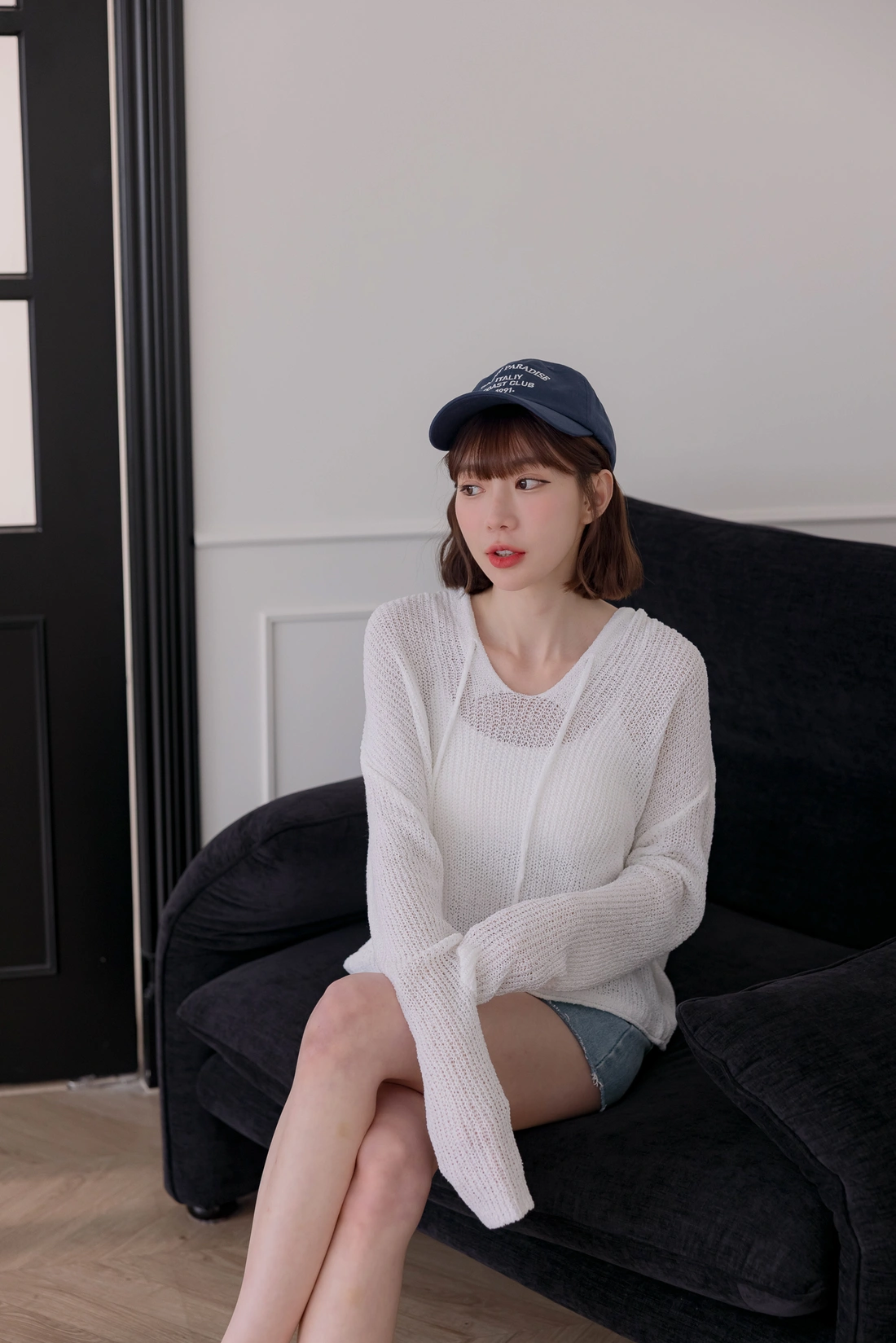 舒適棉質針織材質/慵懶寬鬆版型/綁帶設計棉帽罩衫