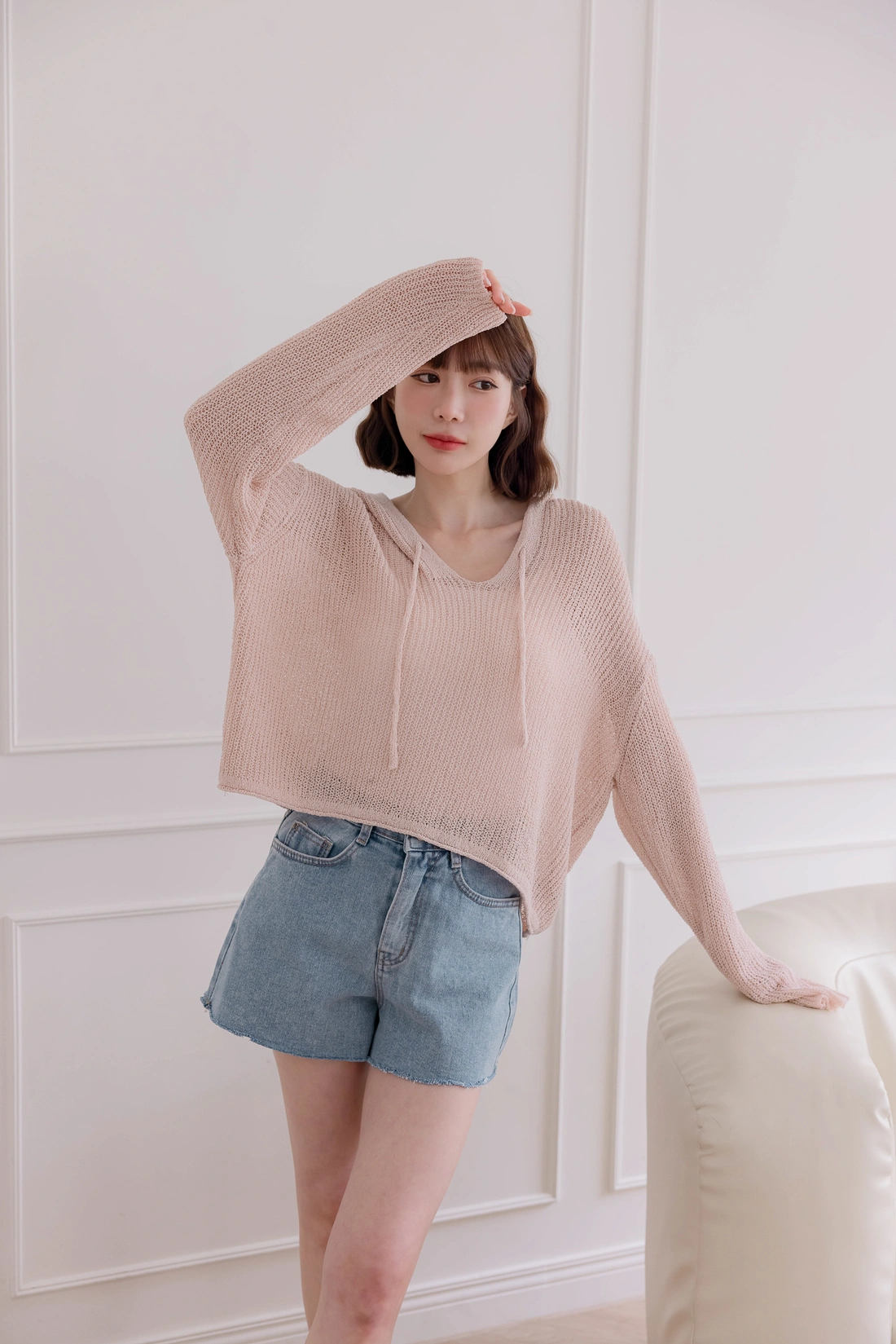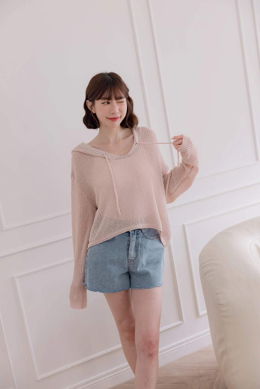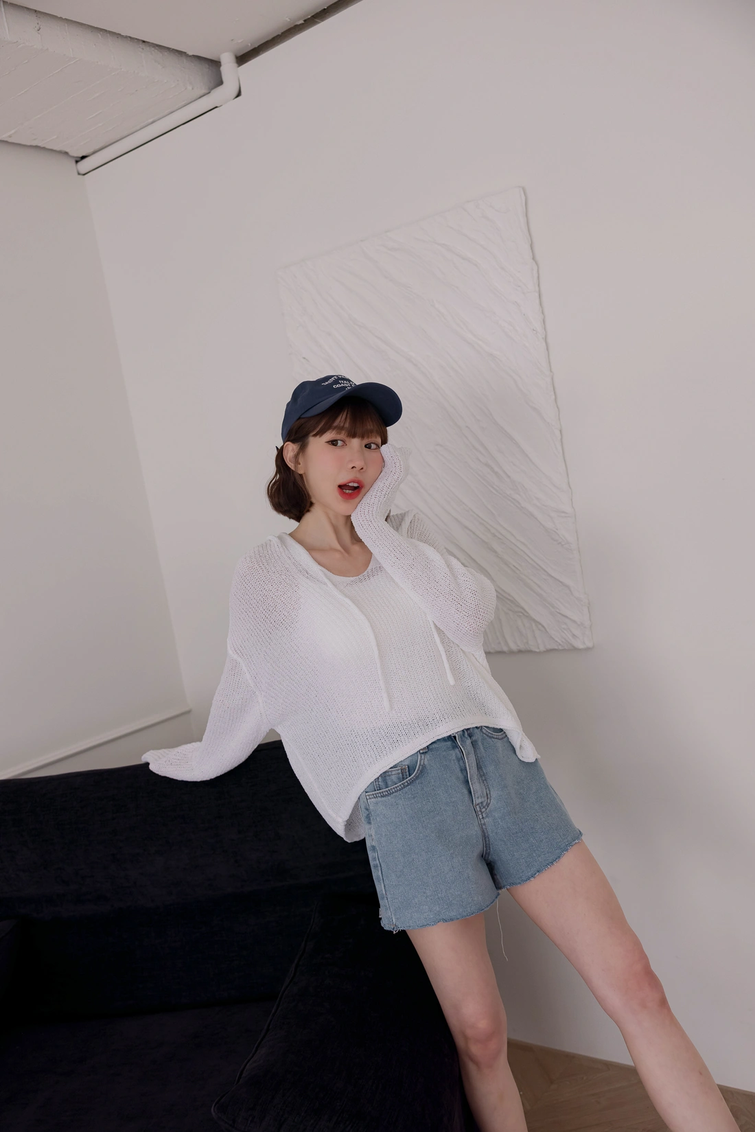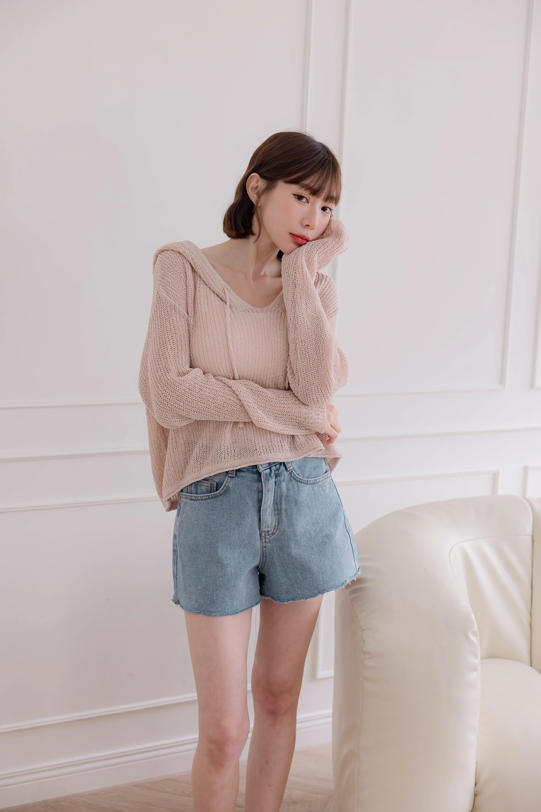 舒適棉質針織材質/慵懶寬鬆版型/綁帶設計棉帽罩衫