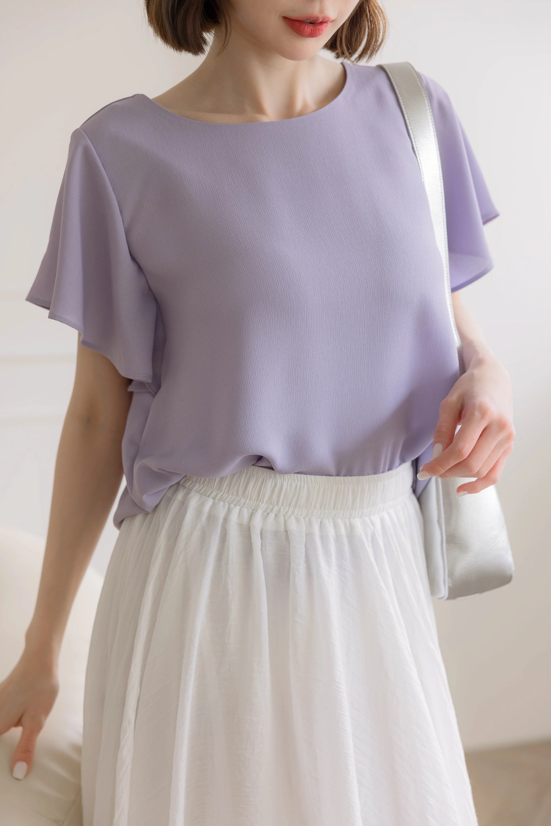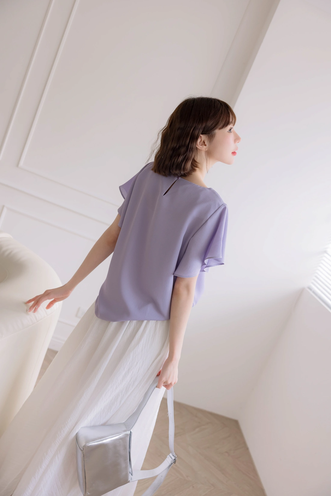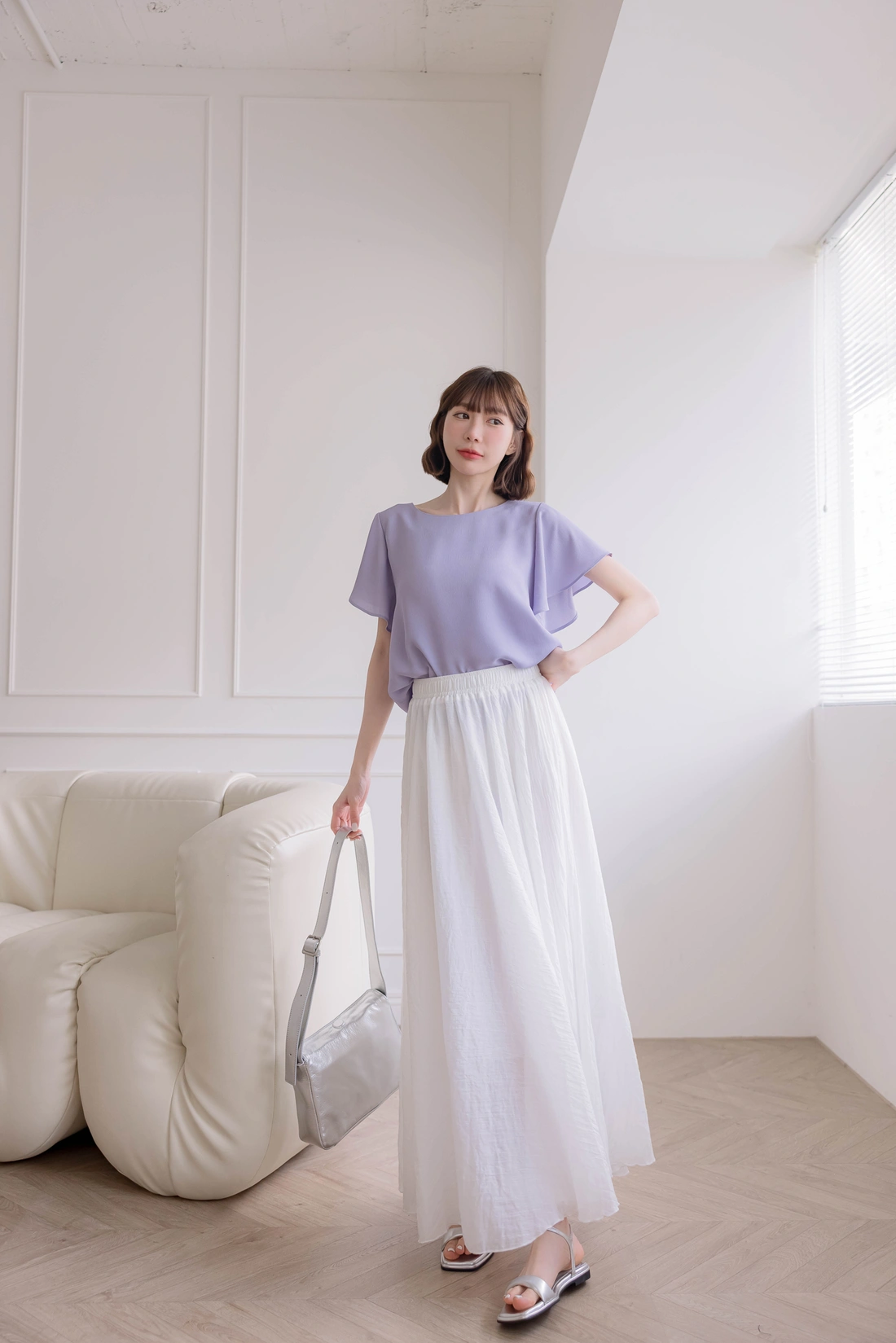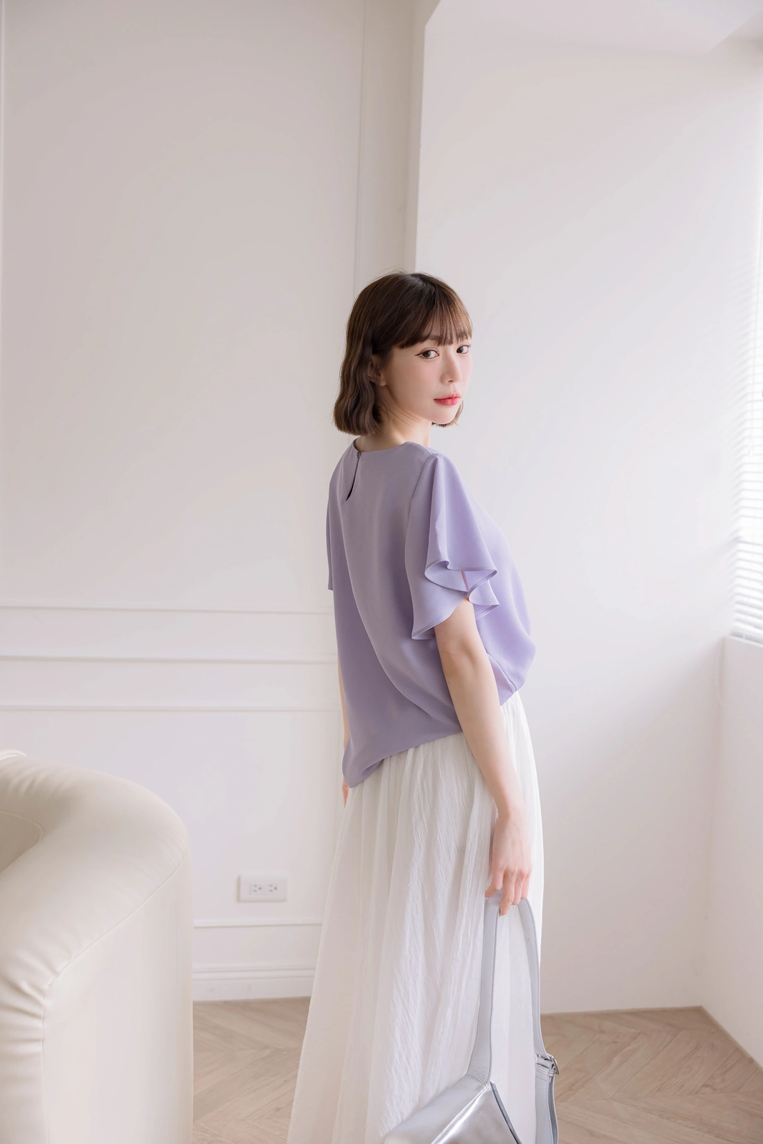 雪紡柔軟料質/波浪袖設計/版型寬鬆舒服