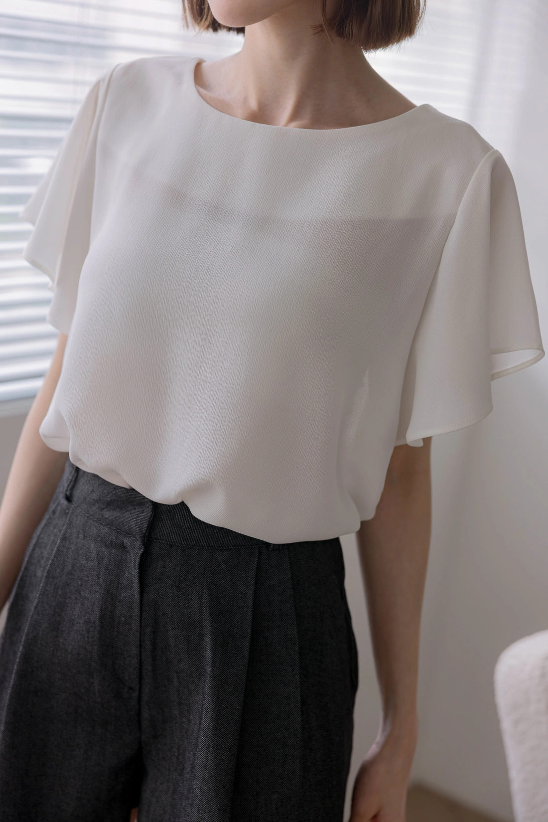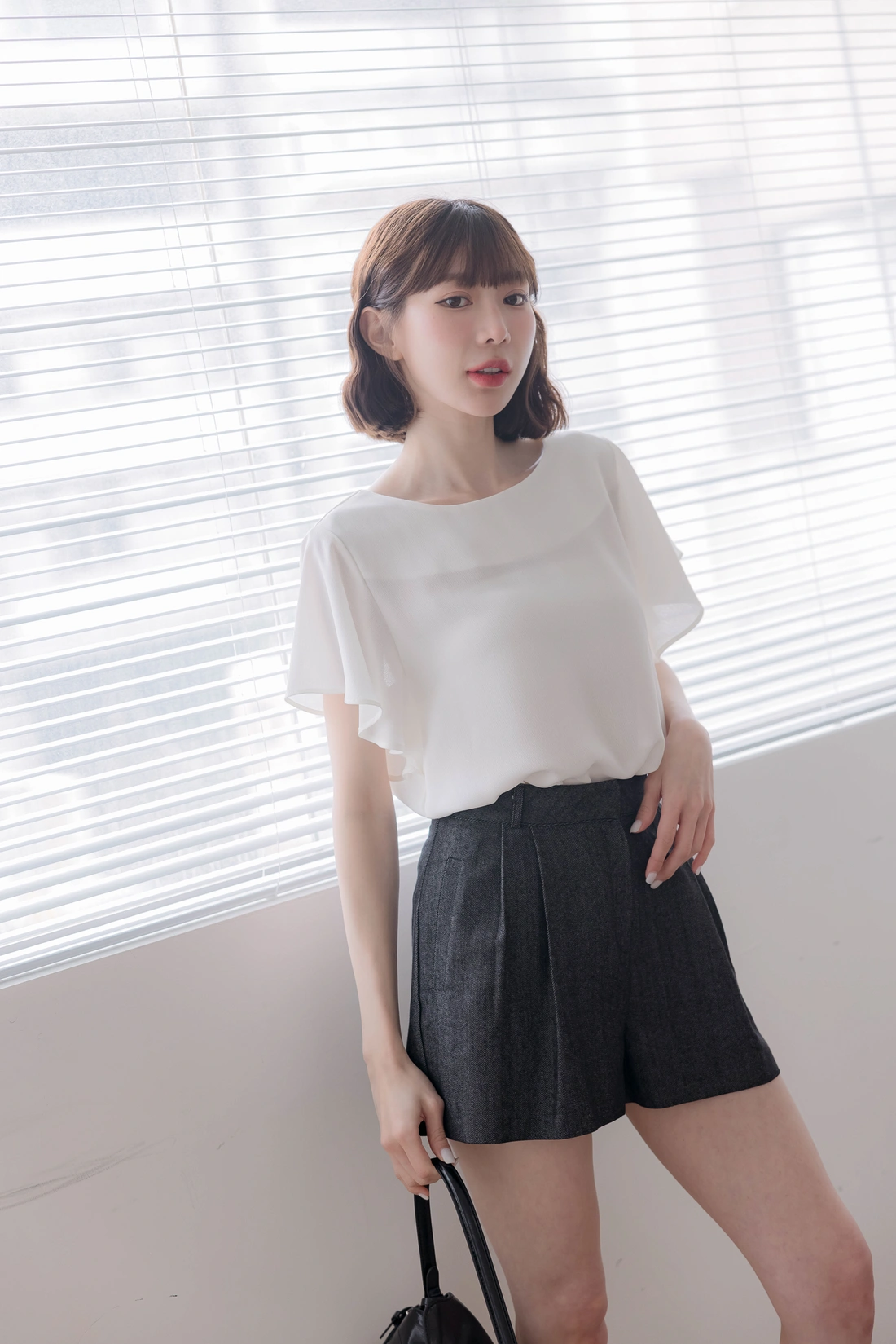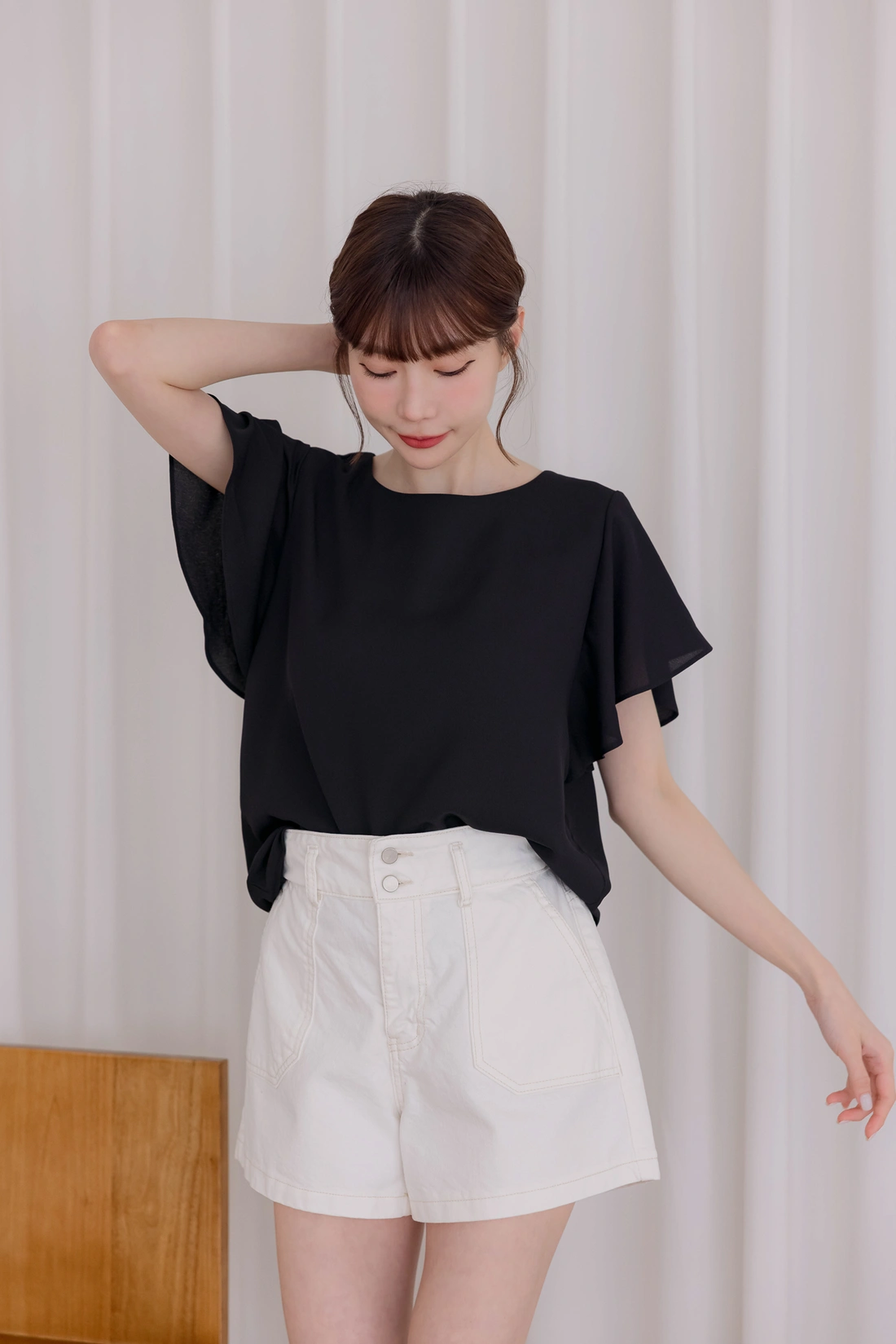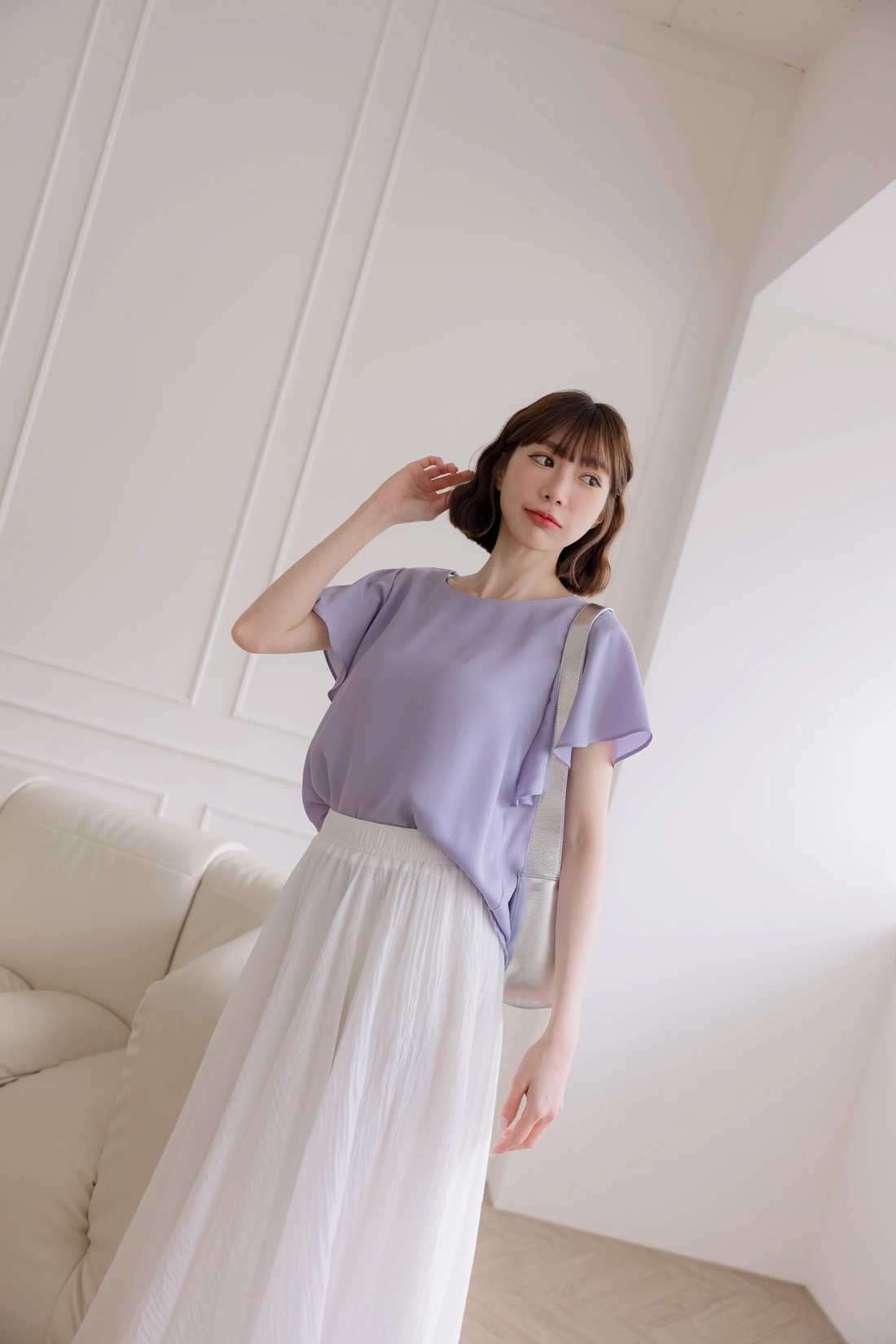 雪紡柔軟料質/波浪袖設計/版型寬鬆舒服