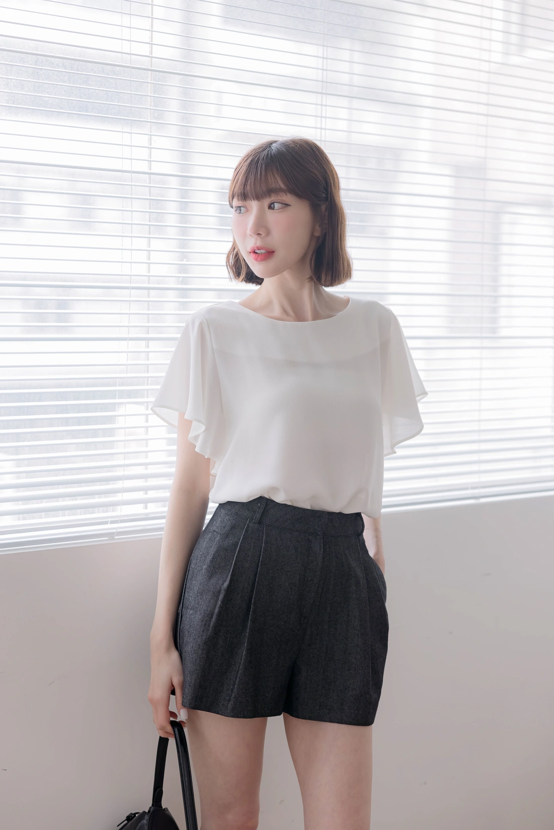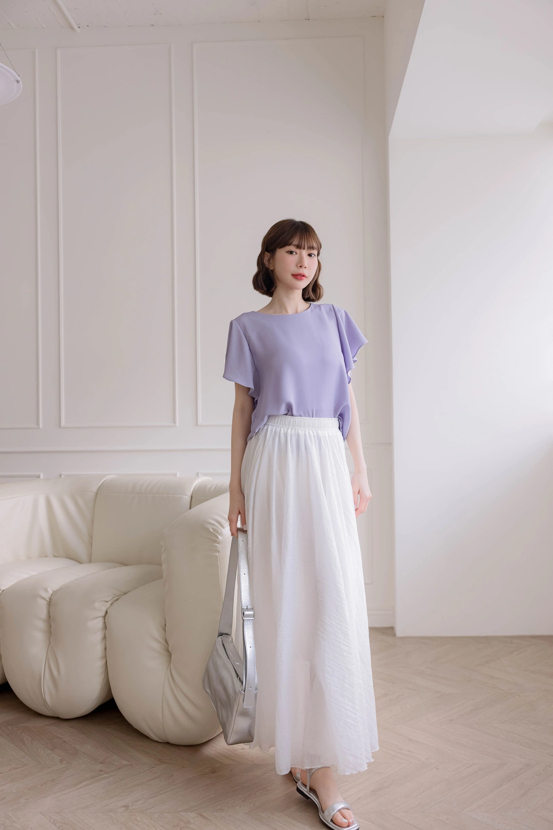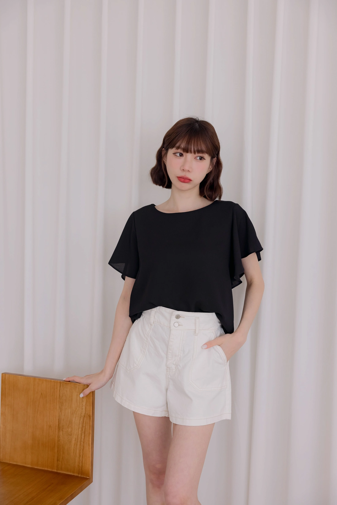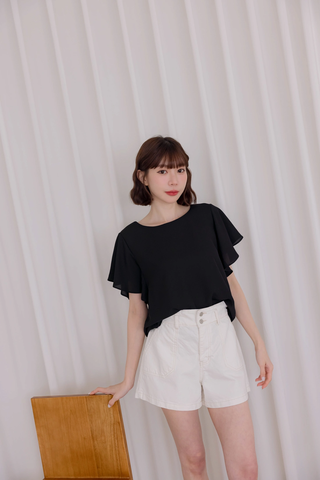 雪紡柔軟料質/波浪袖設計/版型寬鬆舒服