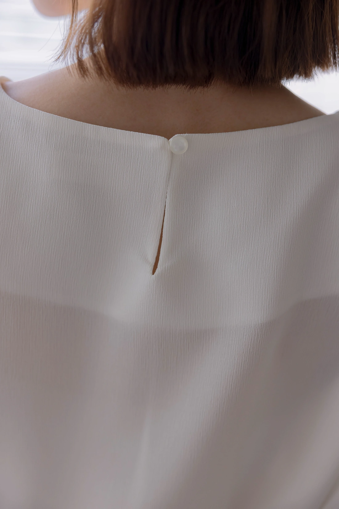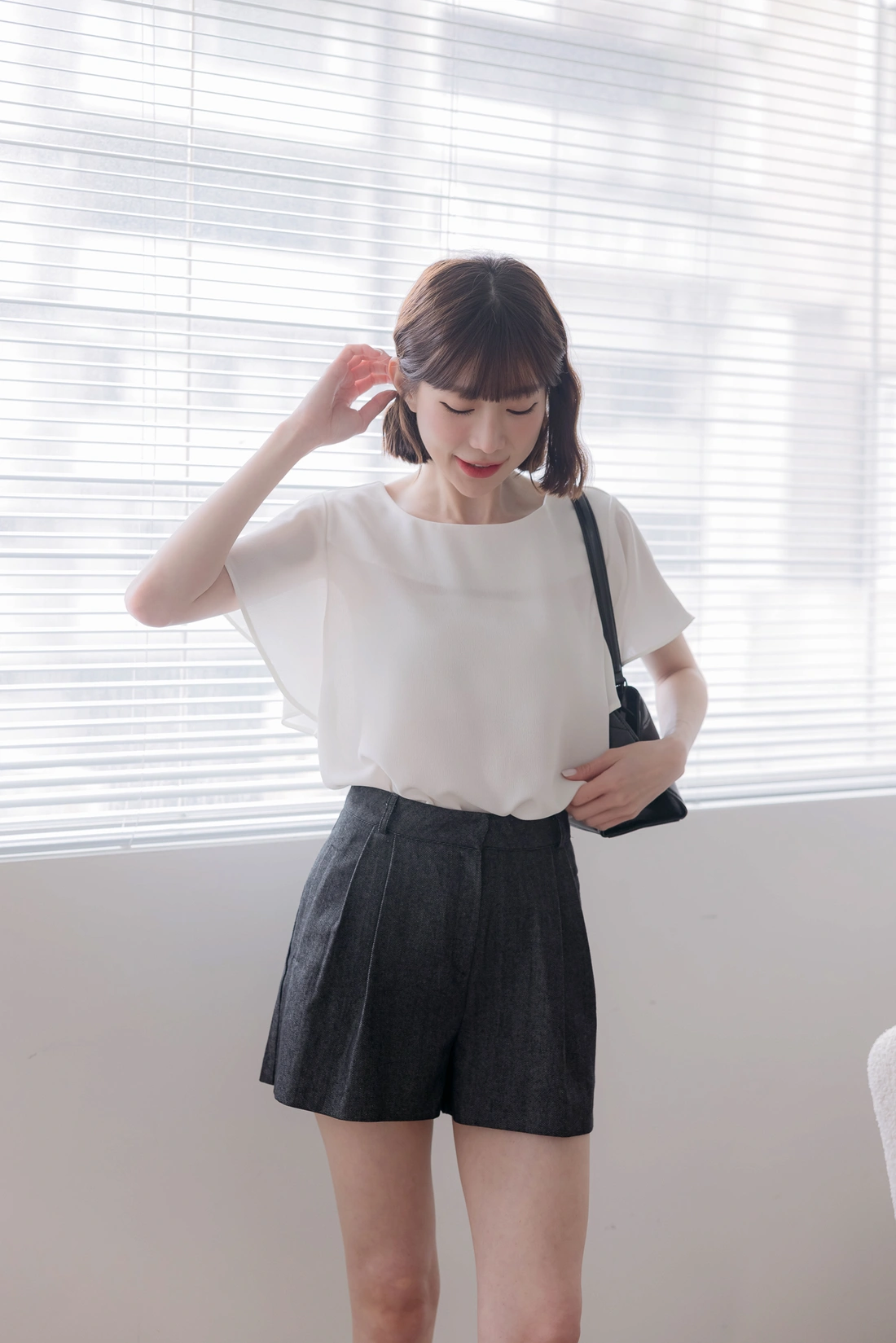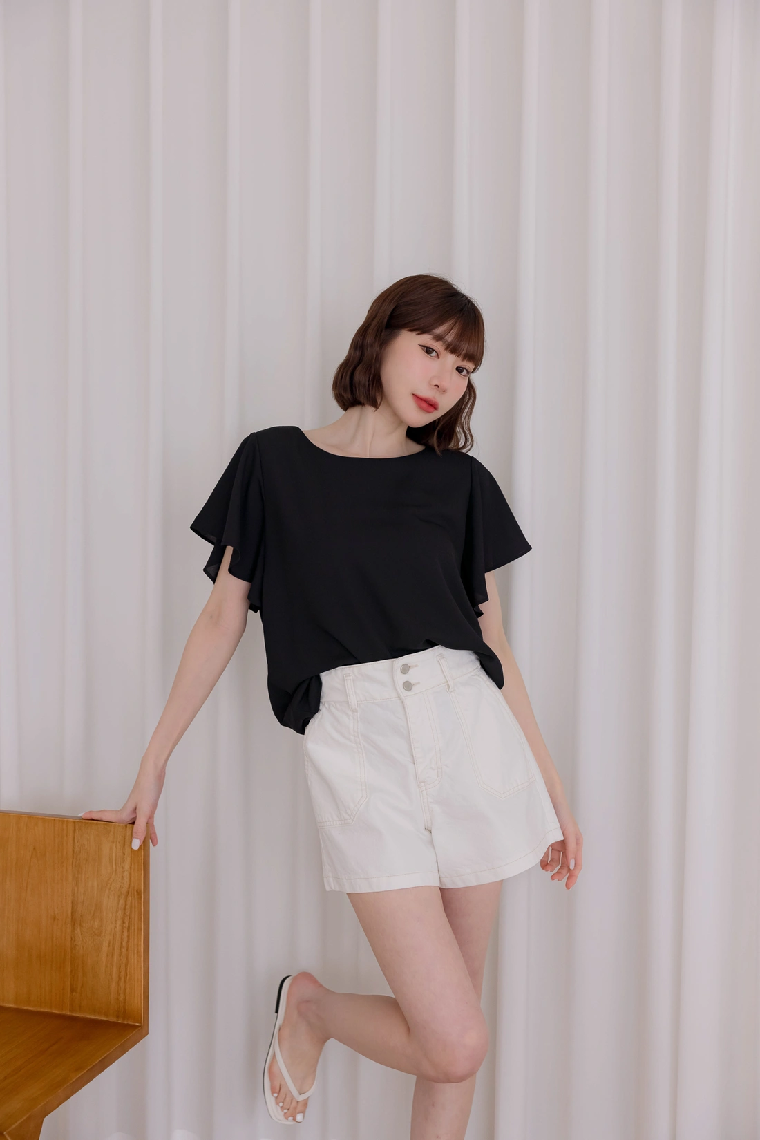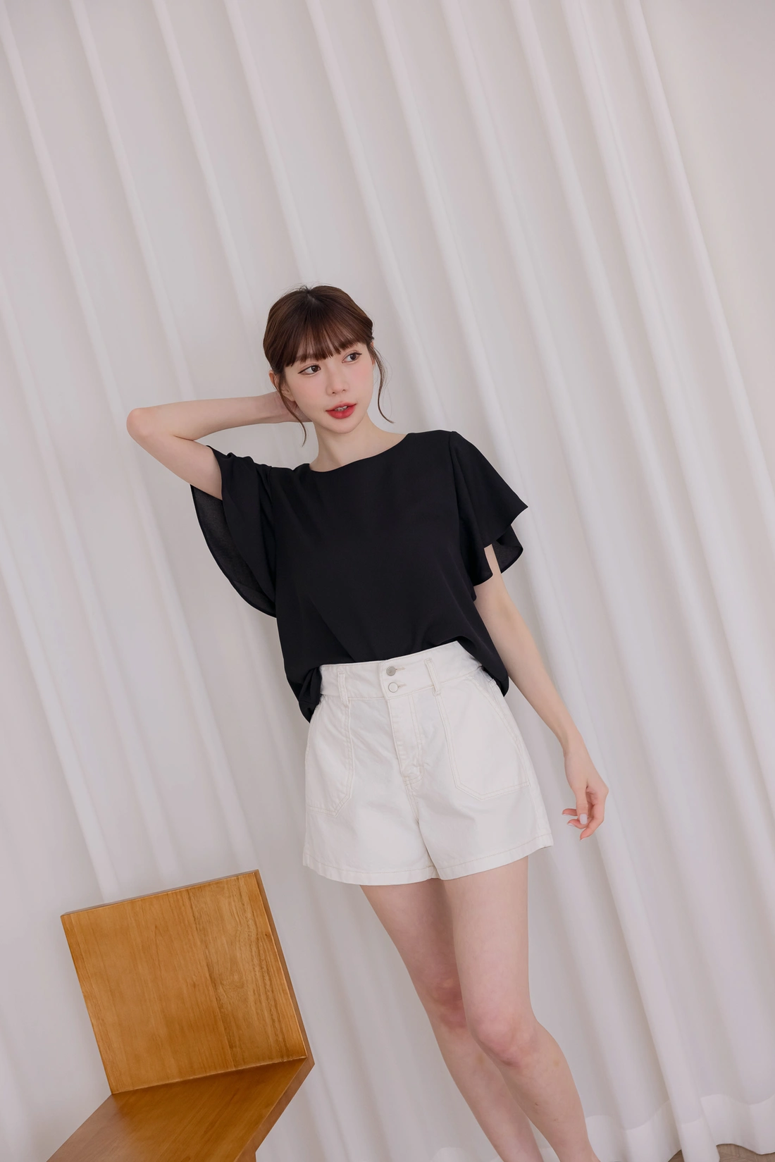 雪紡柔軟料質/波浪袖設計/版型寬鬆舒服