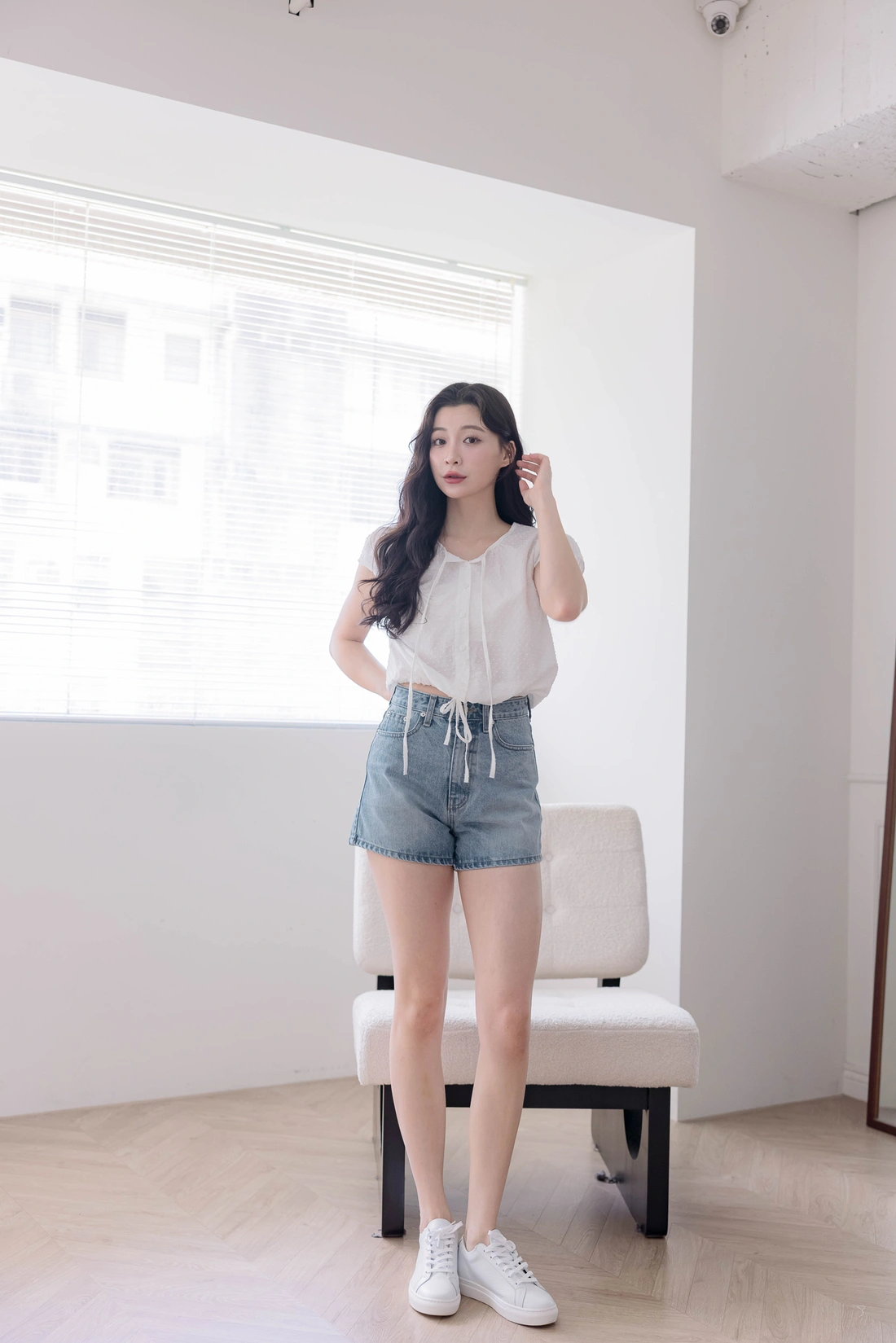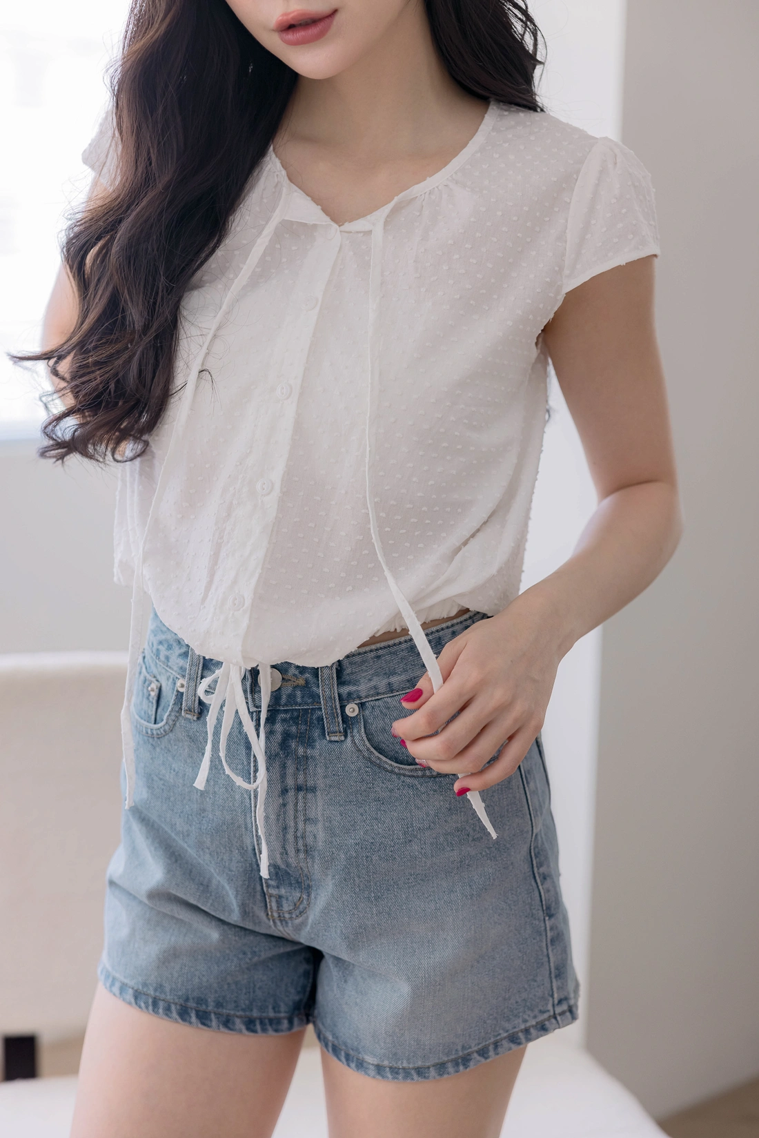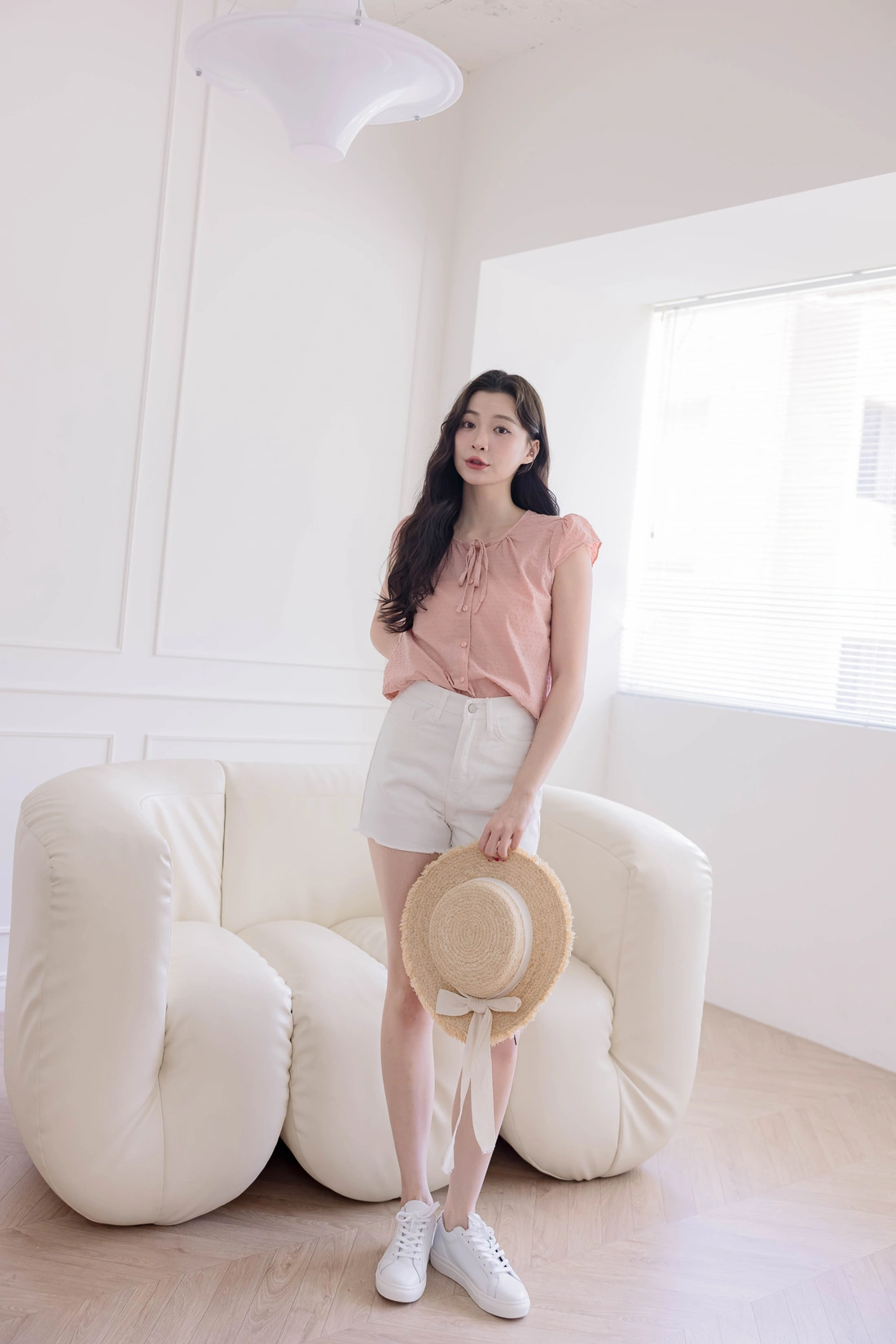 點點布料設計上衣/排扣設計上衣/前綁結設計造型