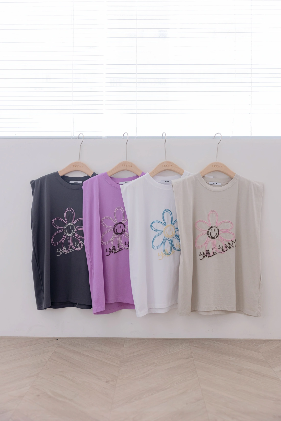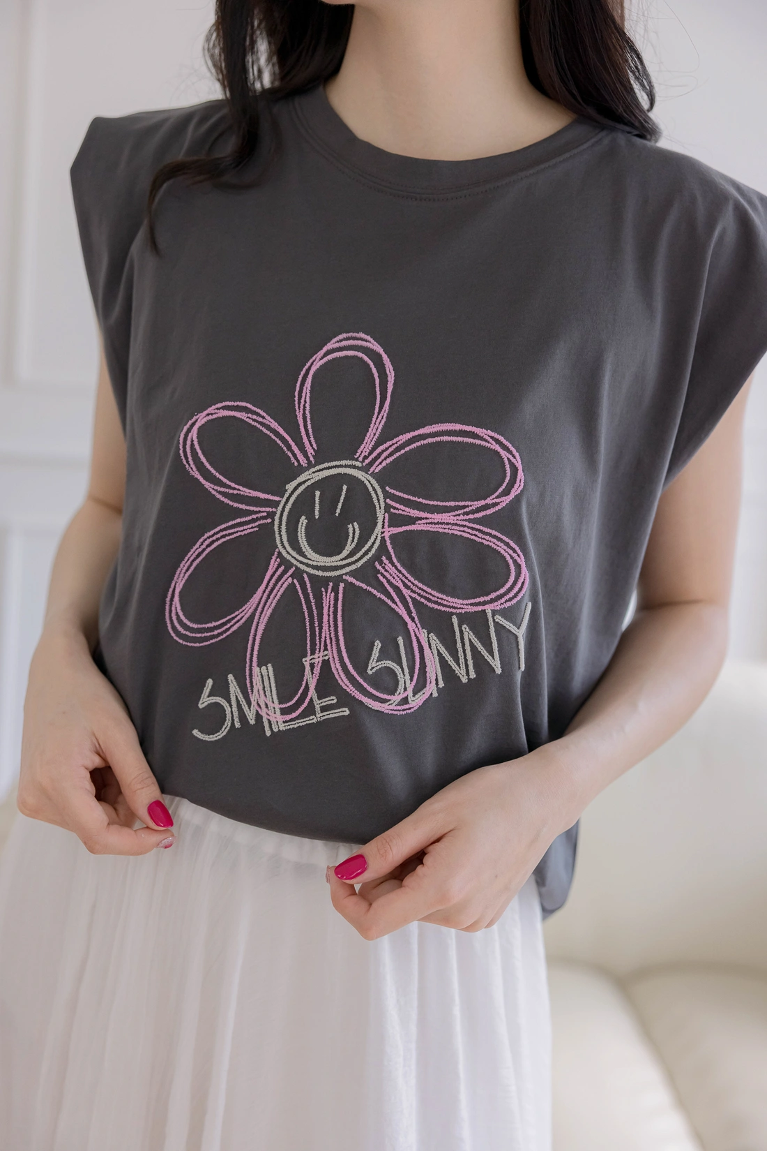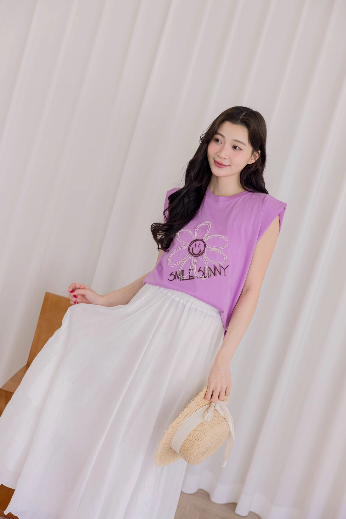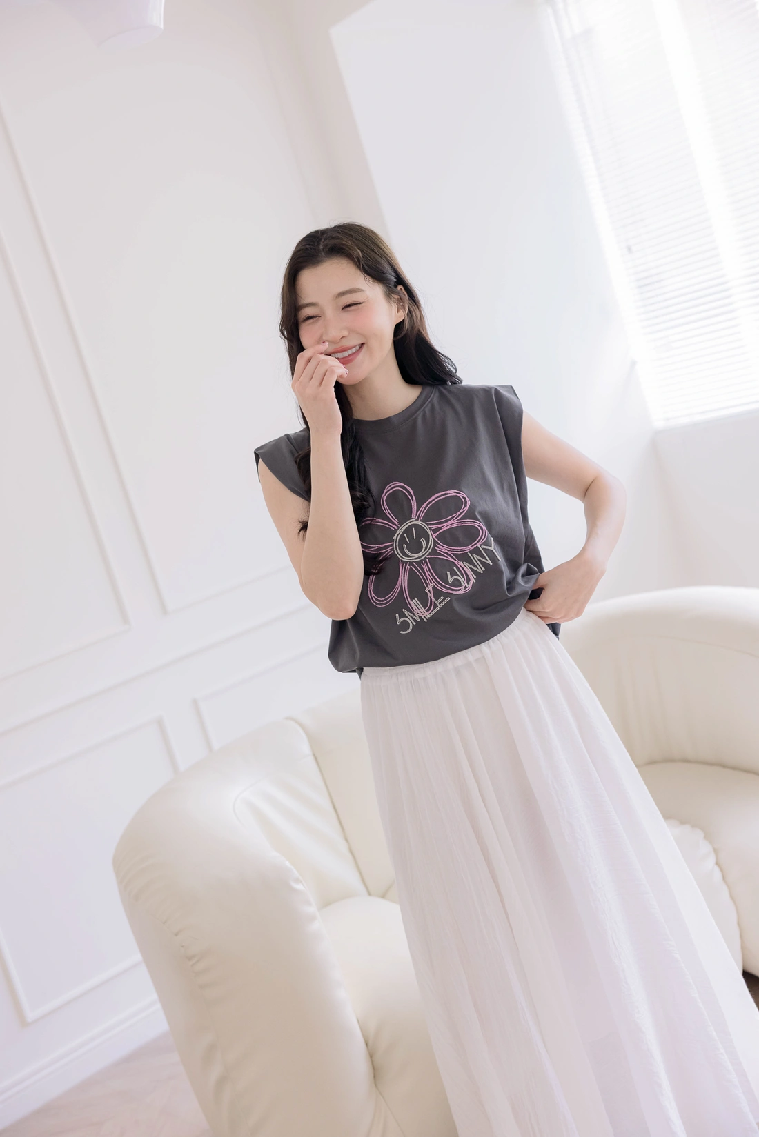 舒適棉質材質/正面刺有立體花花文字布料/落肩個性版型