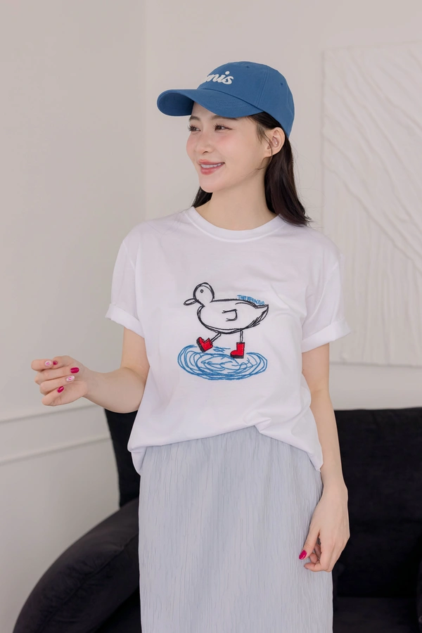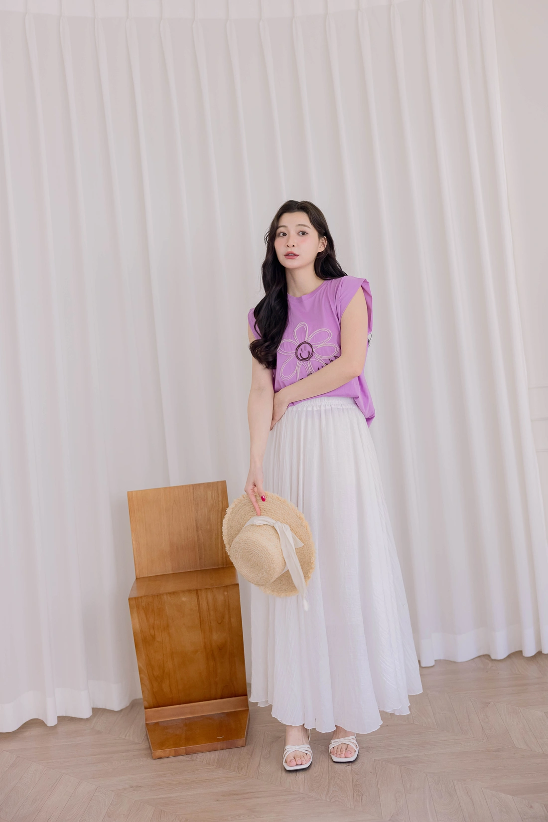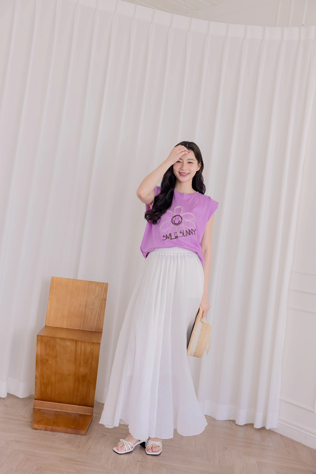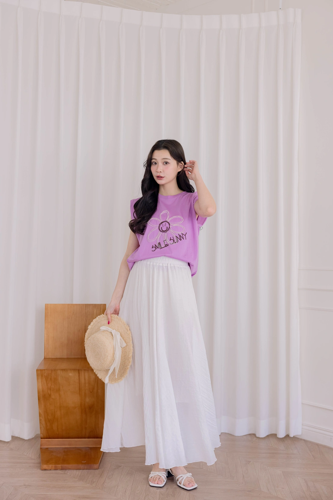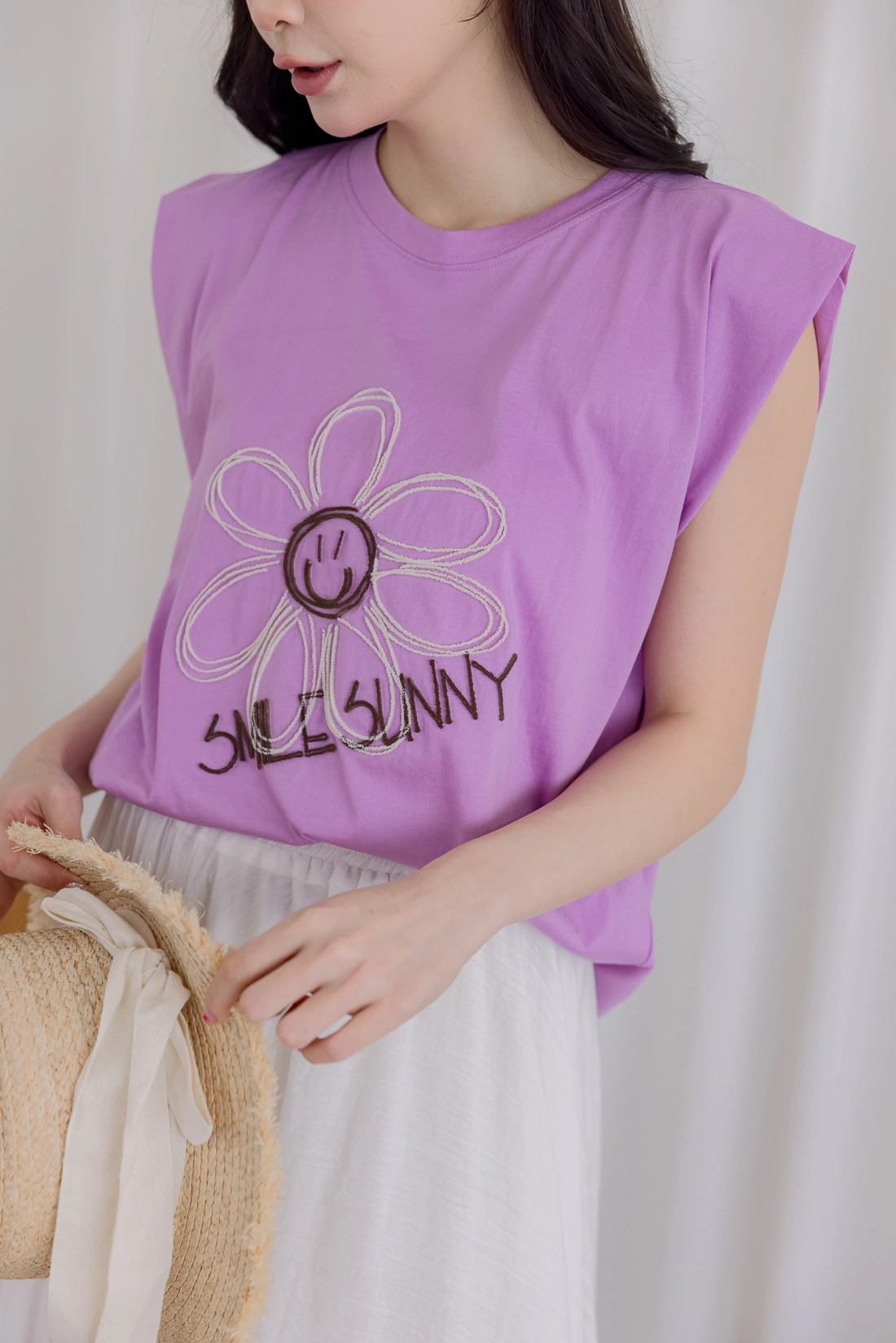 舒適棉質材質/正面刺有立體花花文字布料/落肩個性版型