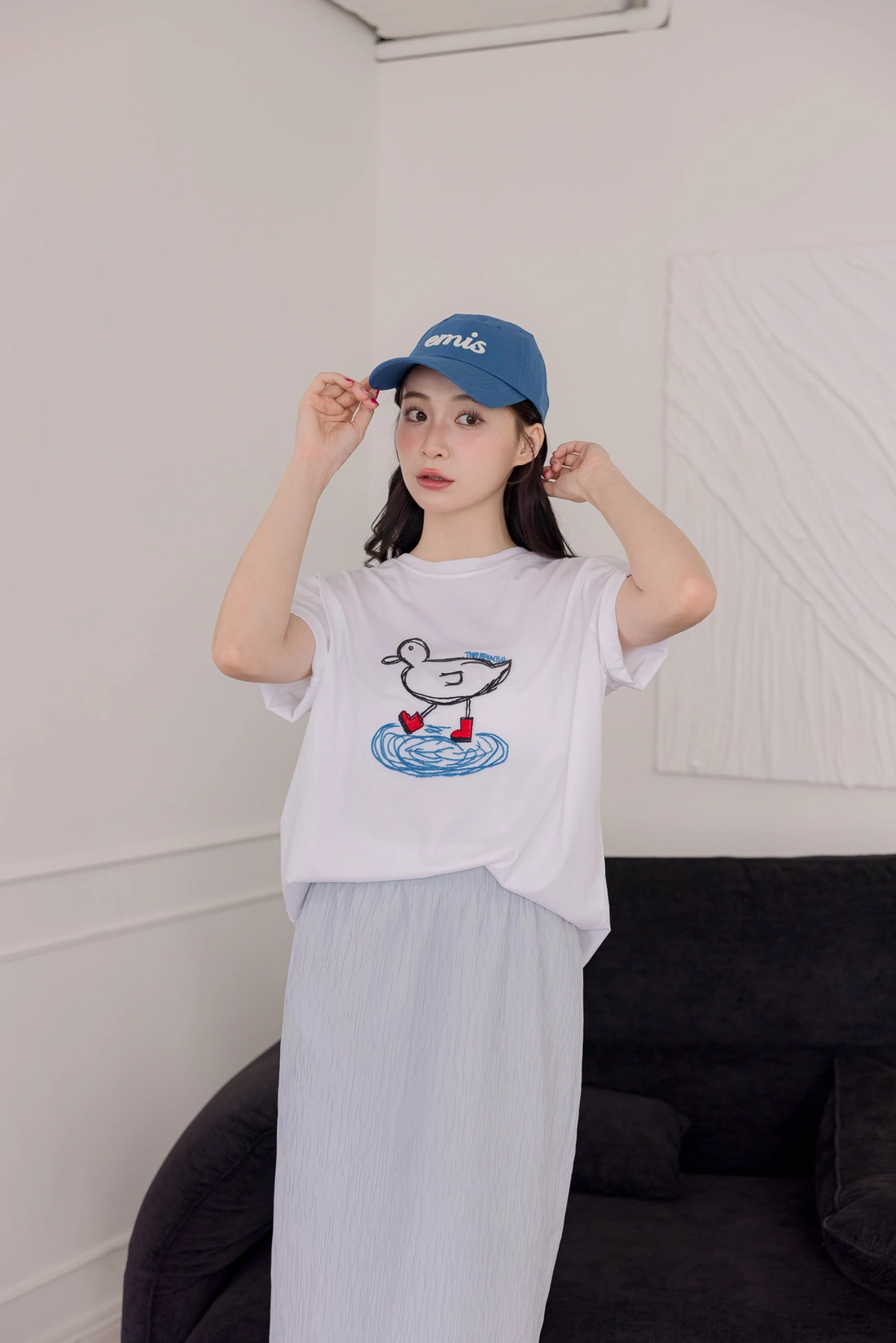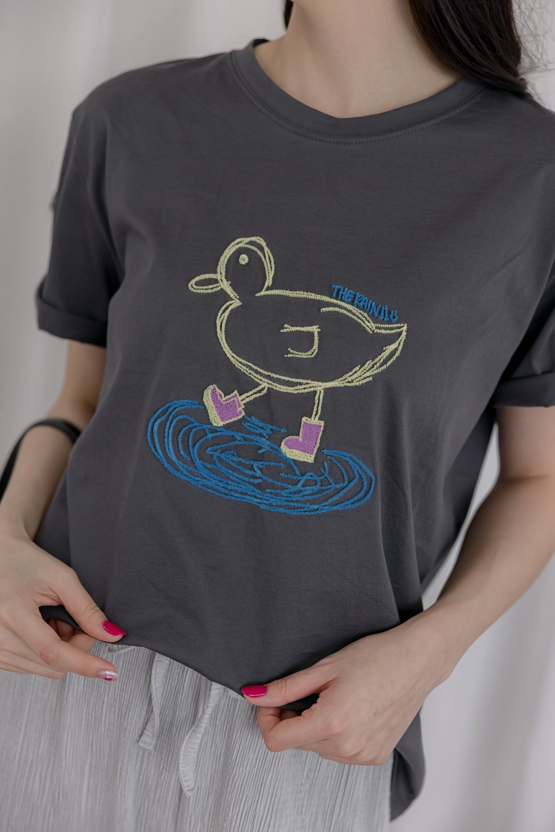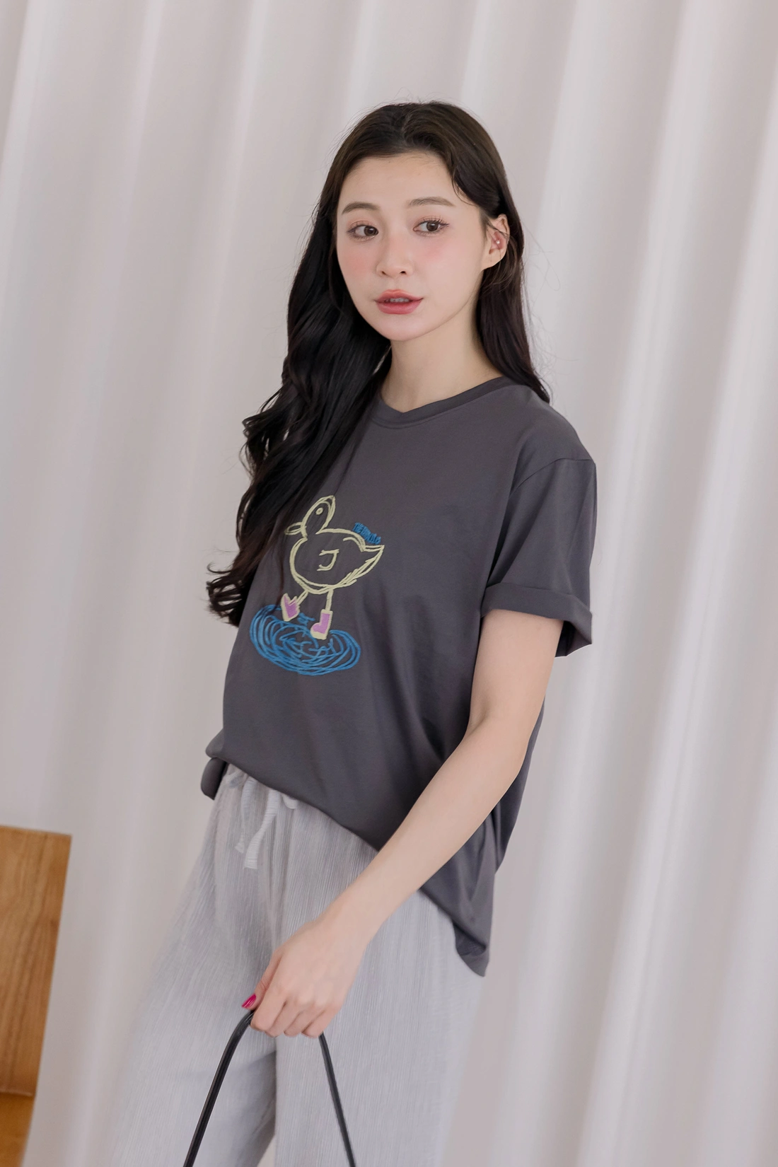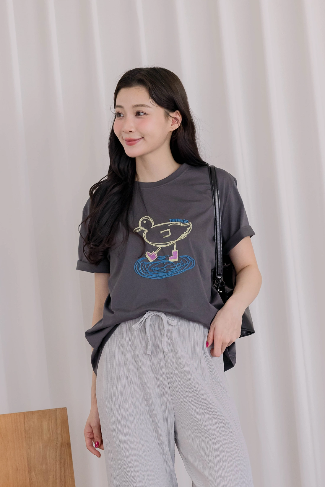 正面刺有立體布料可愛小鴨鴨/舒適棉質材質/寬鬆版型