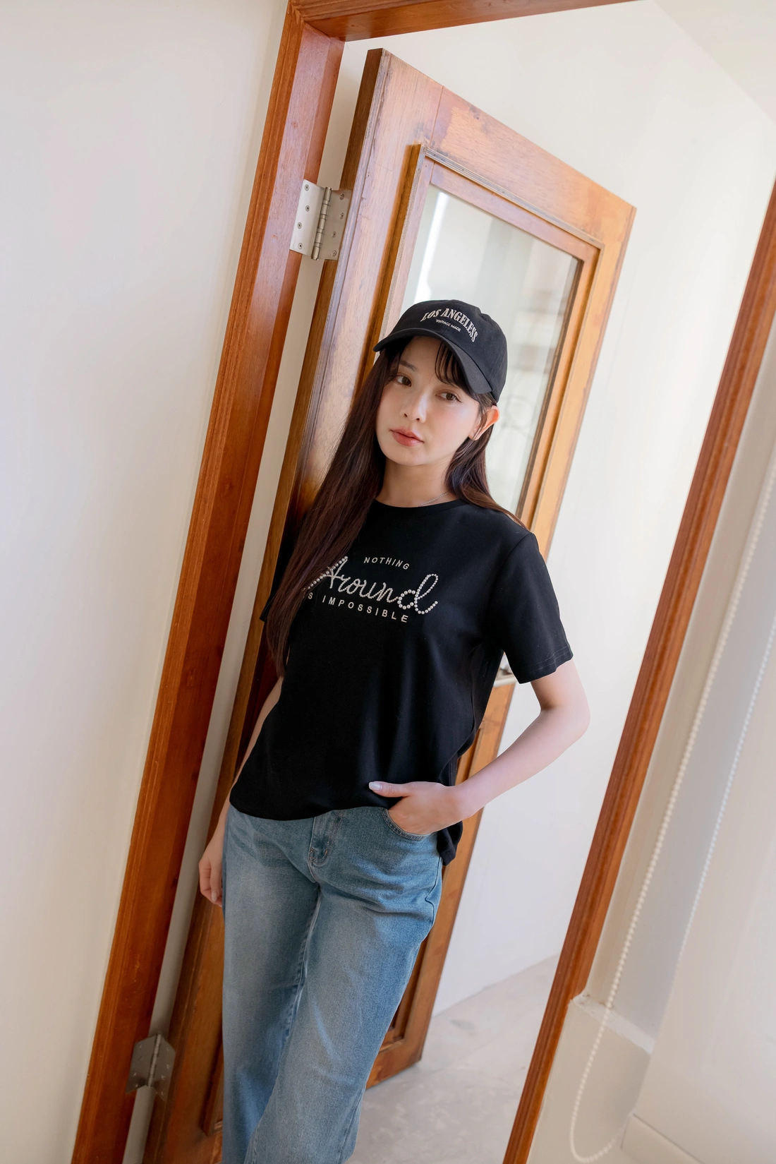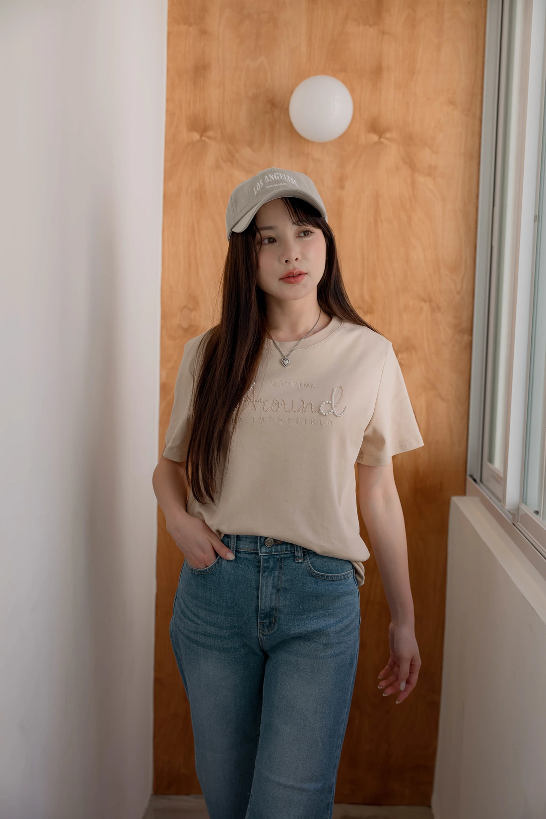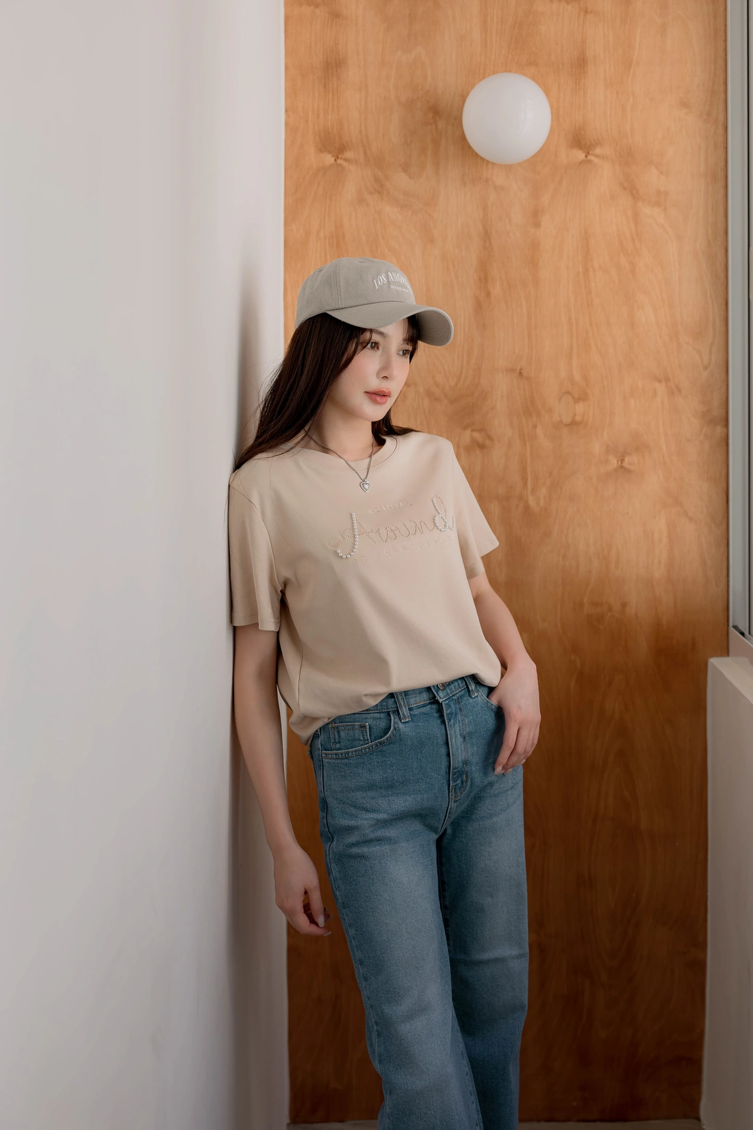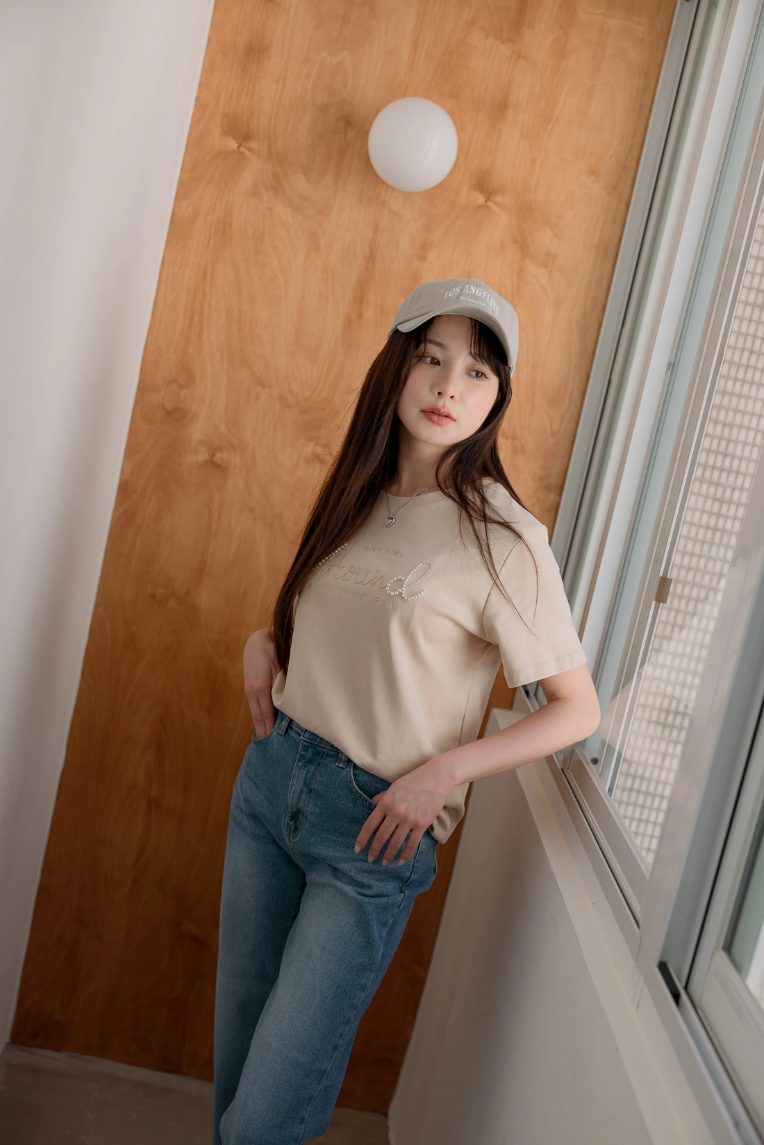 舒適棉質材質/正面立體珍珠設計/刺繡字母設計