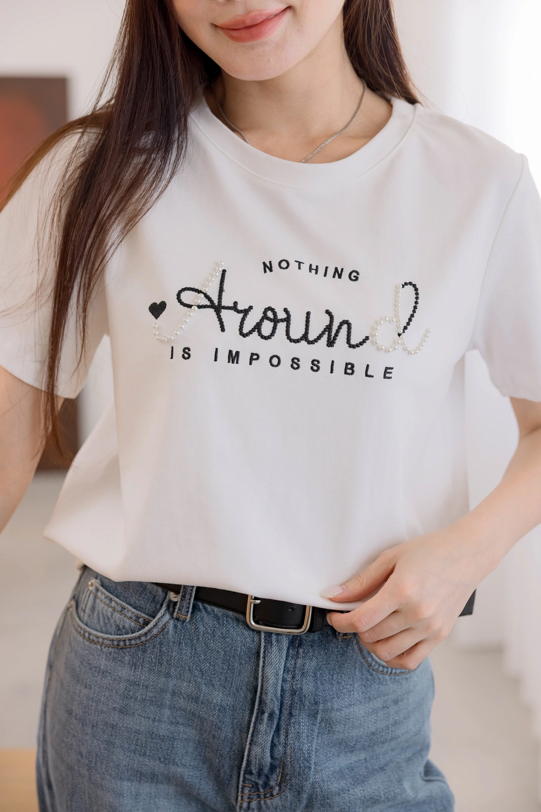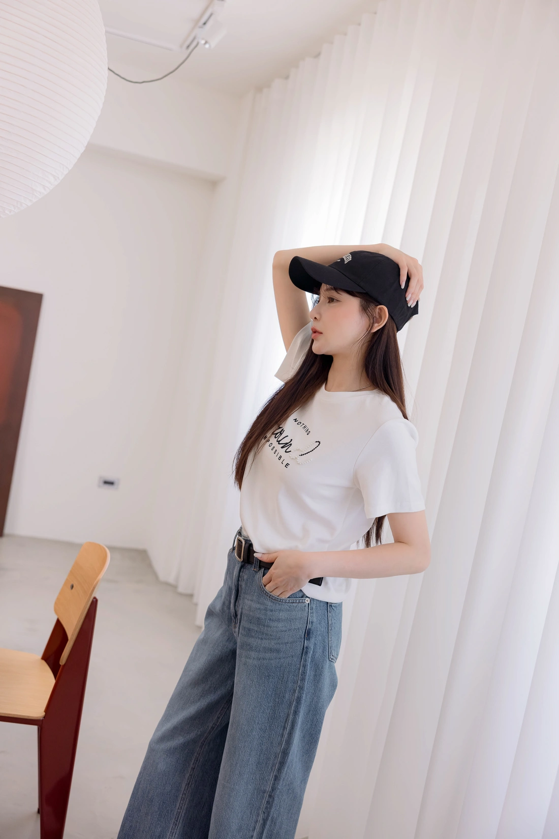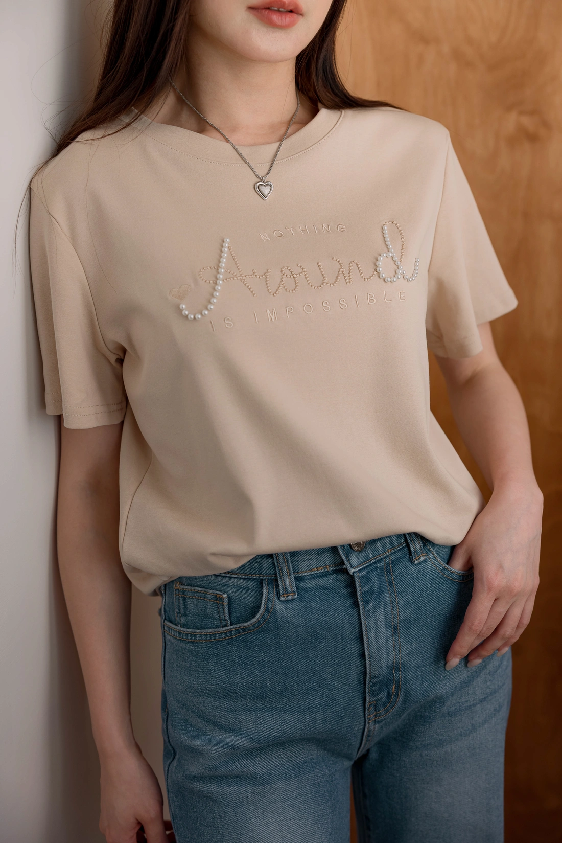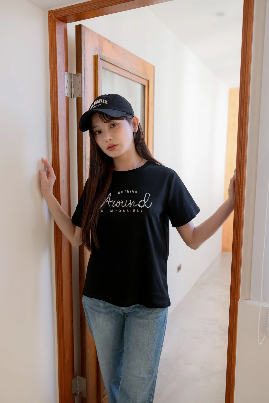舒適棉質材質/正面立體珍珠設計/刺繡字母設計
