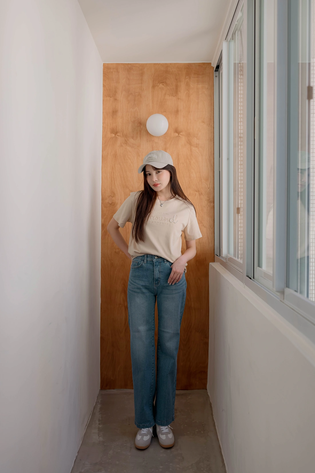• 正韓製 必包色簡約淺刷色牛仔寬褲