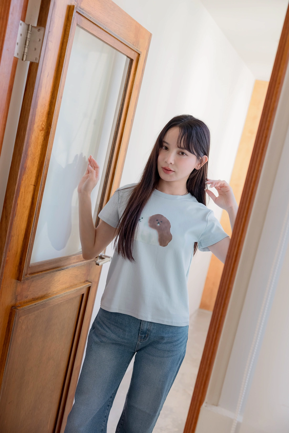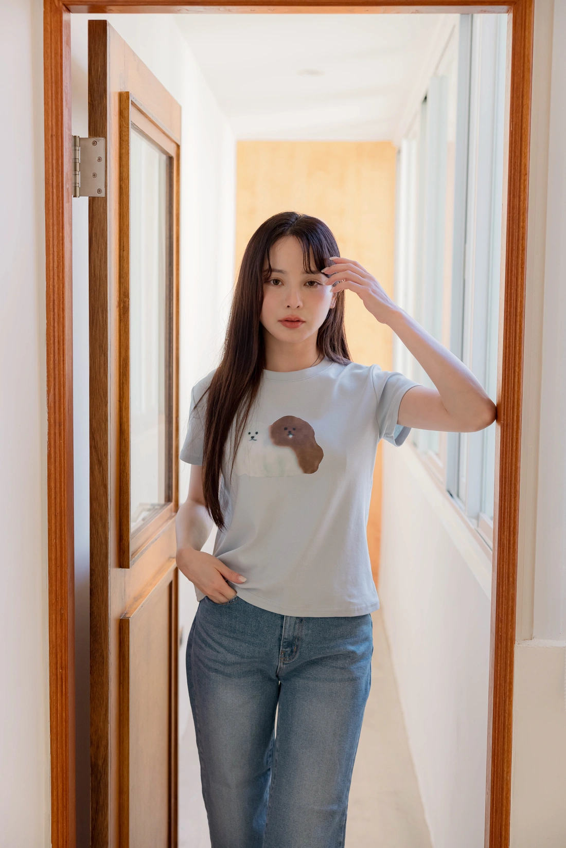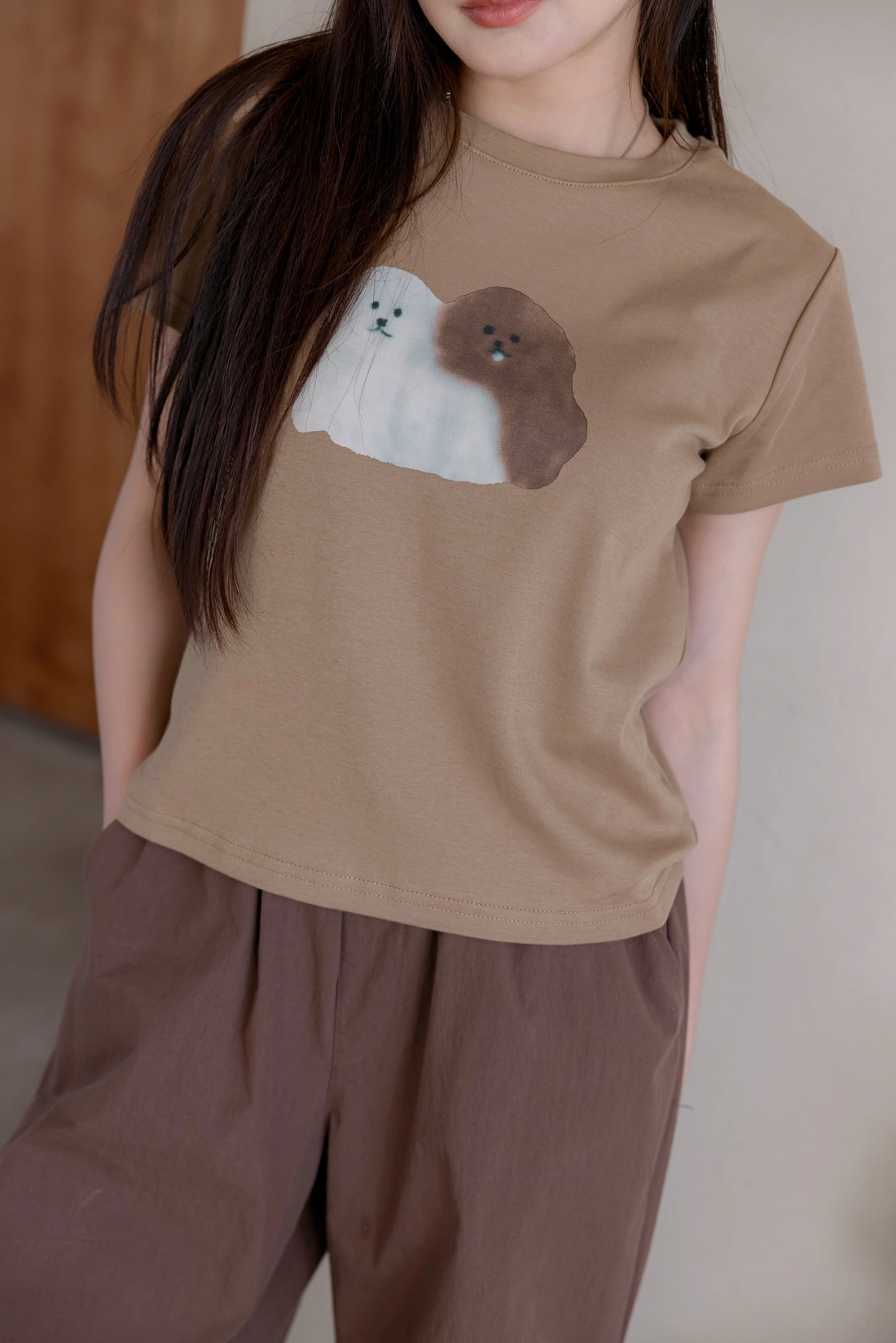 舒適棉質材質/正面印有可愛貴賓小狗狗/短版衣長