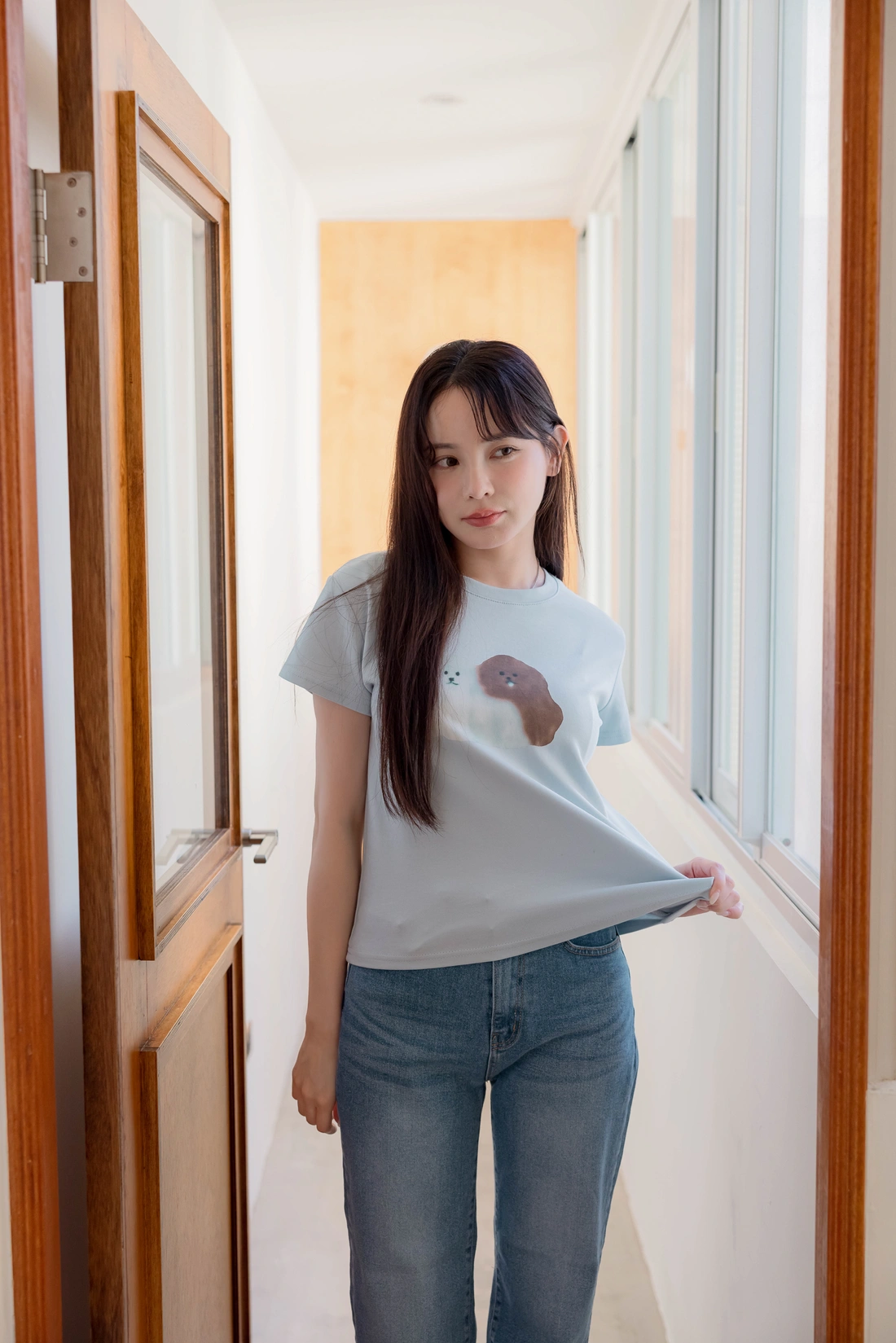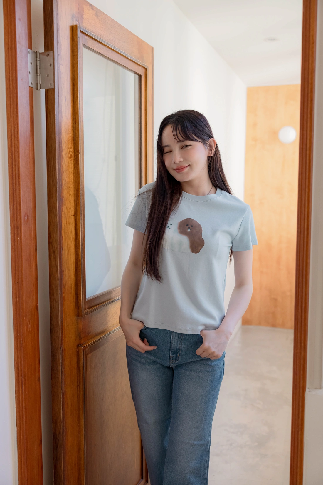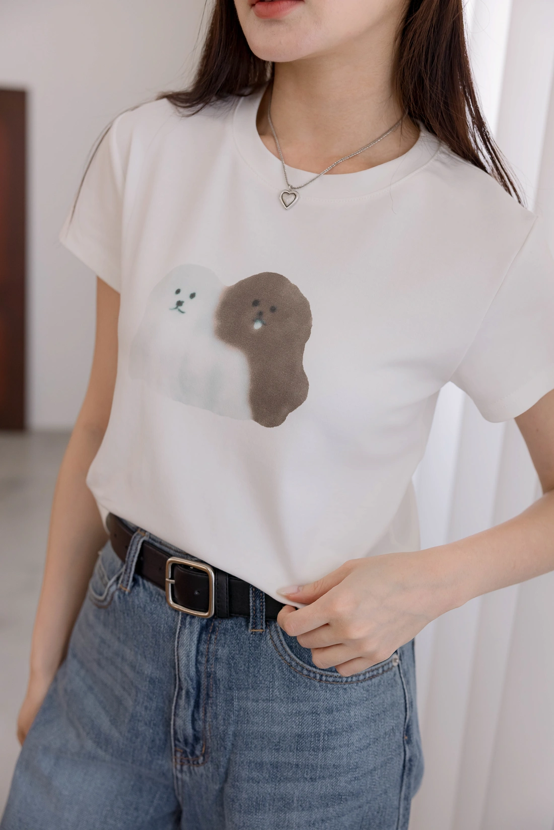 舒適棉質材質/正面印有可愛貴賓小狗狗/短版衣長