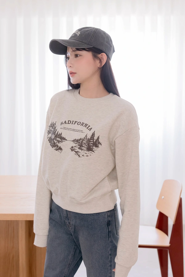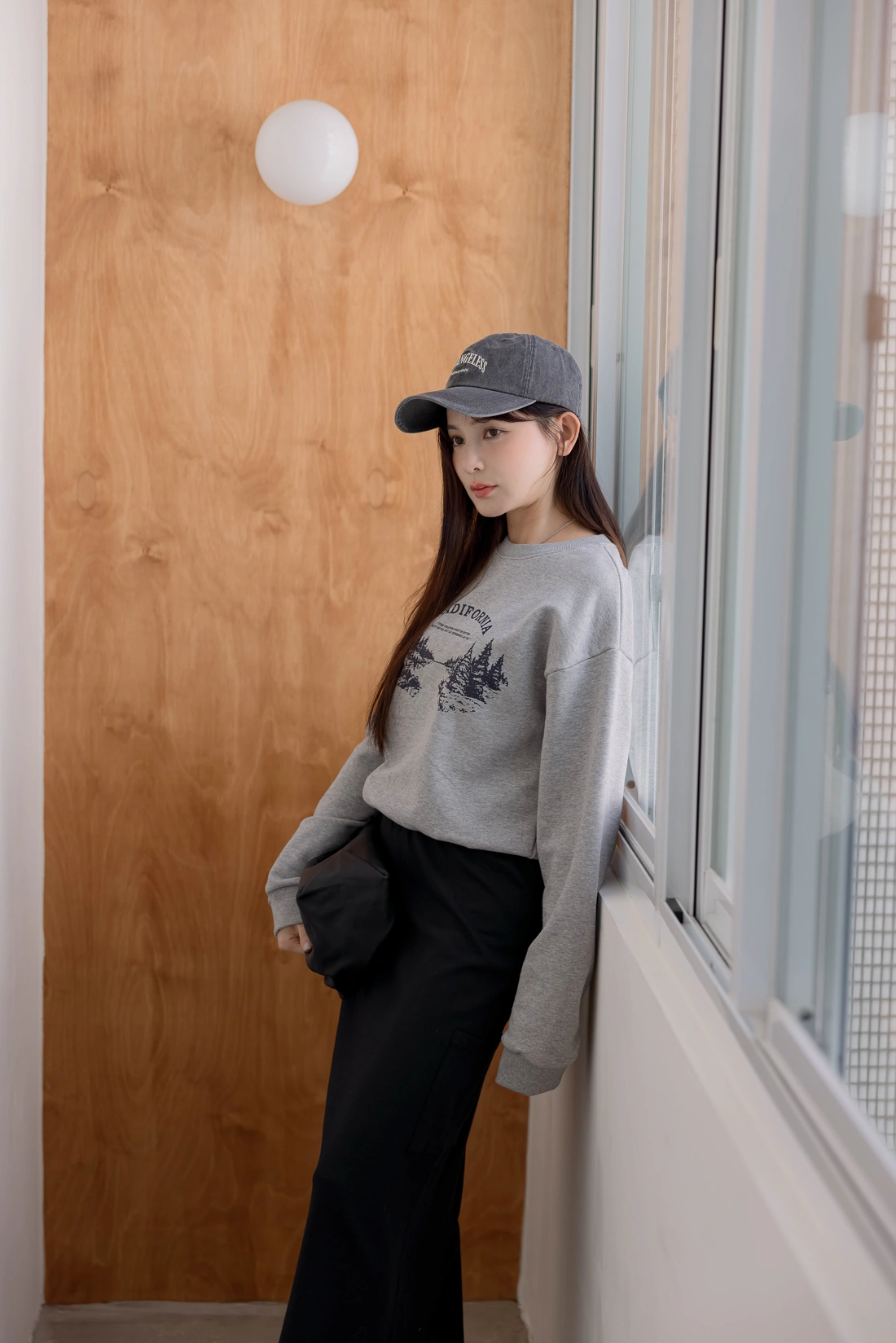 舒適棉質材質/休閒大學T/正面印有森林圖案