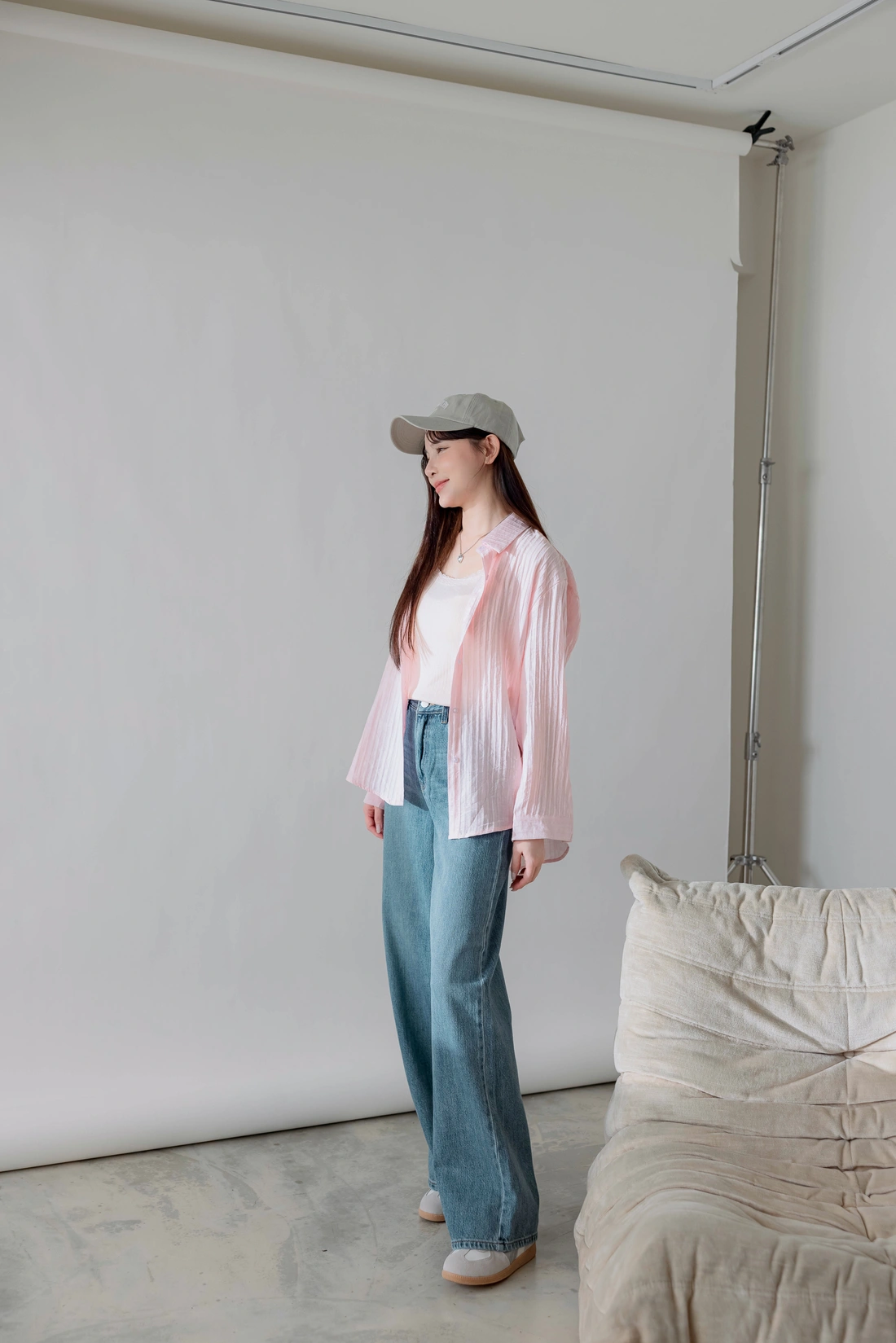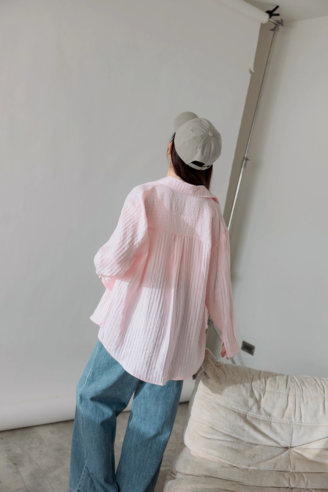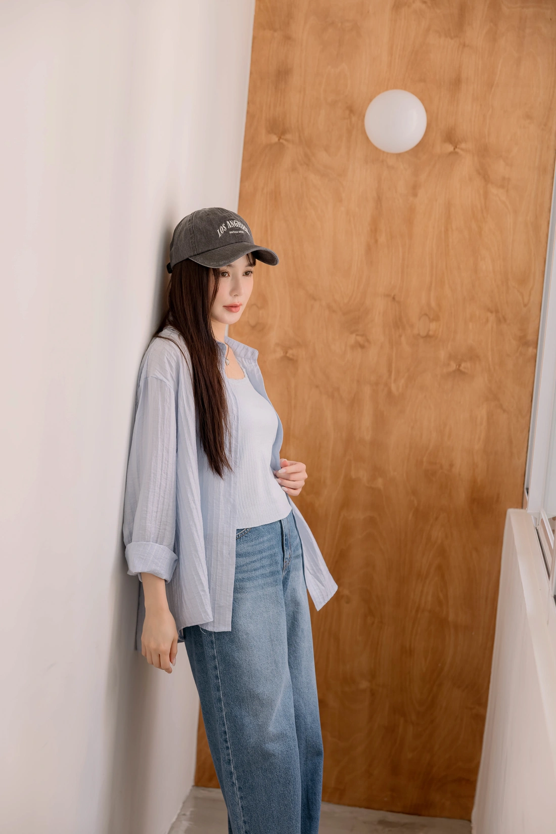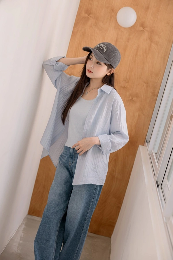 面料壓紋材質/前短後長襯衫/排釦設計襯衫