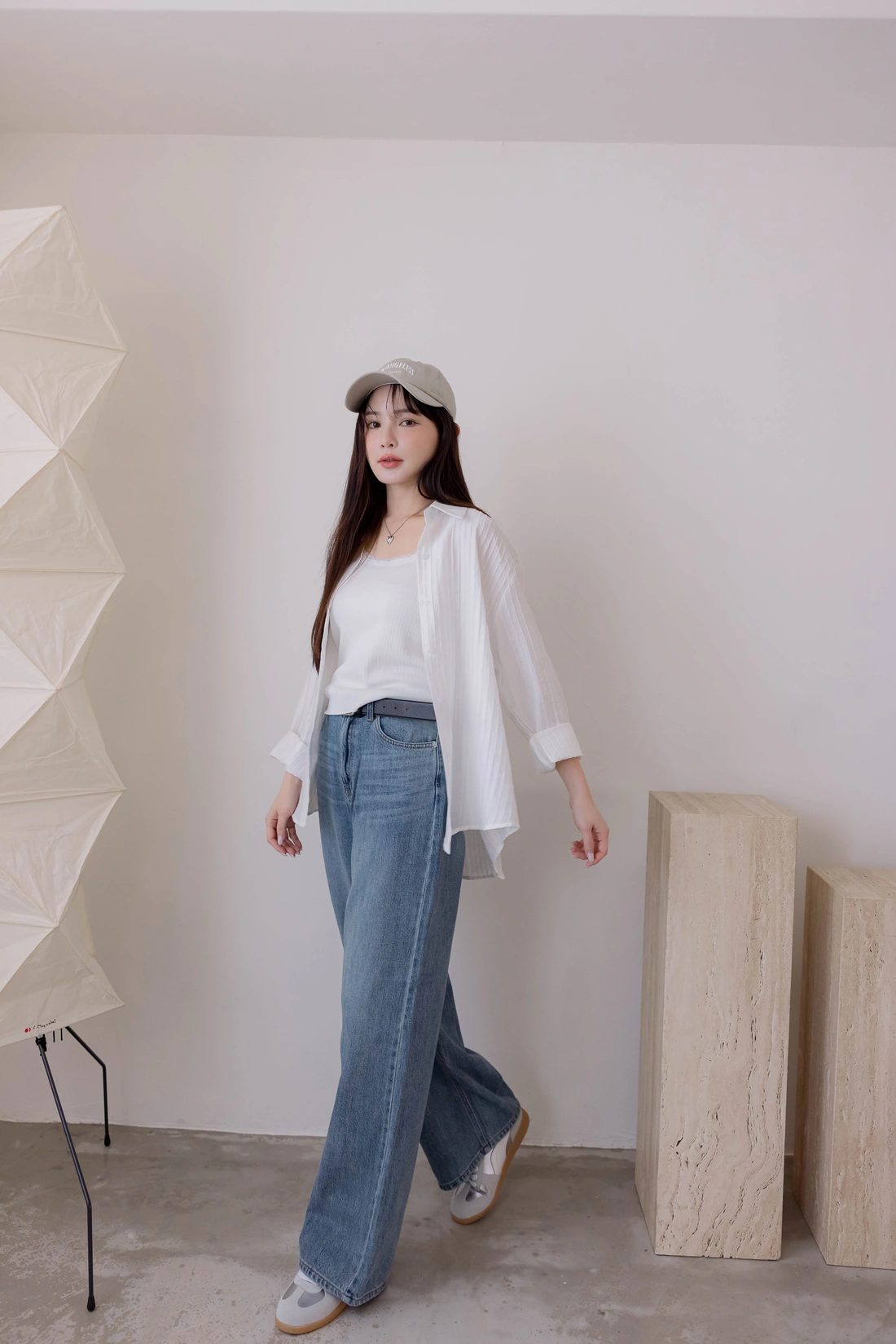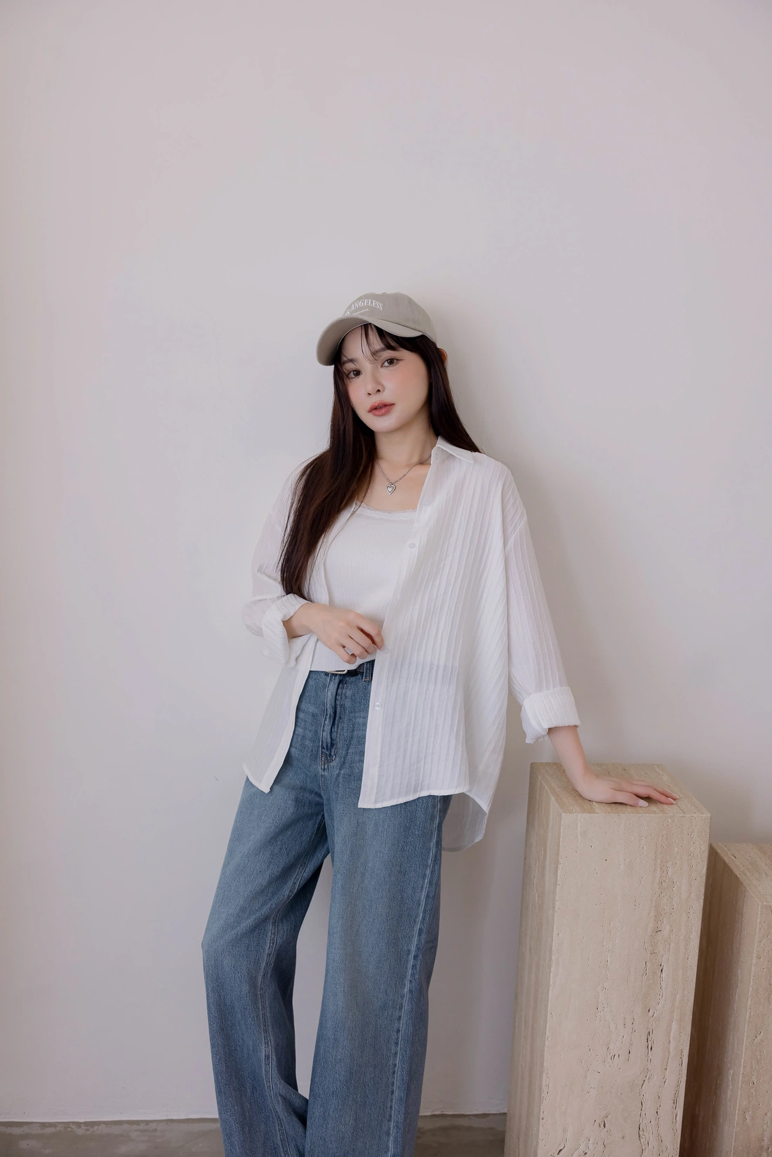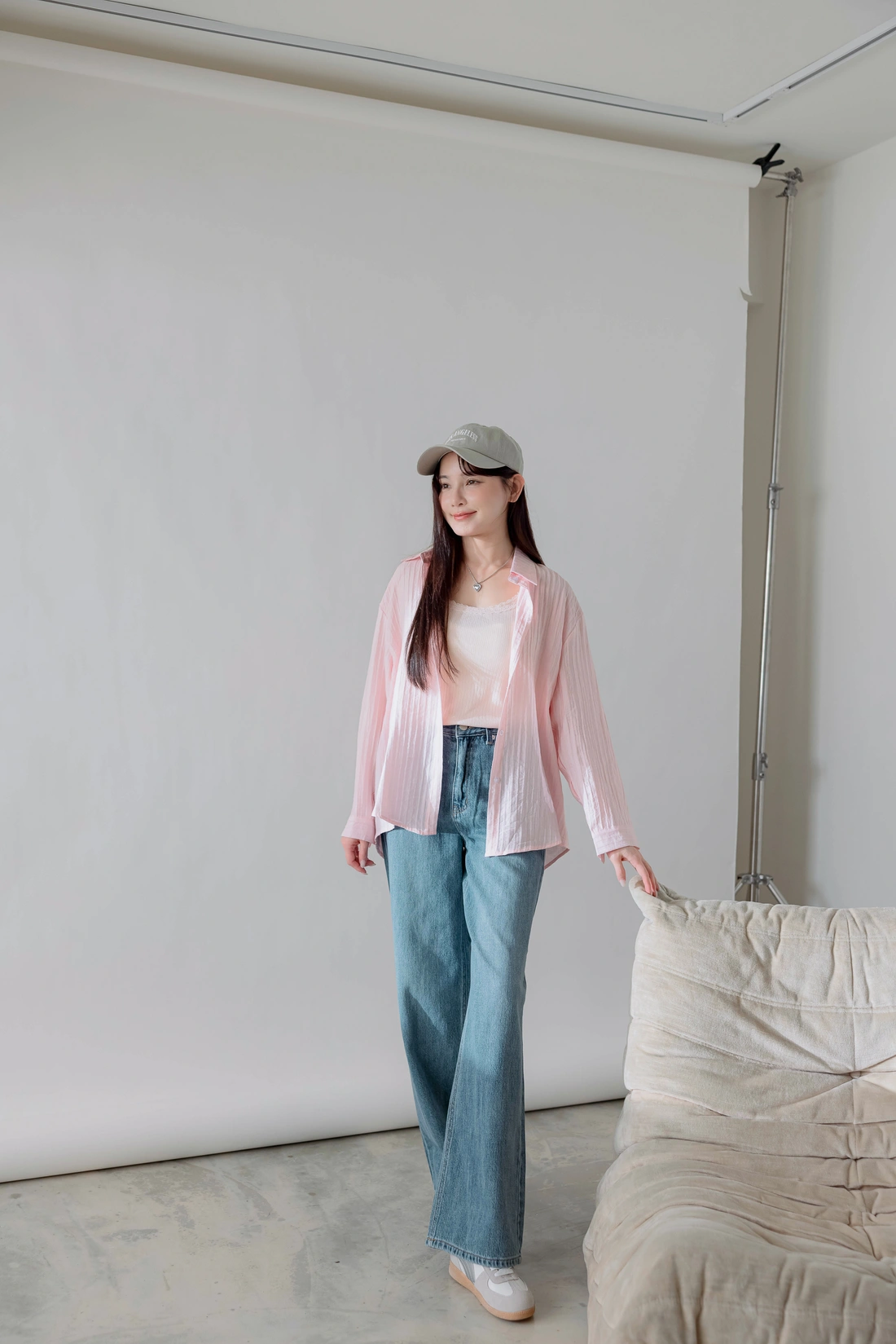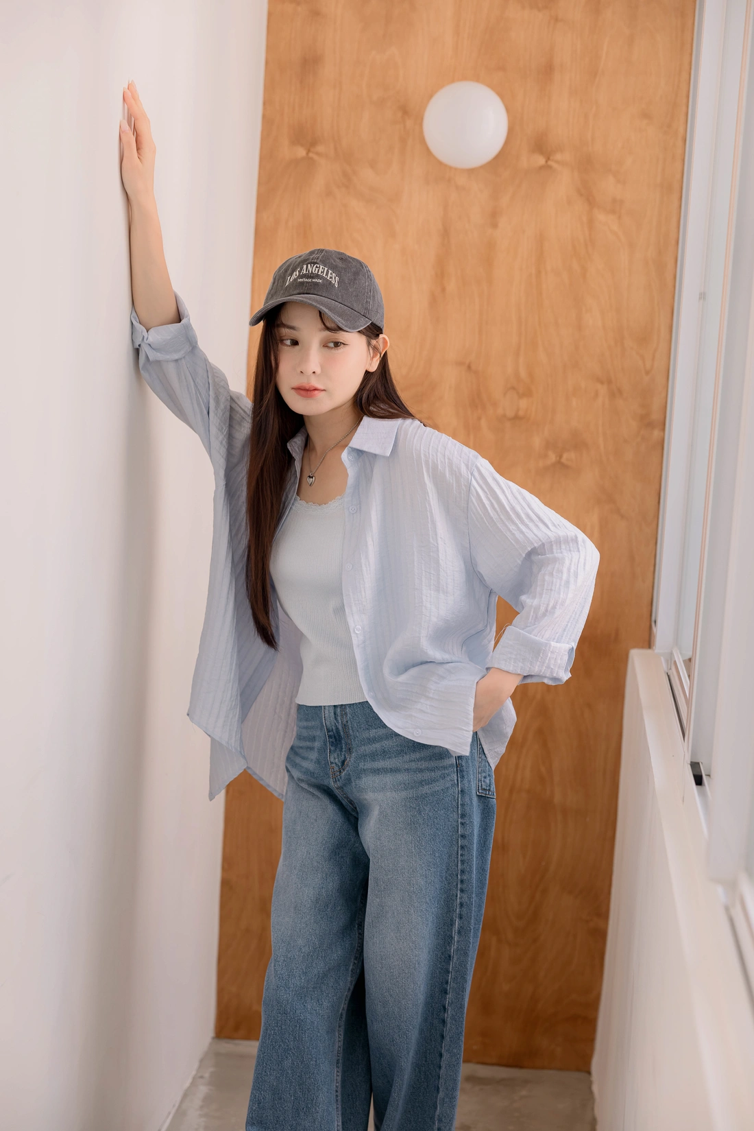 面料壓紋材質/前短後長襯衫/排釦設計襯衫